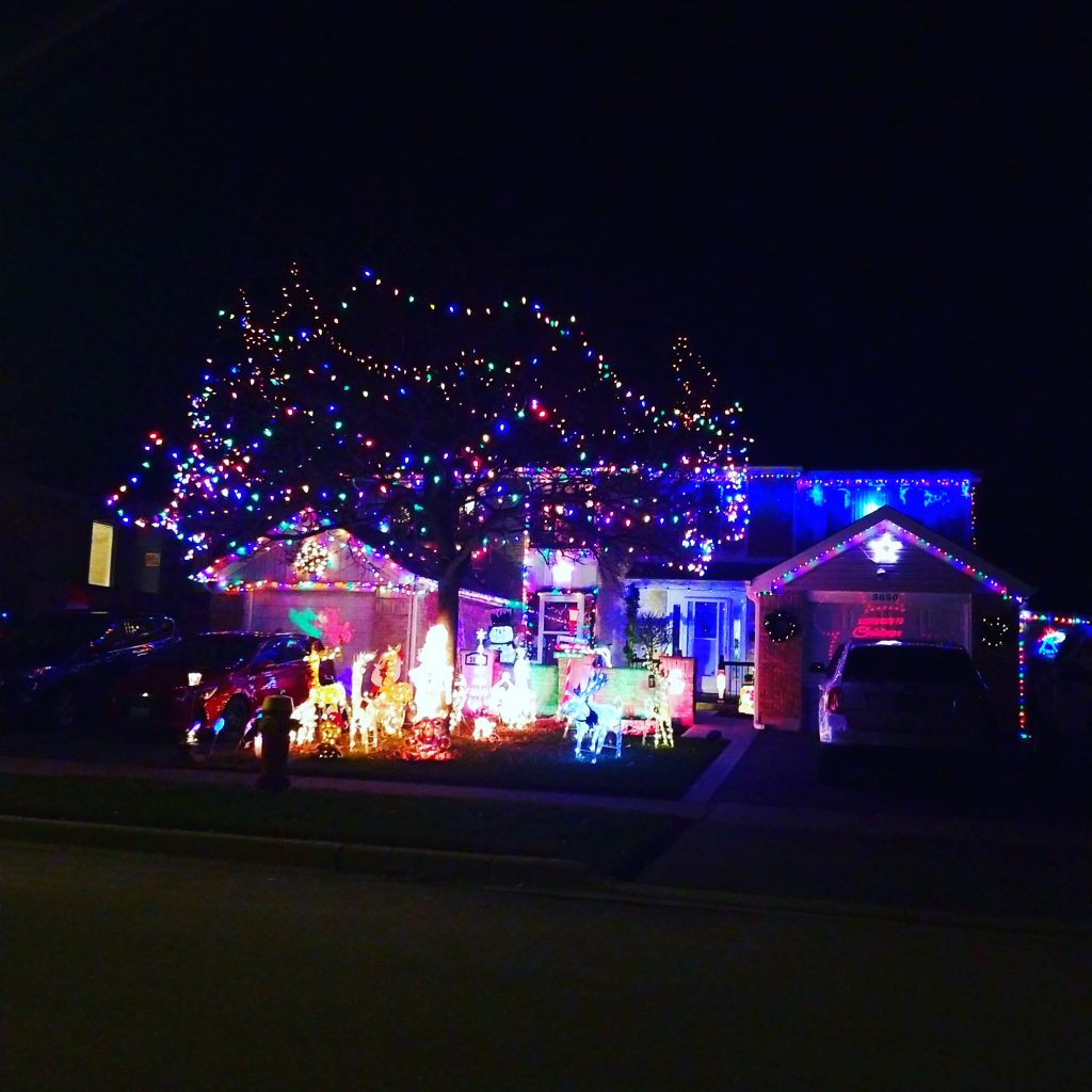 Elizabeth Gardens really has some great houses as well. 5563 Schueller Crescent shows just how much holiday cheer you can fit into any size of front yard. This house is easy to see while driving along New St. Each front window, the porch and the whole yard is covered in coloured lights.