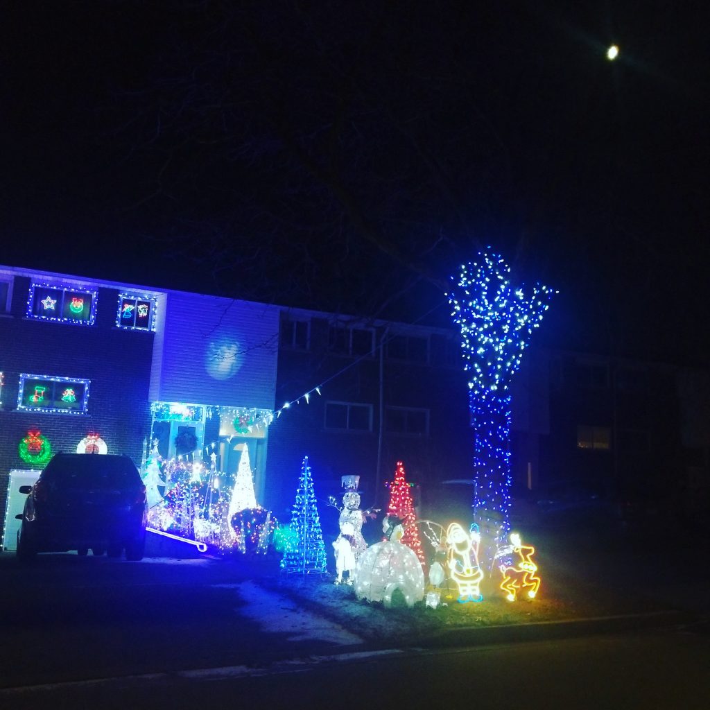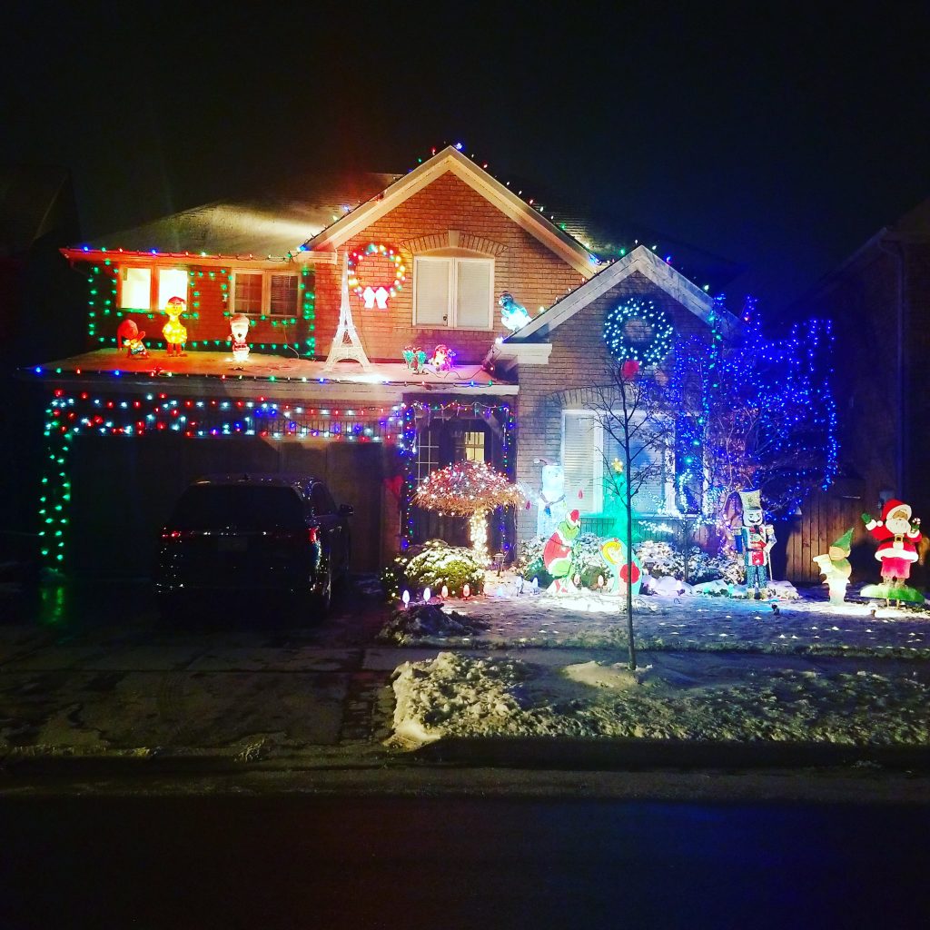 Our last stop was 2176 Devlin Drive. This house lights up the night for a very specific purpose. It’s worth your time to pause not only to take in the many lawn ornaments clustered together but also to have a read of the scrolling message that runs across the roof. A very heartfelt moment in a hectic season.