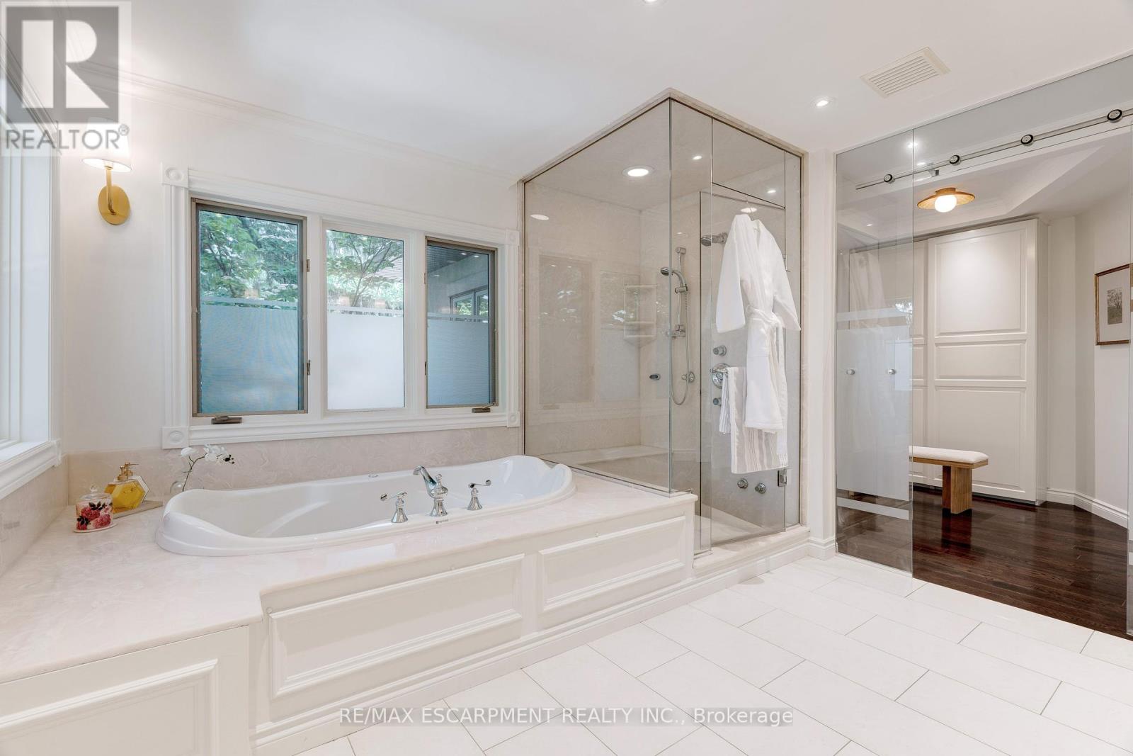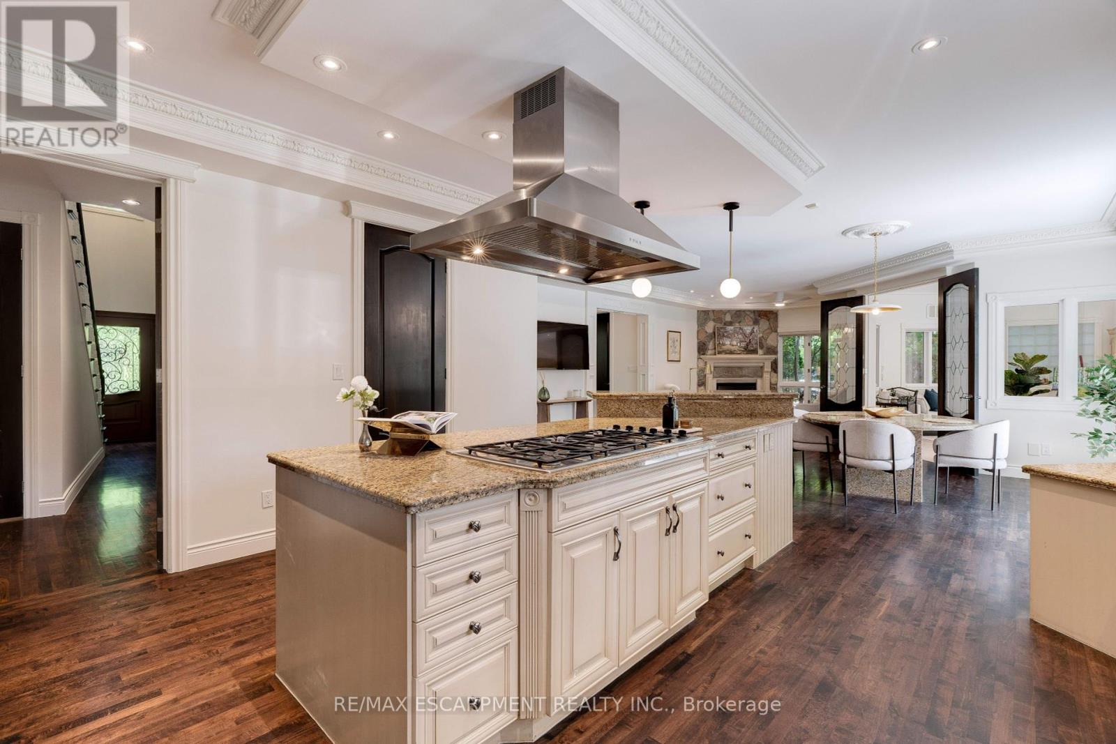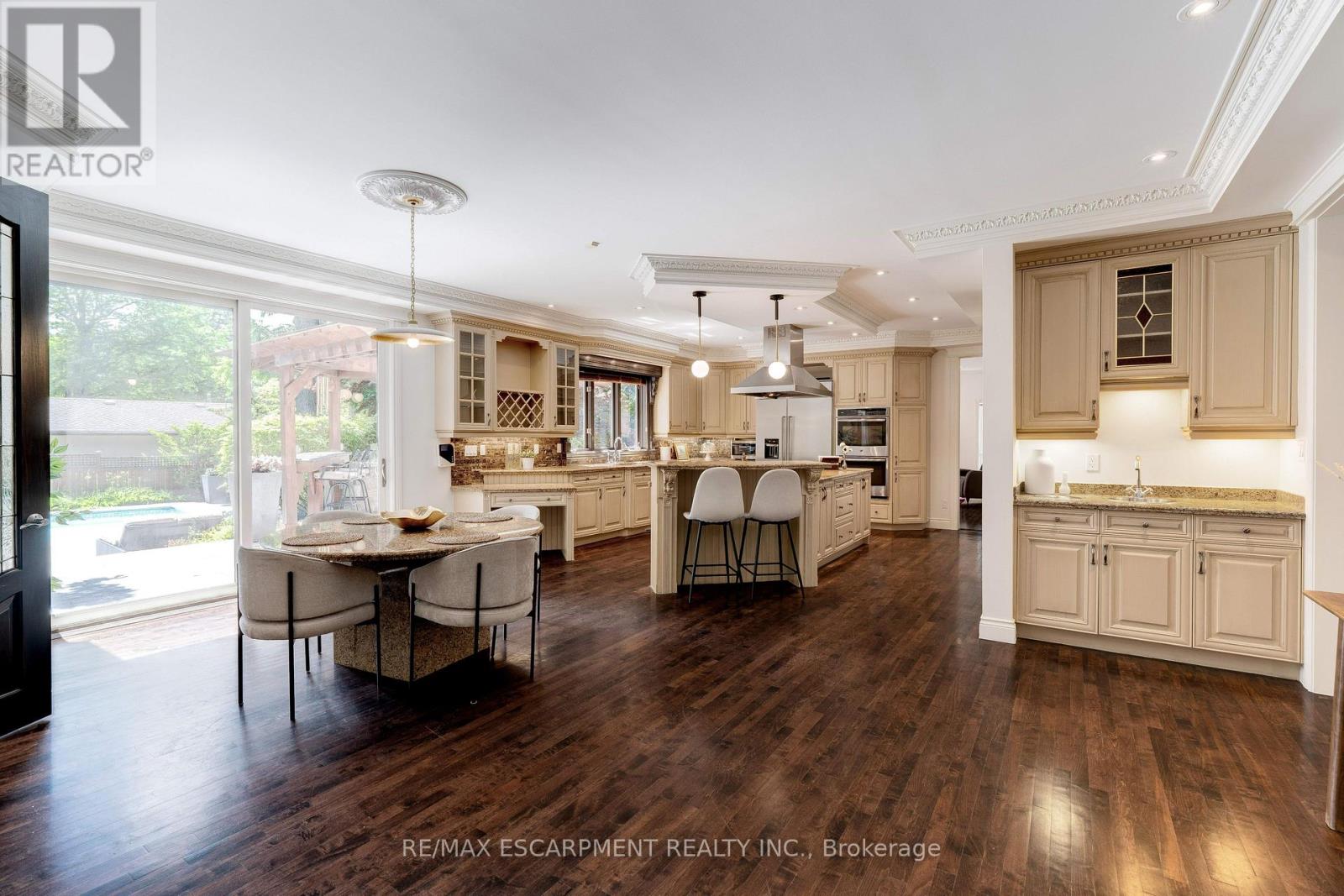 Welcome to this exceptional luxury estate in Shoreacres, steps from the lake - offering over 9,000 sqft of beautifully designed living space. Custom built with impressive curb appeal and meticulous attention to detail. Grand entrance and main staircase welcome you to this thoughtfully designed home that blends relaxed elegance w/timeless design through layered millwork and a purposeful layout. The formal living features coffered ceilings, gas fireplace and double sided aquarium. The grand dining room provides ample space for large family gatherings. A sunsoaked kitchen opens into a bright sunroom and walkout to the backyard- ideal for morning coffee or hosting poolside gatherings. Chefs kitchen features a large island, gas cooktop, double wall ovens, oversized fridge, pantry and a built-in bar area with sink. The utility wing is tucked away w/mudroom, garage access, secondary stairs and additional rear yard access. The south facing primary retreat has lake views, gas fireplace, generous walk-in and a spa ensuite. Four additional well-appointed bedrooms enjoy their own private ensuite. The fifth bedroom also features its own rec room with second laundry and sink - perfect for a dedicated in-law or nanny suite. The nearly 3,100 sqft finished basement includes a bedroom with ensuite, bar, wine cellar, theatre room, gym, and ample space for entertaining.The professionally landscaped rear yard features multiple flagstone seating areas, a full size heated salt water pool with automatic cover, outdoor kitchen/ BBQ station, and covered cabana with gas fireplace, all bundled in a Muskoka-like tranquil setting. Elegant, timeless, and serene this is a rare opportunity to live steps from the lake in one of Burlingtons most coveted neighbourhoods. Luxury Certified. (id:24334)