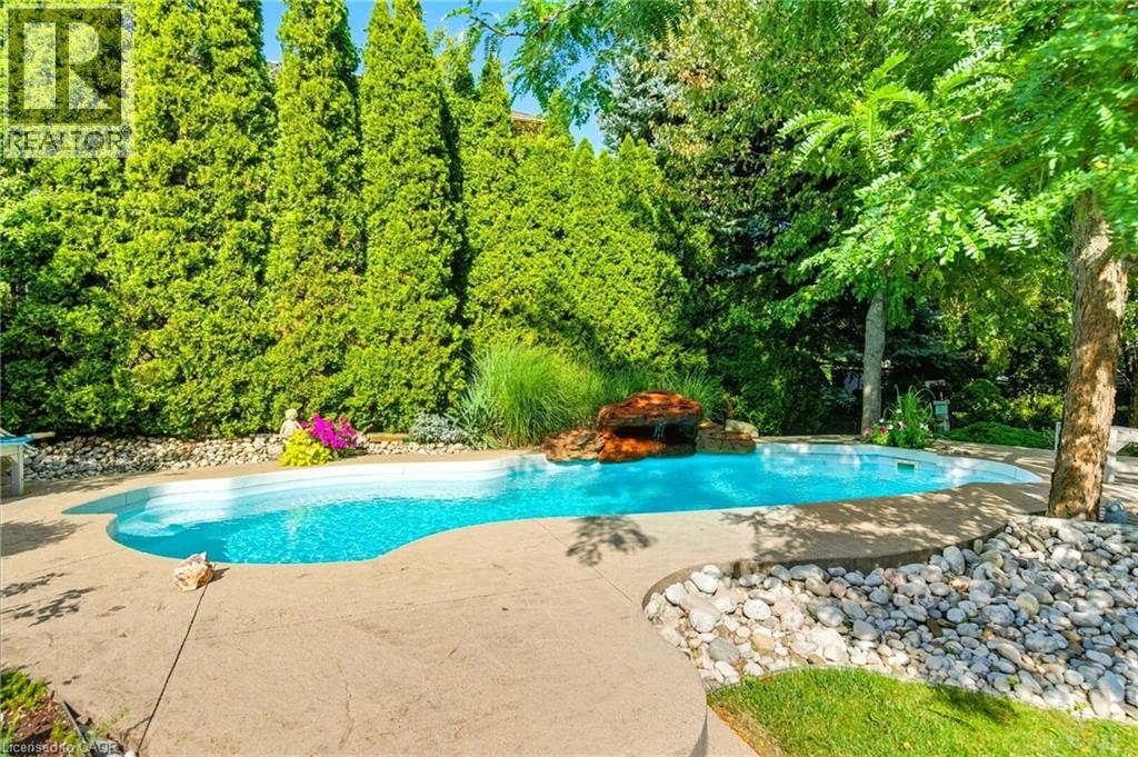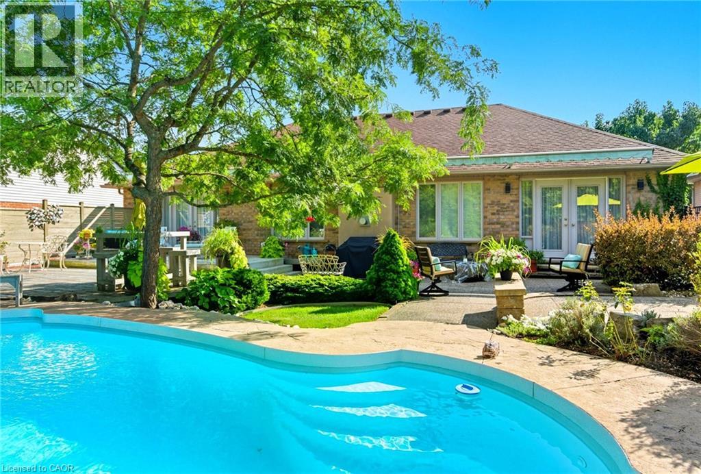 Welcome to this beautiful 1872 square foot bungalow on one of the most desirable streets in Tyandaga. Located close to all amenities and with easy highway access, this home combines tranquility with convenience. With fantastic curb appeal, this home welcomes you with its classic charm. Step inside to the wide-open great room, featuring vaulted ceilings and massive windows that fill the space with natural light. The kitchen boasts solid-surface countertops and a convenient walk-out to the yard, making outdoor entertaining a breeze. The main level features a master retreat complete with a walk-in closet, a fourpiece ensuite, and a private walk-out to the yard. A spacious second bedroom and a den (easily converted into a third bedroom) provide plenty of space for family or guests. The fully finished basement offers a huge rec room, perfect for movie nights or family gatherings. You’ll also find a dedicated hobby room, ample storage, and a three-piece bathroom. Outside, the spectacular and extremely private backyard is your personal oasis. Surrounded by mature trees, it features an inground pool and multiple seating areas, creating the perfect setting for summer fun and relaxation. Don’t be TOO LATE*! REG TM. RSA. (id:24334)