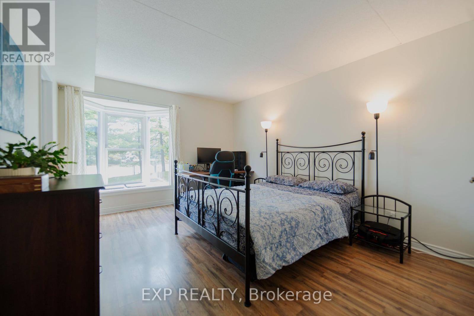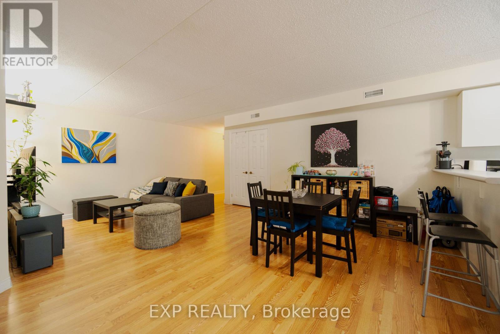 $986 MonthlySpacious 2-bedroom, 2-bathroom corner condo with 1000+ sq ft in one of Burlington's most desirable neighborhoods. This bright ground-floor unit offers a south-facing bay window in the primary bedroom with serene garden views and east-facing balcony with BBQs permitted. Features include in-suite laundry, owned furnace & A/C, 2 adjacent underground parking spaces, and locker. Family-friendly courtyard allows children and pets to play. Balcony railings are being updated by condo management. Walking distance to top-rated schools, shopping, dining, and everyday amenities, with major retailers just minutes away. Excellent access to highways, GO Transit, parks, and the waterfront. (id:24334)
