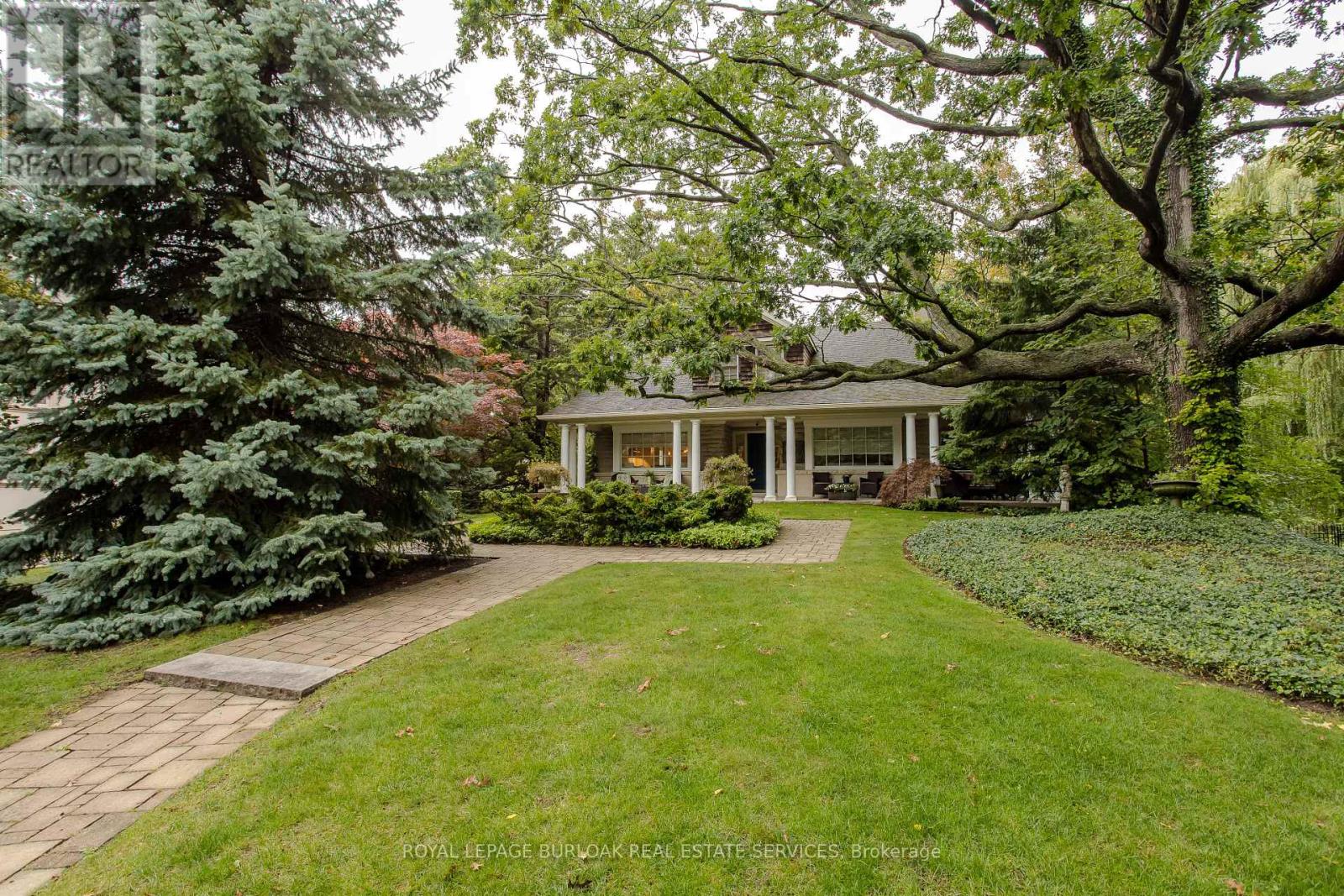 Rare opportunity to own a magical property across from the water with a double wide lot of 120 ft frontage. This South Burlington gem with pool is a character-filled 2 Storey retreat with an oasis yard for any nature lover. Just steps from the lake and minutes to the golf, country club and LaSalle Park. With 3,886 sqft of total living space, it presents a unique opportunity for growing families seeking space, lifestyle, and timeless charm in one of the city's most coveted locations. Enjoy the serenity of a quiet residential setting while being only minutes from schools, parks, shops, dining, and all major amenities. From the moment you arrive, the curb appeal is undeniable mature trees, professional landscaping, an interlock walkway, and a wraparound porch set the tone for the warmth inside. The open-concept main floor showcases hardwood throughout, anchored by a chefs kitchen blending modern finishes with classic design. Featuring a spacious island with breakfast bar and wine storage, granite countertops, custom cabinetry, SS appliances, and a cozy window seat, it flows into the dining area & coffee bar with seamless access to the yard. A formal living room with fireplace and a sunken family room with coffered ceilings, wall-to-wall windows, gas fireplace, and walkout make this a true gathering hub. Upstairs, the expansive primary suite is a private retreat with dual walk-in closets and a spa-like 5pc ensuite complete with soaker tub, dual vanity, & oversized glass shower. Two additional bedrooms each boast their own luxurious full ensuites, while the convenience of upper-level laundry adds everyday ease. The fully finished walkout basement extends the living space with a spacious rec room, games room, and an additional full bath. Outside, the lifestyle continues in a fully fenced backyard with ample green space for kids and pets, interlock patio, built-in BBQ area, shed, and a concrete gunite pool perfect for summer entertaining. (id:24334)