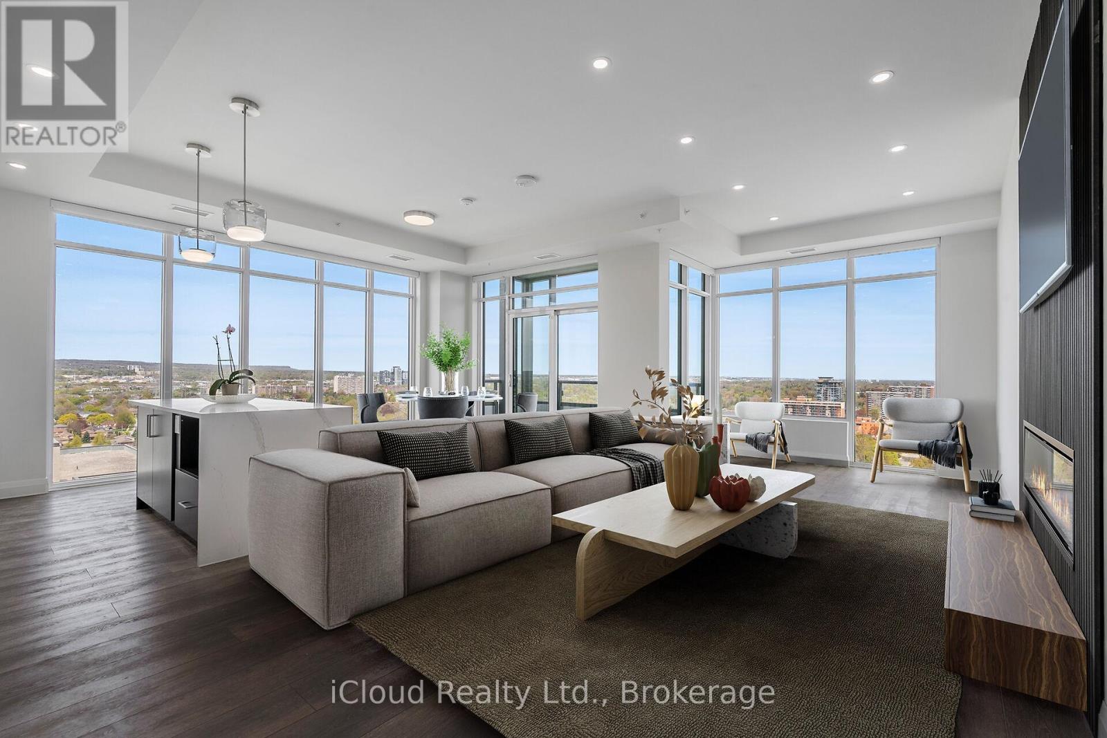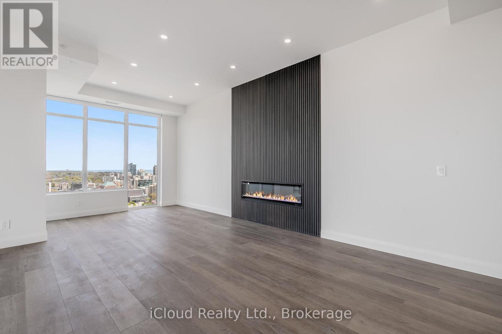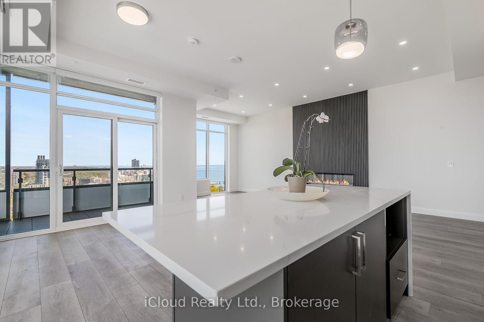 Soaring 20 stories above downtown Burlington -one of Canada's most desirable communities- this stunning Brand-New Corner End-Unit PENTHOUSE takes in all of the sunshine & breathtaking views to the south, east & north. Over 80K in upgrades, this 3-bed, 2-bath home spans 1,510 sf of beautifully designed open-concept living space that seamlessly blends comfort, function & style. Modern finishings & seemingly endless windows equipped w/ luxury automated roller shades in every room. Top-of-the-line vinyl flooring, upgraded cabinetry & closets, undercabinet lighting & pot lights throughout. The living room offers 10-ft ceilings, a custom-made accent wall & an elegant freplace. The kitchen comes with ample cabinetry, a large center island overlooking the living area, SS appliances, granite counters & backsplash. The primary suite displays a custom-made accent wall, modern light fixtures, a walk-in closet, a professionally designed four-piece ensuite with rain shower, glass door, pot lights, luxury tile on floor & walls, & a private secondary balcony w/ city & lake views. The second bedroom also offers outstanding city views, ample storage space, a custom accent wall & upgraded lighting fixtures. The third bedroom doubles as a great private office space or guest room w/ closet. The guest 4-piece bath offers a custom glass door, pot lights, and luxury tile on the floor & walls. Custom laundry roomcabinetry & central air with dual thermostats. Included are 1 titled underground parking stall & 1 oversized storage locker. Classy building entrance w/ 24-hour concierge/security & three elevators. Amenities include a fully equipped gym, rooftop sky deck with BBQ stations, a large event room, social lounge, guest suite, bike storage & visitor parking. Enjoy the best in walkable urban living, w/ shops, restaurants, beach access, & entertainment just steps away. Close to major highways, hospital & top schools. Canada's first Star Energy Efficient Condo. (id:24334)