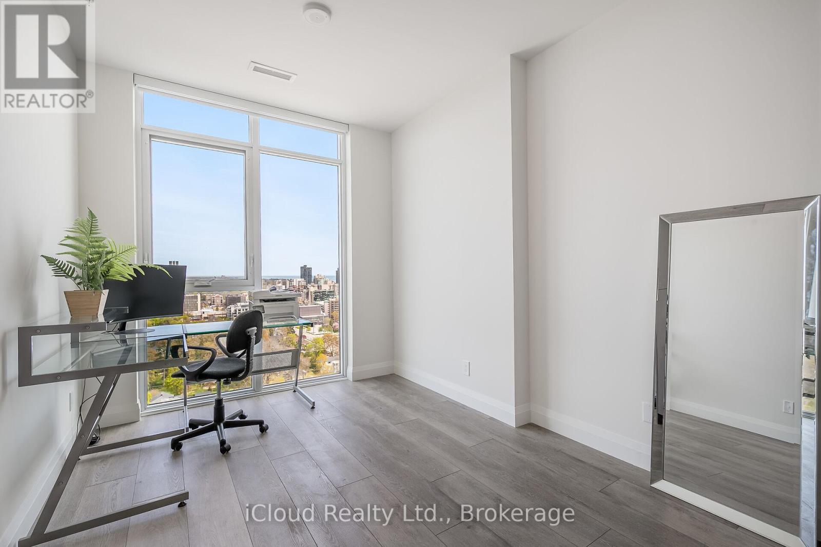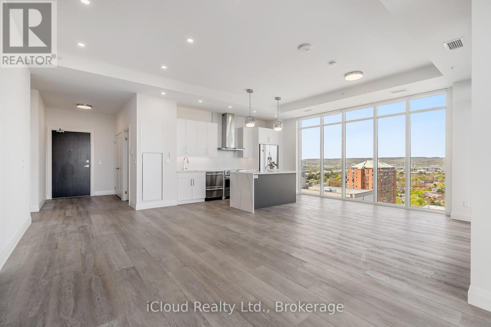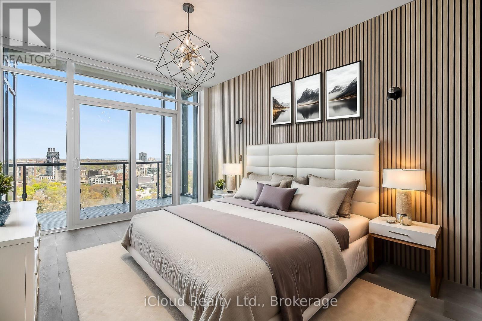 Soaring 20 stories above downtown Burlington -one of Canada's most desirable communities- this stunning Brand-New Corner End-Unit PENTHOUSE takes in all of the sunshine & breathtaking views to the south, east & north. Over 80K in upgrades, this 3-bed, 2-bath home spans 1,510 sf of beautifully designed open-concept living space that seamlessly blends comfort, function & style. Modern finishings & seemingly endless windows equipped w/ luxury automated roller shades in every room. Top-of-the-line vinyl flooring, upgraded cabinetry & closets, undercabinet lighting & pot lights throughout. The living room offers 10-ft ceilings, a custom-made accent wall & an elegant freplace. The kitchen comes with ample cabinetry, a large center island overlooking the living area, SS appliances, granite counters & backsplash. The primary suite displays a custom-made accent wall, modern light fixtures, a walk-in closet, a professionally designed four-piece ensuite with rain shower, glass door, pot lights, luxury tile on floor & walls, & a private secondary balcony w/ city & lake views. The second bedroom also offers outstanding city views, ample storage space, a custom accent wall & upgraded lighting fixtures. The third bedroom doubles as a great private office space or guest room w/ closet. The guest 4-piece bath offers a custom glass door, pot lights, and luxury tile on the floor & walls. Custom laundry roomcabinetry & central air with dual thermostats. Included are 1 titled underground parking stall & 1 oversized storage locker. Classy building entrance w/ 24-hour concierge/security & three elevators. Amenities include a fully equipped gym, rooftop sky deck with BBQ stations, a large event room, social lounge, guest suite, bike storage & visitor parking. Enjoy the best in walkable urban living, w/ shops, restaurants, beach access, & entertainment just steps away. Close to major highways, hospital & top schools. Canada's first Star Energy Efficient Condo. (id:24334)