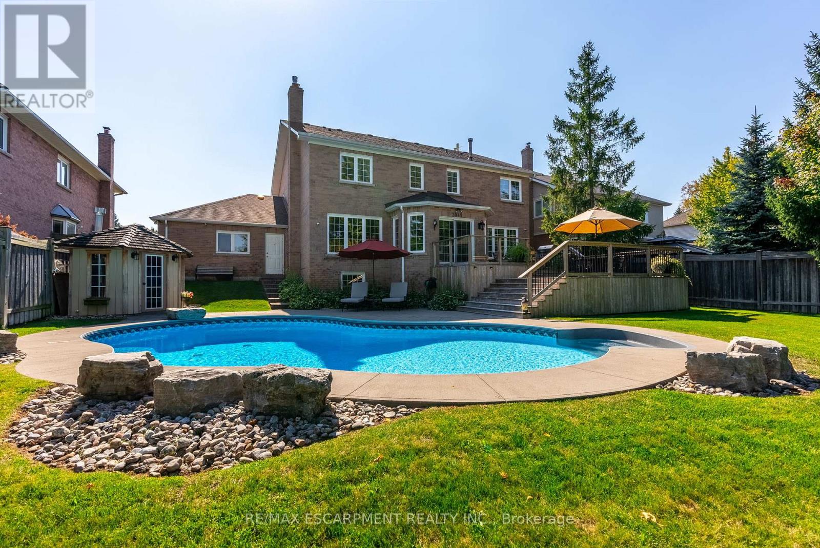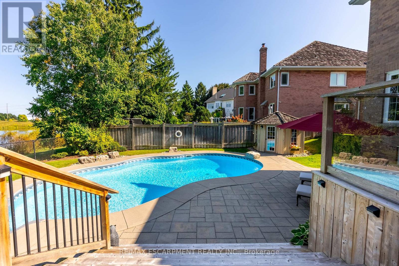 This fabulous previous model home boasts timeless curb appeal with its classic brick exterior and symmetrical design. Step inside to a traditional layout featuring spacious, sun-filled rooms with large windows, a welcoming foyer, and elegant touches throughout. The formal living and dining rooms are perfect for entertaining, while the cozy family room offers a relaxing retreat. Upstairs, generous bedrooms provide comfort for the whole family. The beautifully landscaped yard with a salt water in-ground pool, Secure, Private Backyard Oasis backing onto Millcroft Creek and Pond. The oversized double garage completes this perfect family home, nestled in a peaceful, tree-lined neighbourhood. Great Value on a beautiful street. (id:24334)