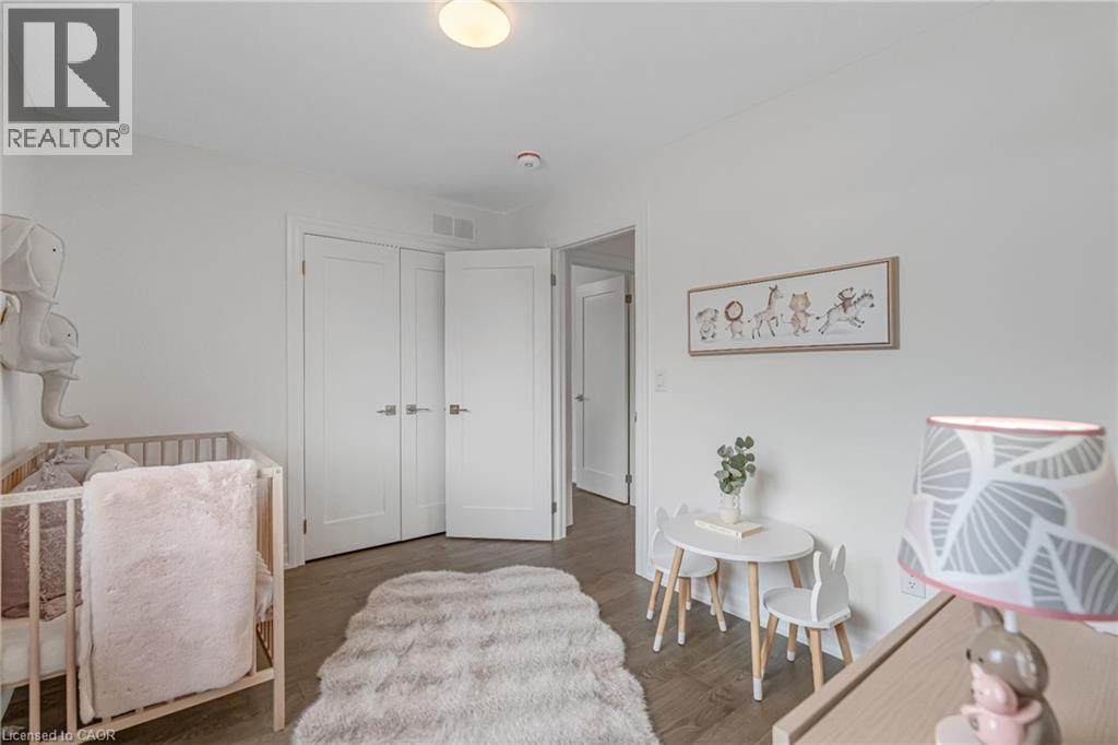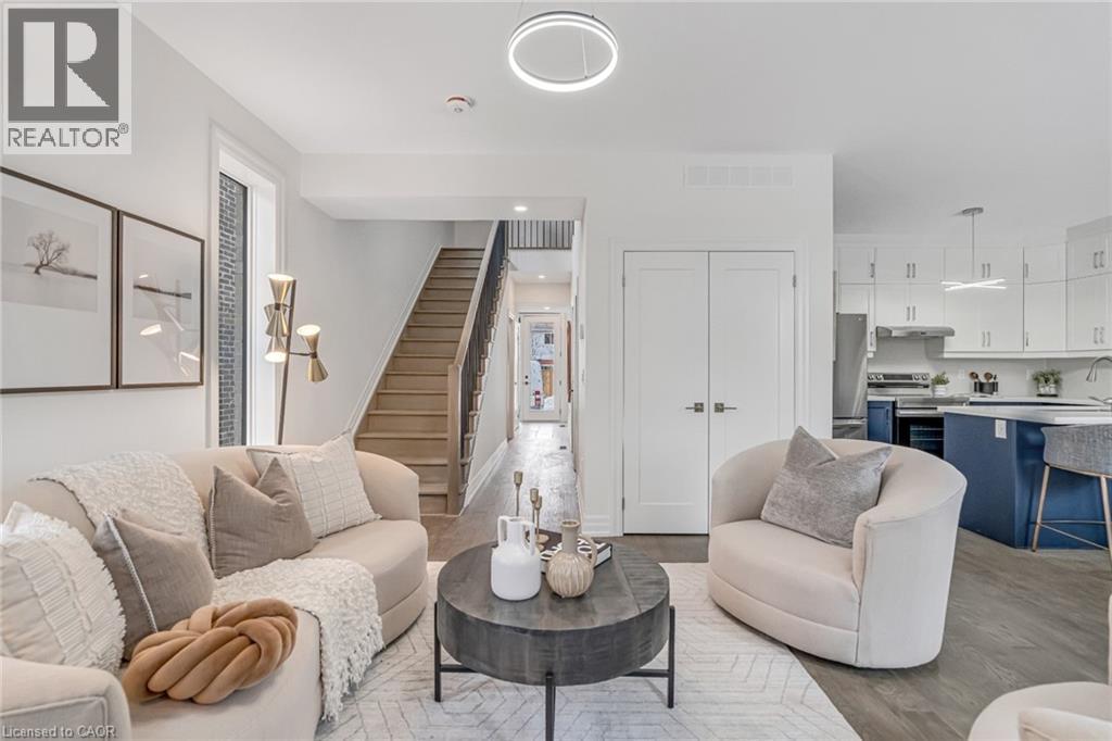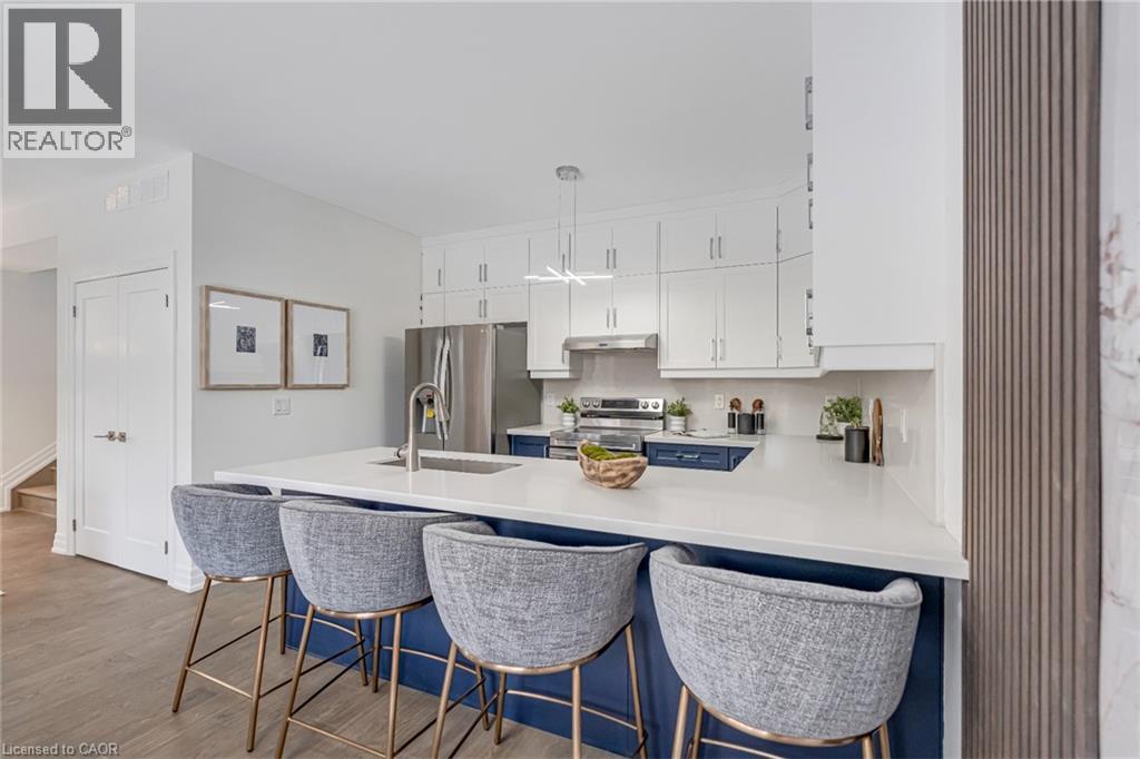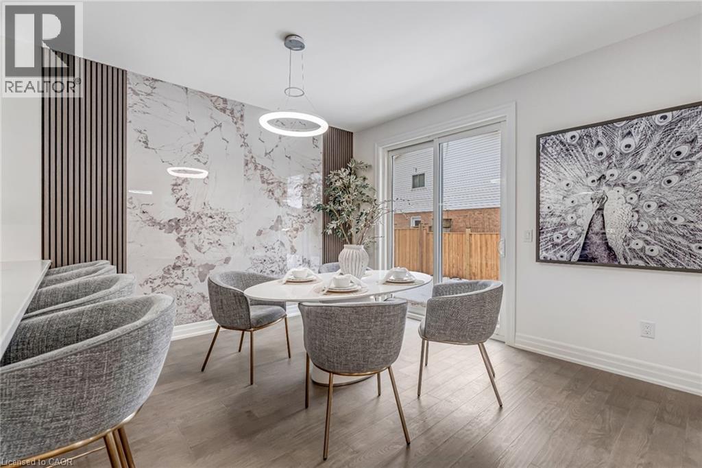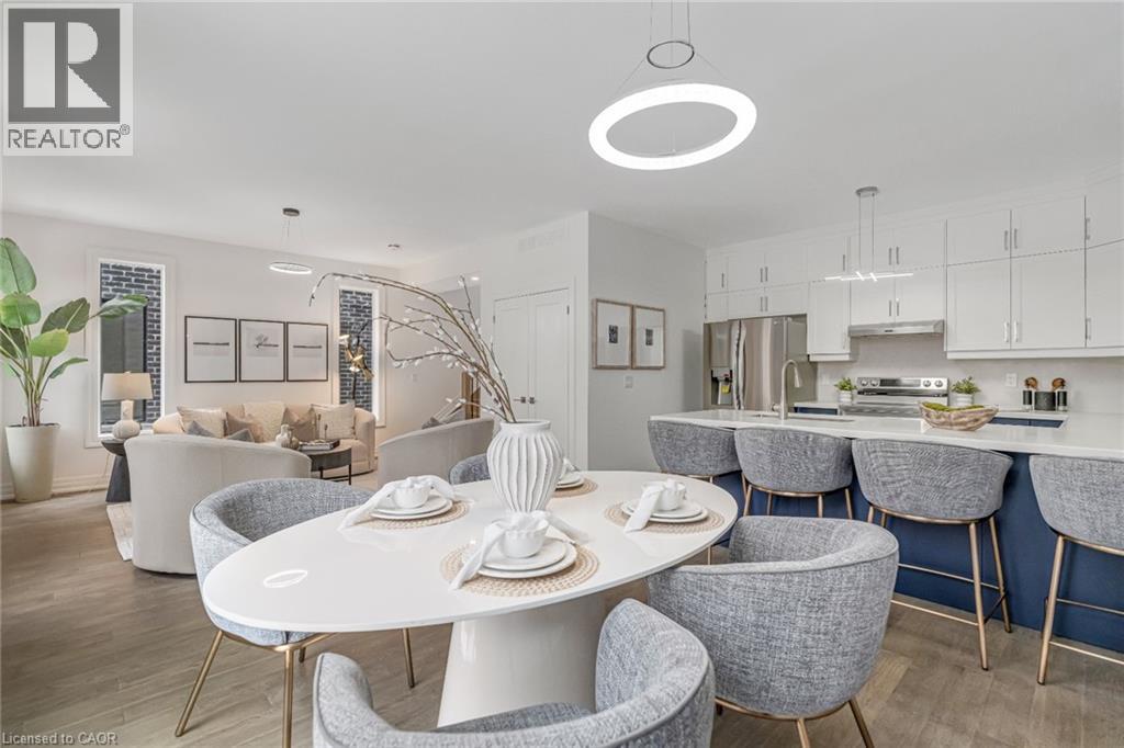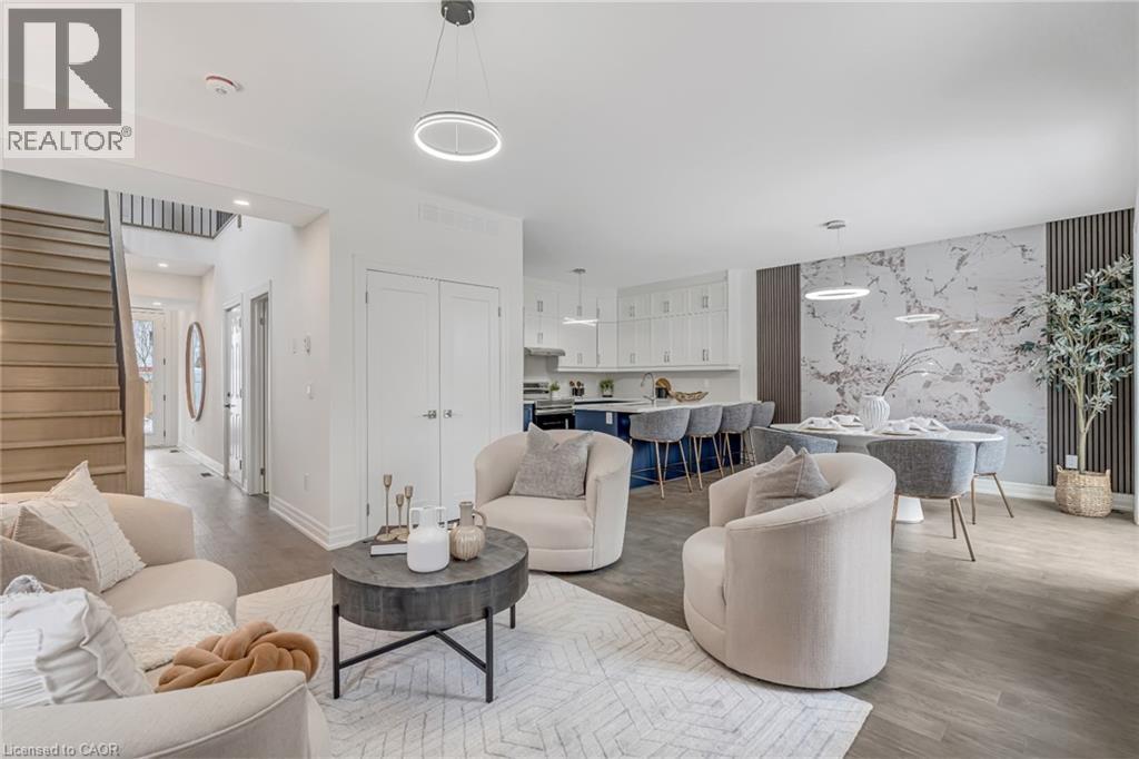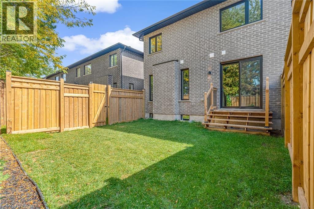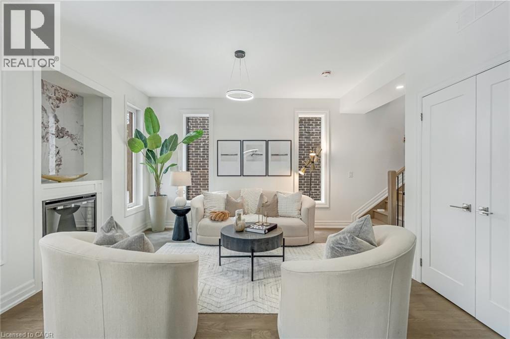 $296.01 MonthlyBrand-new executive town home never lived in! This stunning 1,799 sq. ft. home is situated in an exclusive enclave of just nine units, offering privacy and modern luxury. Its sleek West Coast-inspired exterior features a stylish blend of stone, brick, and aluminum faux wood. Enjoy the convenience of a double-car garage plus space for two additional vehicles in the driveway. Inside, 9-foot ceilings and engineered hardwood floors enhance the open-concept main floor, bathed in natural light from large windows and sliding glass doors leading to a private, fenced backyard perfect for entertaining. The designer kitchen is a chefs dream, boasting white shaker-style cabinets with extended uppers, quartz countertops, a stylish backsplash, stainless steel appliances, a large breakfast bar, and a separate pantry. Ideally located just minutes from the QEW, 407, and Burlington GO Station, with shopping, schools, parks, and golf courses nearby. A short drive to Lake Ontario adds to its appeal. Perfect for down sizers, busy executives, or families, this home offers low-maintenance living with a $296.01/month condo fee covering common area upkeep only, including grass cutting and street snow removal. Don't miss this rare opportunity schedule your viewing today! Tarion Warranty! (id:24334)