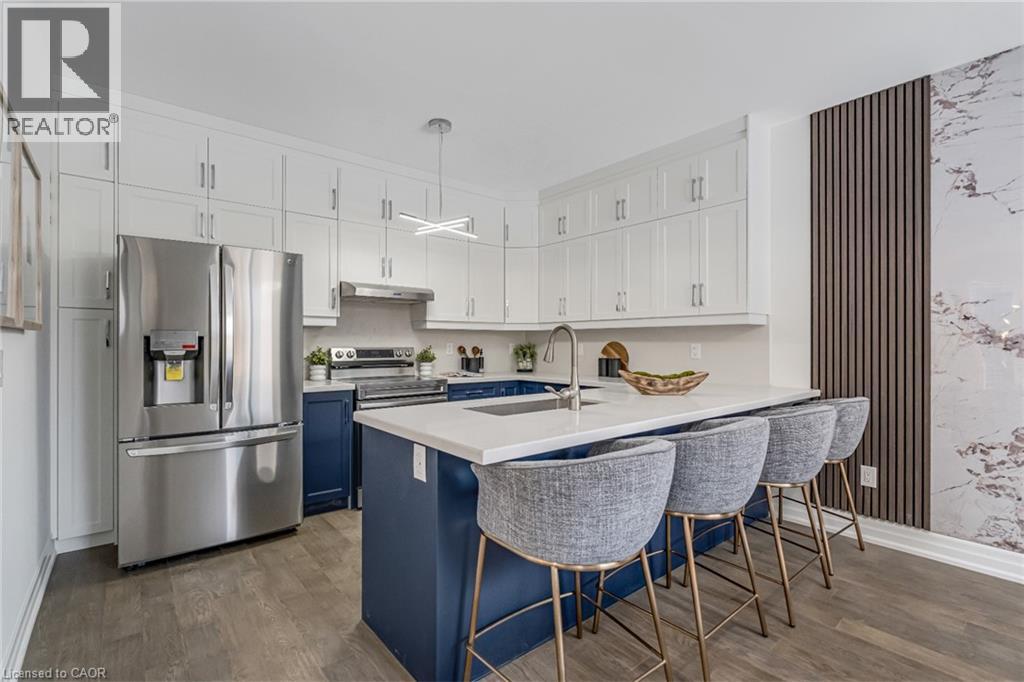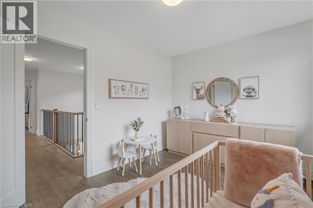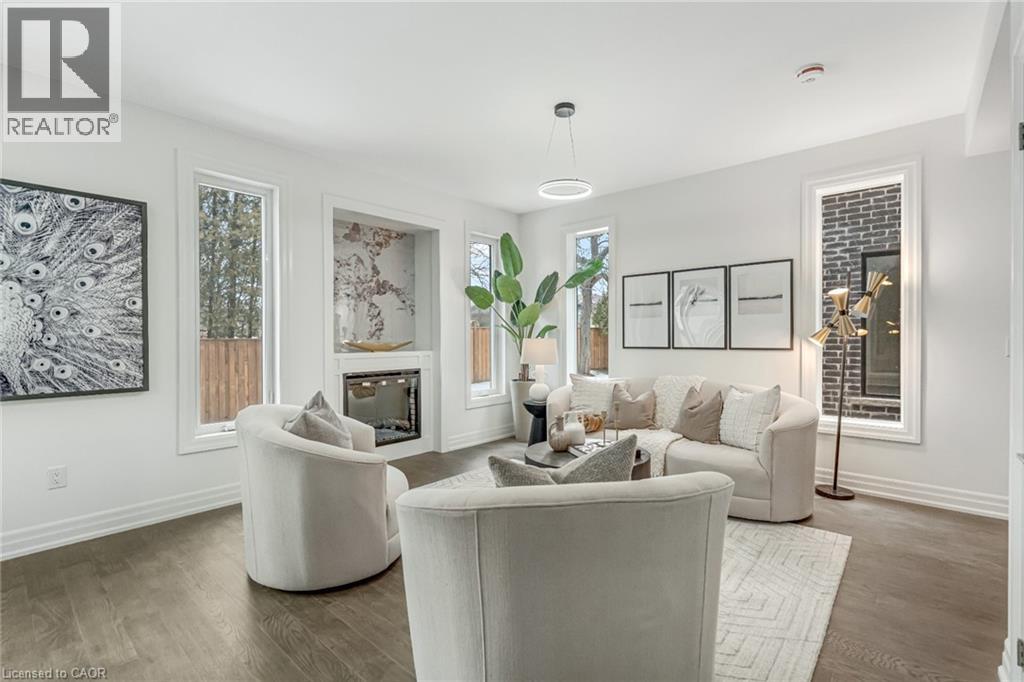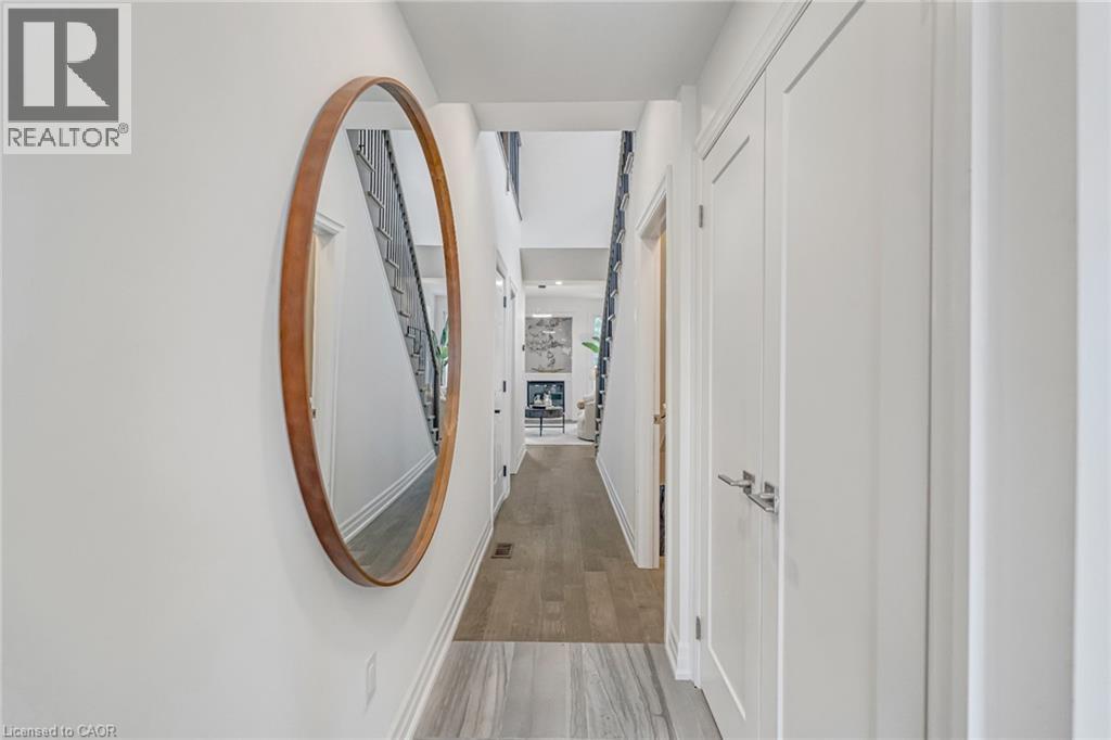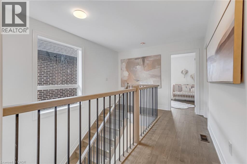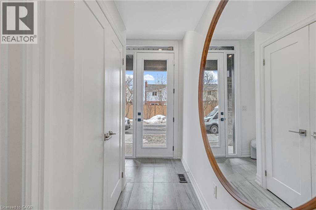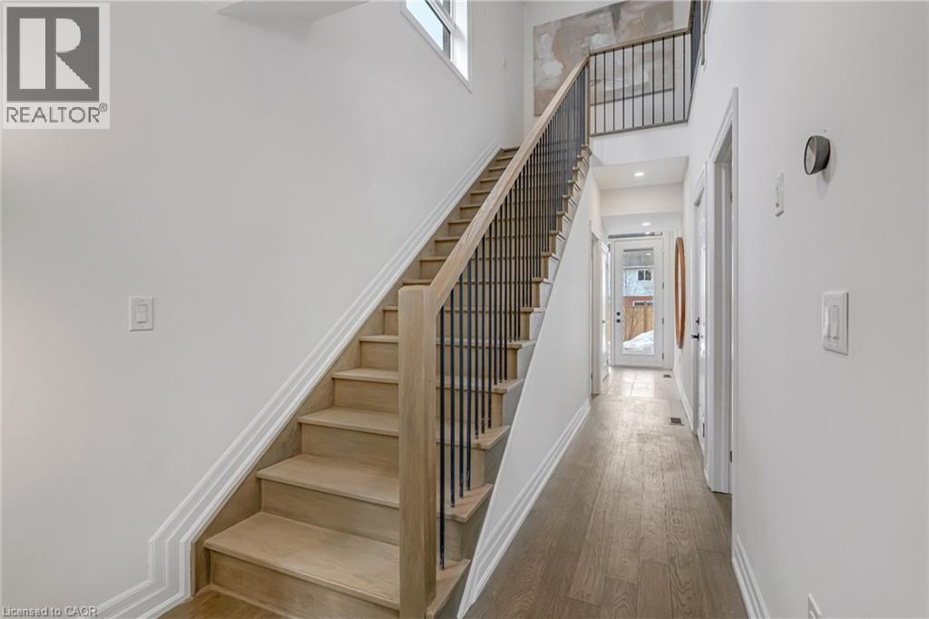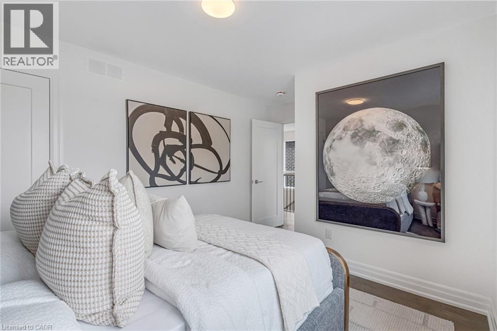 $296.01 MonthlyBrand-new executive town home never lived in! This stunning 1,799 sq. ft. home is situated in an exclusive enclave of just nine units, offering privacy and modern luxury. Its sleek West Coast-inspired exterior features a stylish blend of stone, brick, and aluminum faux wood. Enjoy the convenience of a double-car garage plus space for two additional vehicles in the driveway. Inside, 9-foot ceilings and engineered hardwood floors enhance the open-concept main floor, bathed in natural light from large windows and sliding glass doors leading to a private, fenced backyard perfect for entertaining. The designer kitchen is a chefs dream, boasting white shaker-style cabinets with extended uppers, quartz countertops, a stylish backsplash, stainless steel appliances, a large breakfast bar, and a separate pantry. Ideally located just minutes from the QEW, 407, and Burlington GO Station, with shopping, schools, parks, and golf courses nearby. A short drive to Lake Ontario adds to its appeal. Perfect for down sizers, busy executives, or families, this home offers low-maintenance living with a $296.01/month condo fee covering common area upkeep only, including grass cutting and street snow removal. Don't miss this rare opportunity schedule your viewing today! Tarion Warranty! (id:24334)