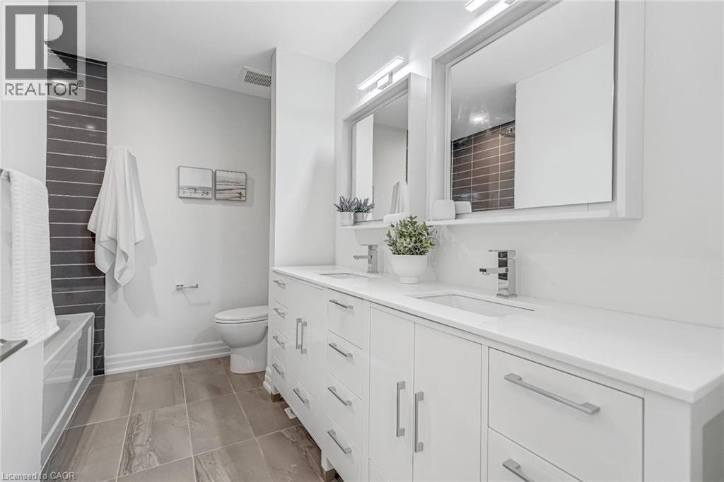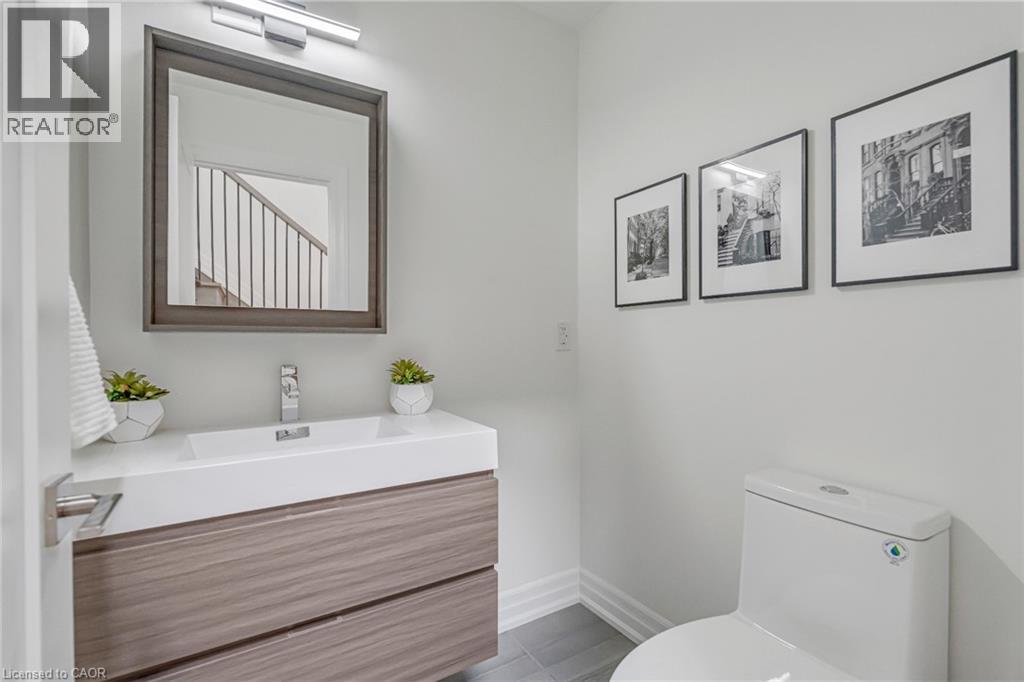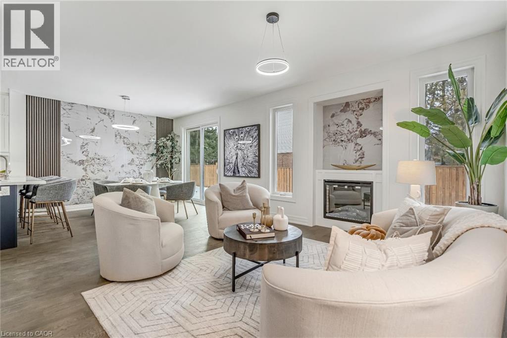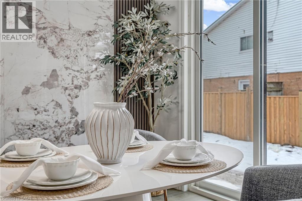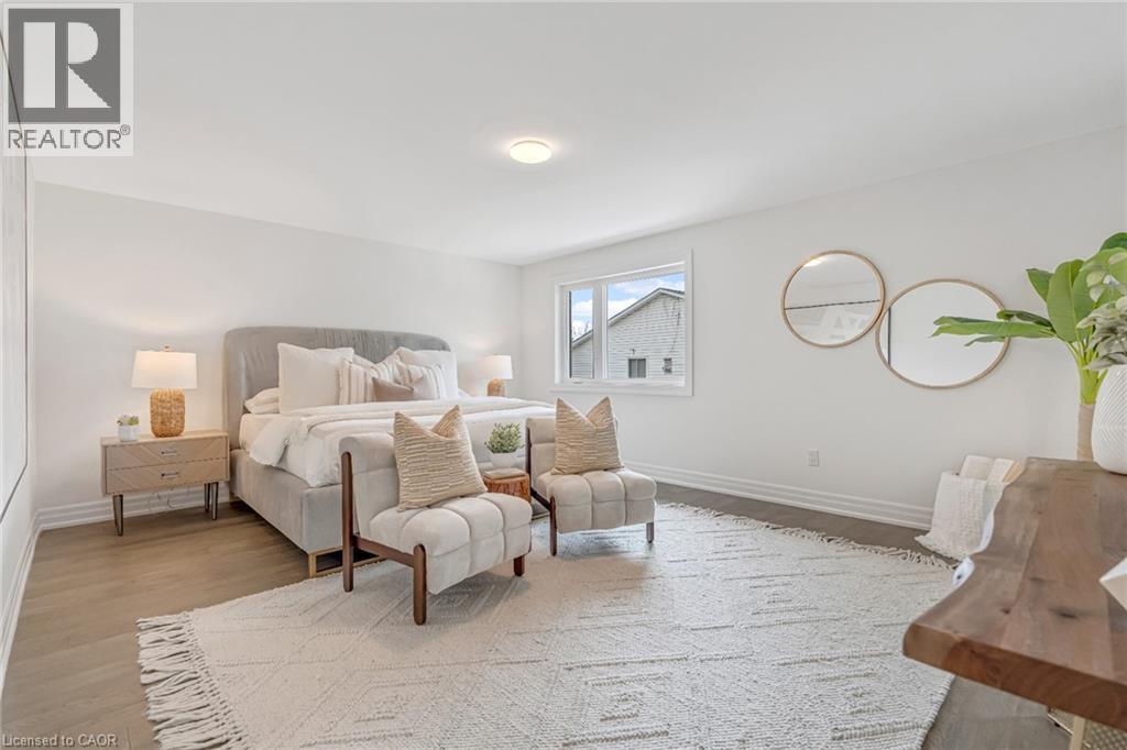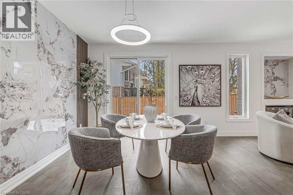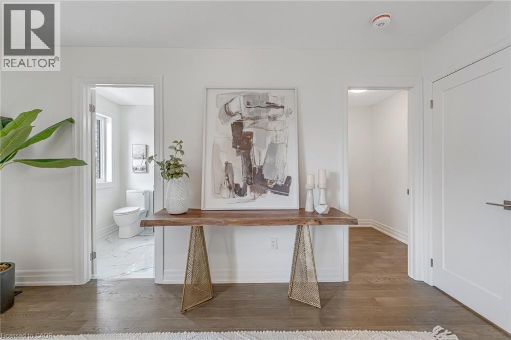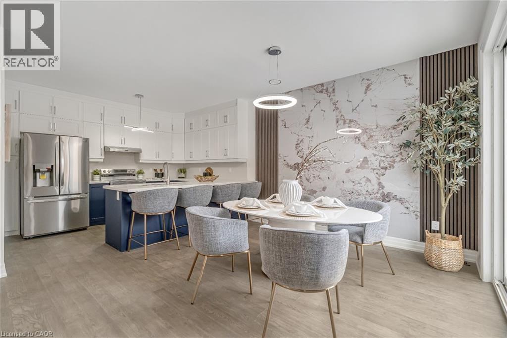 $296.01 MonthlyBrand-new executive town home never lived in! This stunning 1,799 sq. ft. home is situated in an exclusive enclave of just nine units, offering privacy and modern luxury. Its sleek West Coast-inspired exterior features a stylish blend of stone, brick, and aluminum faux wood. Enjoy the convenience of a double-car garage plus space for two additional vehicles in the driveway. Inside, 9-foot ceilings and engineered hardwood floors enhance the open-concept main floor, bathed in natural light from large windows and sliding glass doors leading to a private, fenced backyard perfect for entertaining. The designer kitchen is a chefs dream, boasting white shaker-style cabinets with extended uppers, quartz countertops, a stylish backsplash, stainless steel appliances, a large breakfast bar, and a separate pantry. Ideally located just minutes from the QEW, 407, and Burlington GO Station, with shopping, schools, parks, and golf courses nearby. A short drive to Lake Ontario adds to its appeal. Perfect for down sizers, busy executives, or families, this home offers low-maintenance living with a $296.01/month condo fee covering common area upkeep only, including grass cutting and street snow removal. Don't miss this rare opportunity schedule your viewing today! Tarion Warranty! (id:24334)