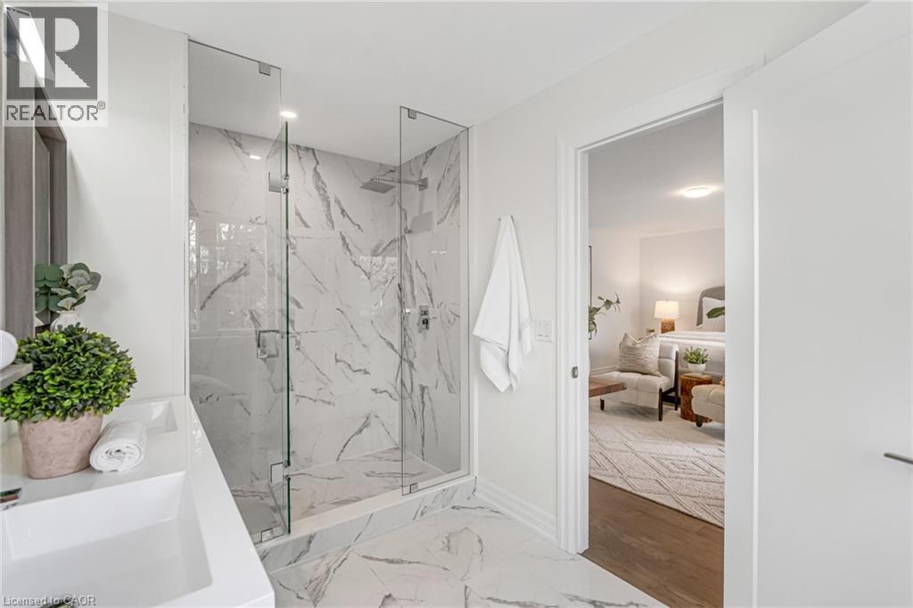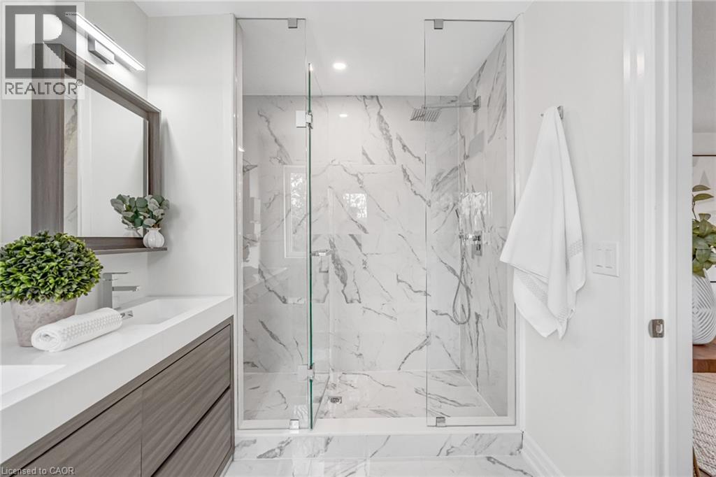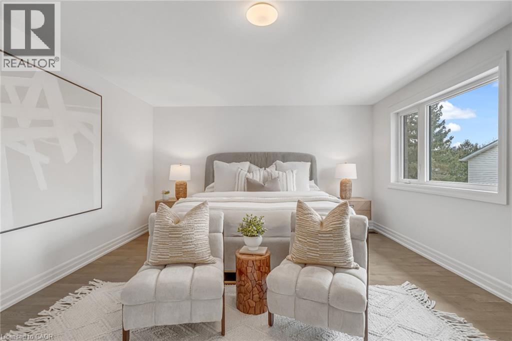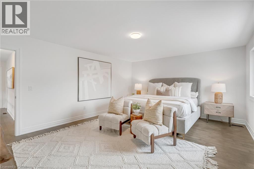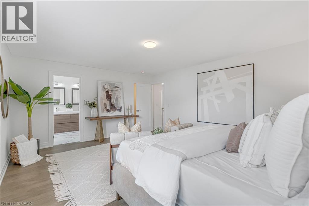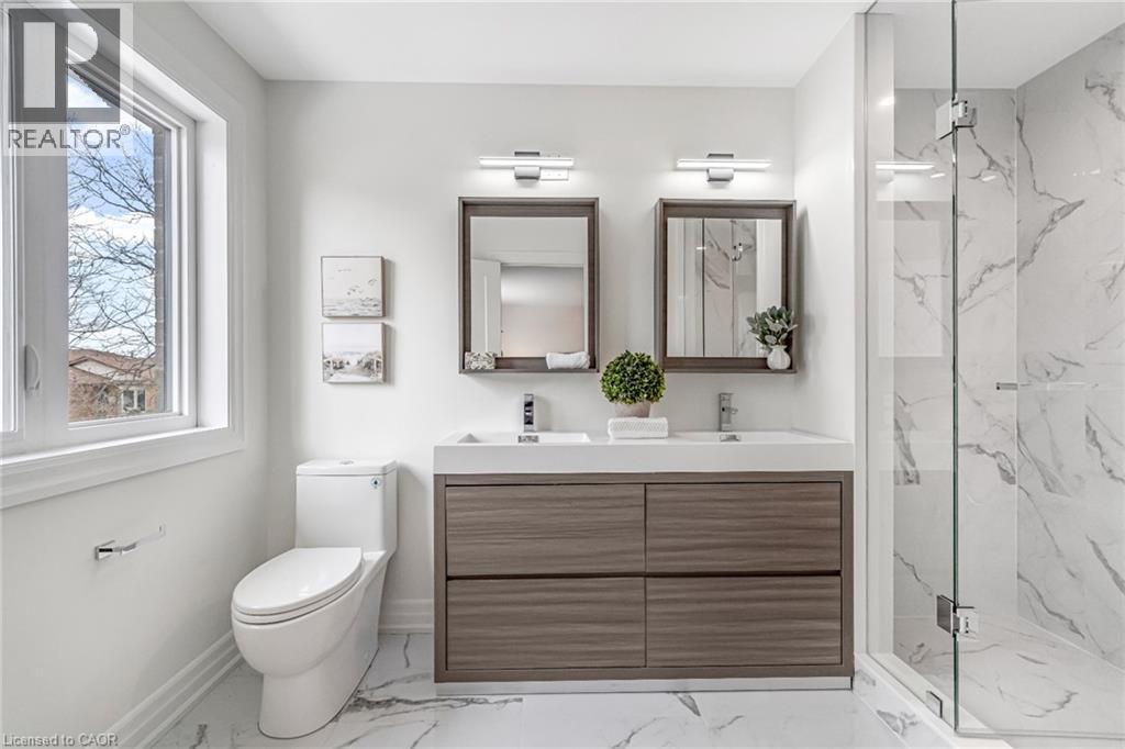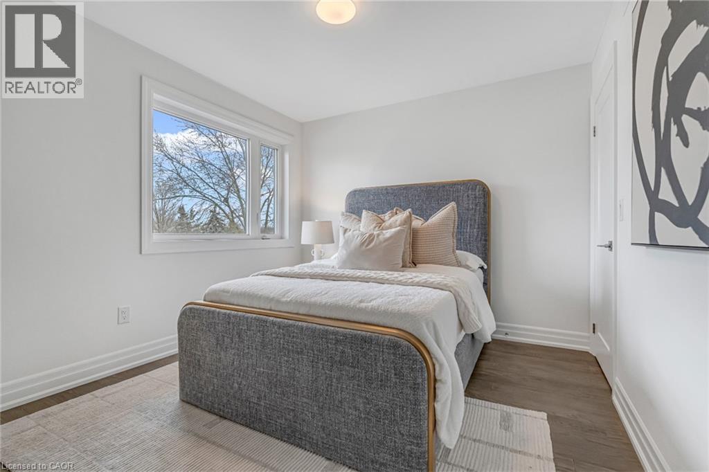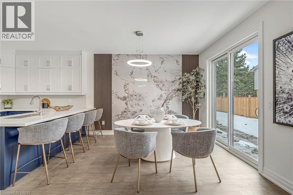 $296.01 MonthlyBrand-new executive town home never lived in! This stunning 1,799 sq. ft. home is situated in an exclusive enclave of just nine units, offering privacy and modern luxury. Its sleek West Coast-inspired exterior features a stylish blend of stone, brick, and aluminum faux wood. Enjoy the convenience of a double-car garage plus space for two additional vehicles in the driveway. Inside, 9-foot ceilings and engineered hardwood floors enhance the open-concept main floor, bathed in natural light from large windows and sliding glass doors leading to a private, fenced backyard perfect for entertaining. The designer kitchen is a chefs dream, boasting white shaker-style cabinets with extended uppers, quartz countertops, a stylish backsplash, stainless steel appliances, a large breakfast bar, and a separate pantry. Ideally located just minutes from the QEW, 407, and Burlington GO Station, with shopping, schools, parks, and golf courses nearby. A short drive to Lake Ontario adds to its appeal. Perfect for down sizers, busy executives, or families, this home offers low-maintenance living with a $296.01/month condo fee covering common area upkeep only, including grass cutting and street snow removal. Don't miss this rare opportunity schedule your viewing today! Tarion Warranty! (id:24334)