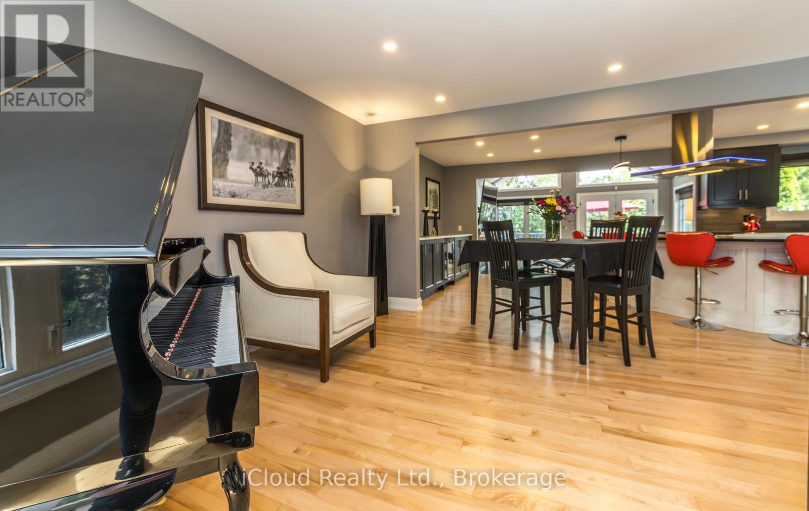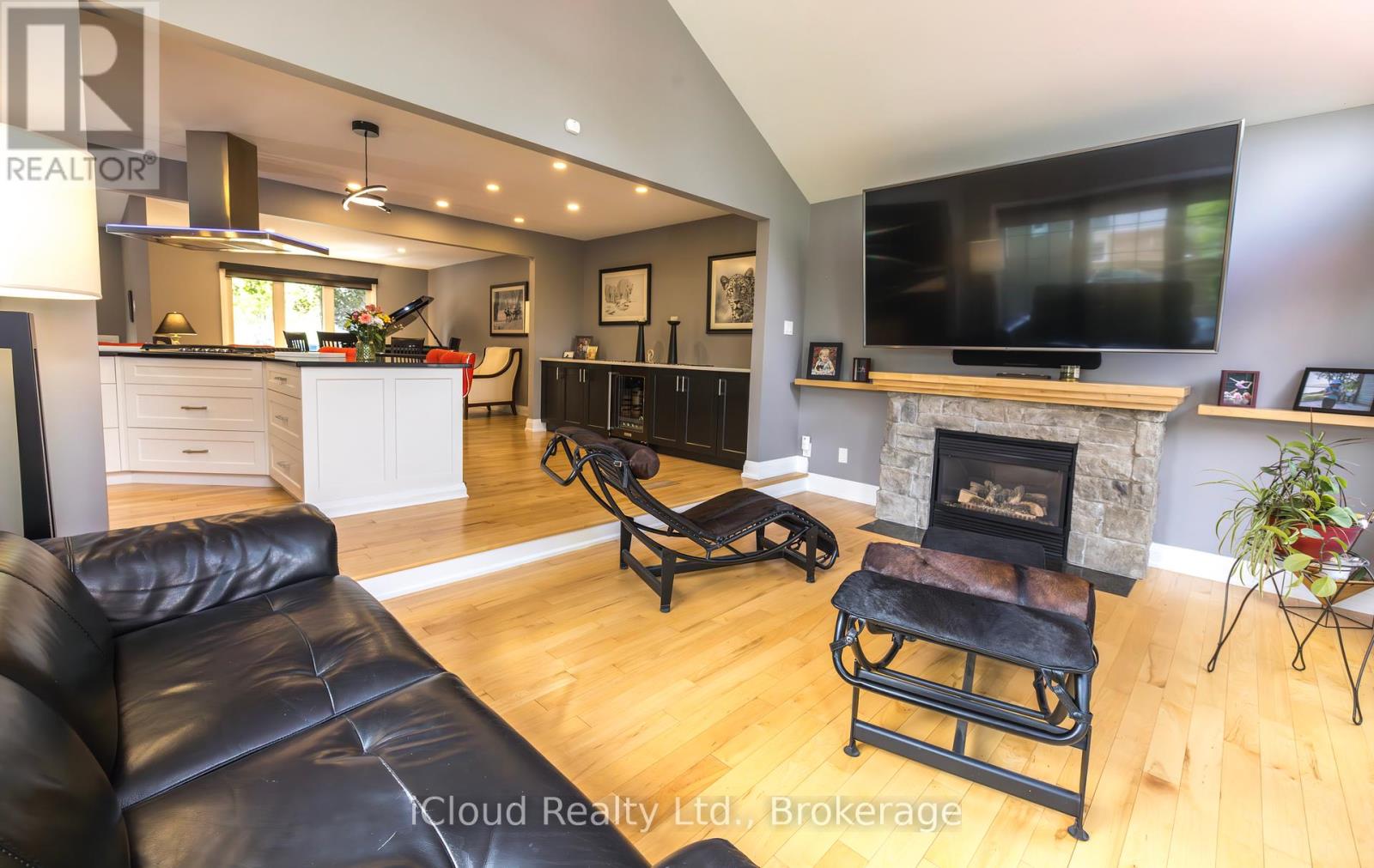 This upgraded, move-in-ready bungalow delivers over 1,500 sq. ft. of main floor living, combining modern comfort with timeless design. A striking sunken living room addition showcases cathedral ceilings, expansive windows with blackout blinds, and an abundance of natural light, an inviting space for both everyday living and entertaining. At the centre of the home is a chef's kitchen designed for style and function. Granite countertops, a gas cooktop, premium stainless steel venting, and built-in appliances set the stage, while an oversized island with a two-tone finish pairs cappuccino cabinetry with a crisp white breakfast bar. Extra-deep custom cabinets provide smart storage and organization. Maple hardwood flooring and LED pot lights run throughout the main level, complemented by two gas fireplaces that add warmth and character. The fully renovated lower level (2025) includes a sleek 3-piece bath, a large recreation room, and a versatile area perfect for a home office or fourth bedroom. Curb appeal is equally impressive, with double front doors, updated garage doors (2021), and a heated garage finished with epoxy flooring (2025), plus a dedicated workshop/hobby space. Outdoor living is elevated with a low-maintenance composite deck (2024) featuring a sunken hot tub and a new cover for year-round enjoyment. Major updates provide peace of mind: high-efficiency furnace (2020), oversized 5-ton A/C (2022), ProLine commercial-grade water heater (2020), 50-year fibreglass shingles (2012), and exterior sunshades (2020). Set close to parks, top schools, shopping, and transit, this home offers a rare blend of style, thoughtful upgrades, and lasting value. (id:24334)