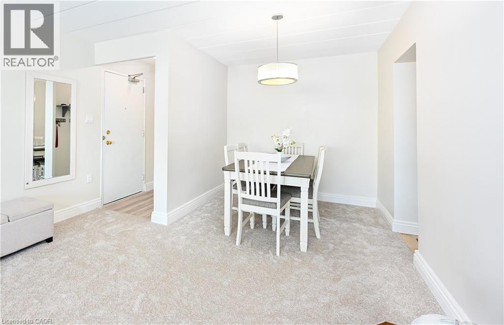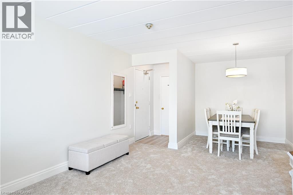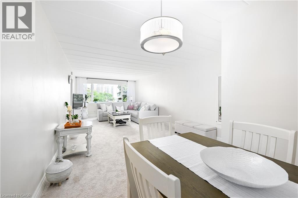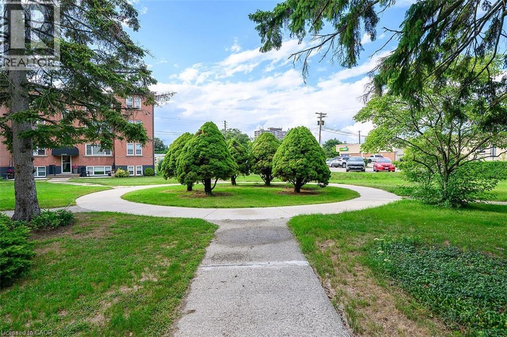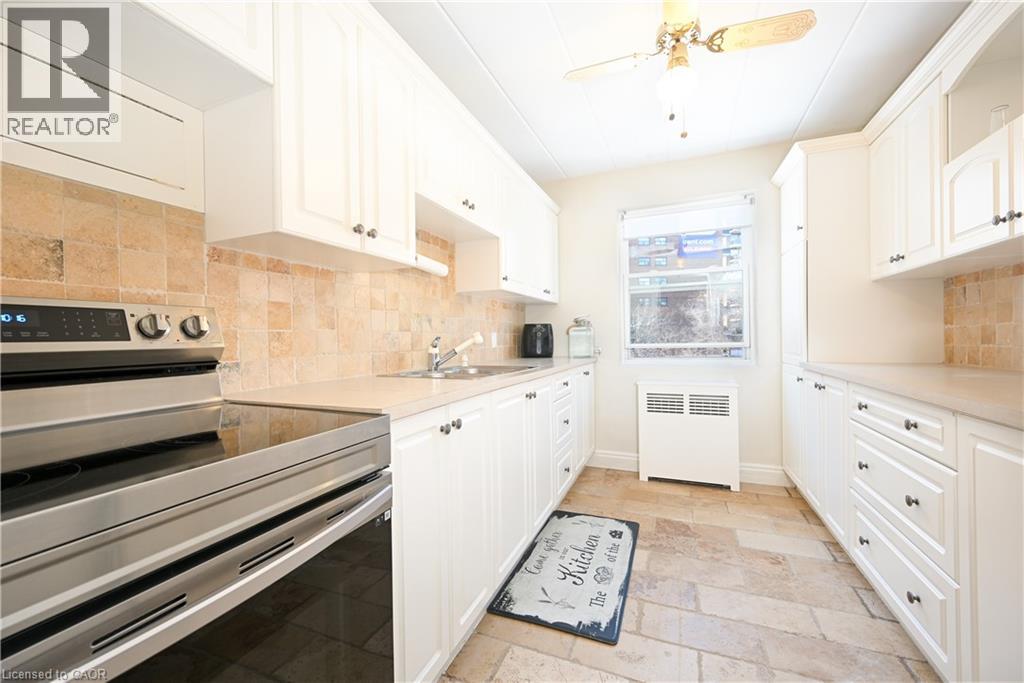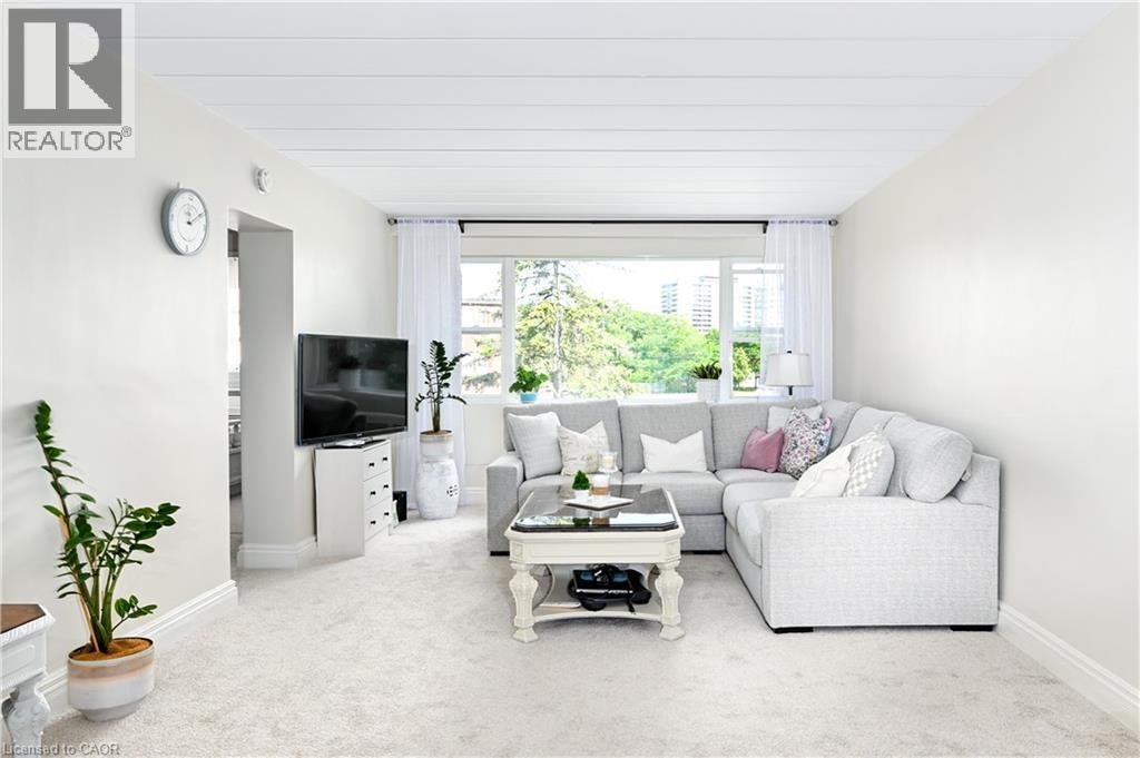 Welcome to this bright and spacious, 855sqft, 2 bedroom corner unit with lots of windows and lots of natural light, in a fantastic and highly desirable central Burlington location, close to shops, dining, downtown Burlington, hospital, highways, rec/community centre, library, parks, trails, and endless other great amenities. This unit has spacious principal rooms, is an inviting and functional space ideal for those downsizing, or young professionals, and also offers an updated kitchen with high quality white cabinetry, backsplash, travertine tile floors, newer stainless steel stove, pantry, double sink, and lots of cupboard and countertop space, 2 spacious bedrooms including the primary with large windows overlooking the courtyard and trees, an updated 4-piece bathroom, a large living room with picture windows overlooking open space and trees, a spacious dining room off of the kitchen, quality vinyl windows updated in 2018, and freshly painted throughout. This unit is very clean, fresh, and comfortable, and shows 10++. The building is located at the back of the complex, well off the road, and backs on to lawn area, and walking and biking trails. The building is very quiet and well maintained. The building amenities also include a storage locker, visitor parking, and onsite laundry. The unit comes with 1 parking space, with potential to rent a 2nd spot if needed. The low monthly maintenance fee includes PROPERTY TAX, heat, water, parking, locker, building insurance, exterior maintenance, and visitor parking. No pets (unless service animal), and no rentals/leasing. Don’t wait and miss your opportunity to call this beautiful unit Home! Dare to compare! Welcome Home! (id:24334)