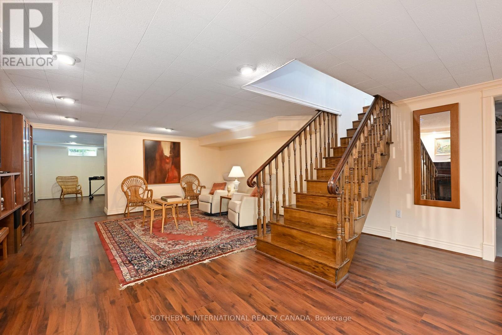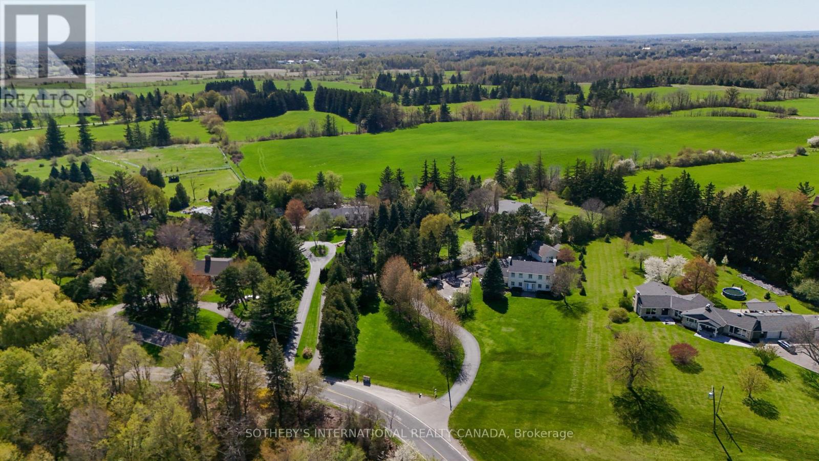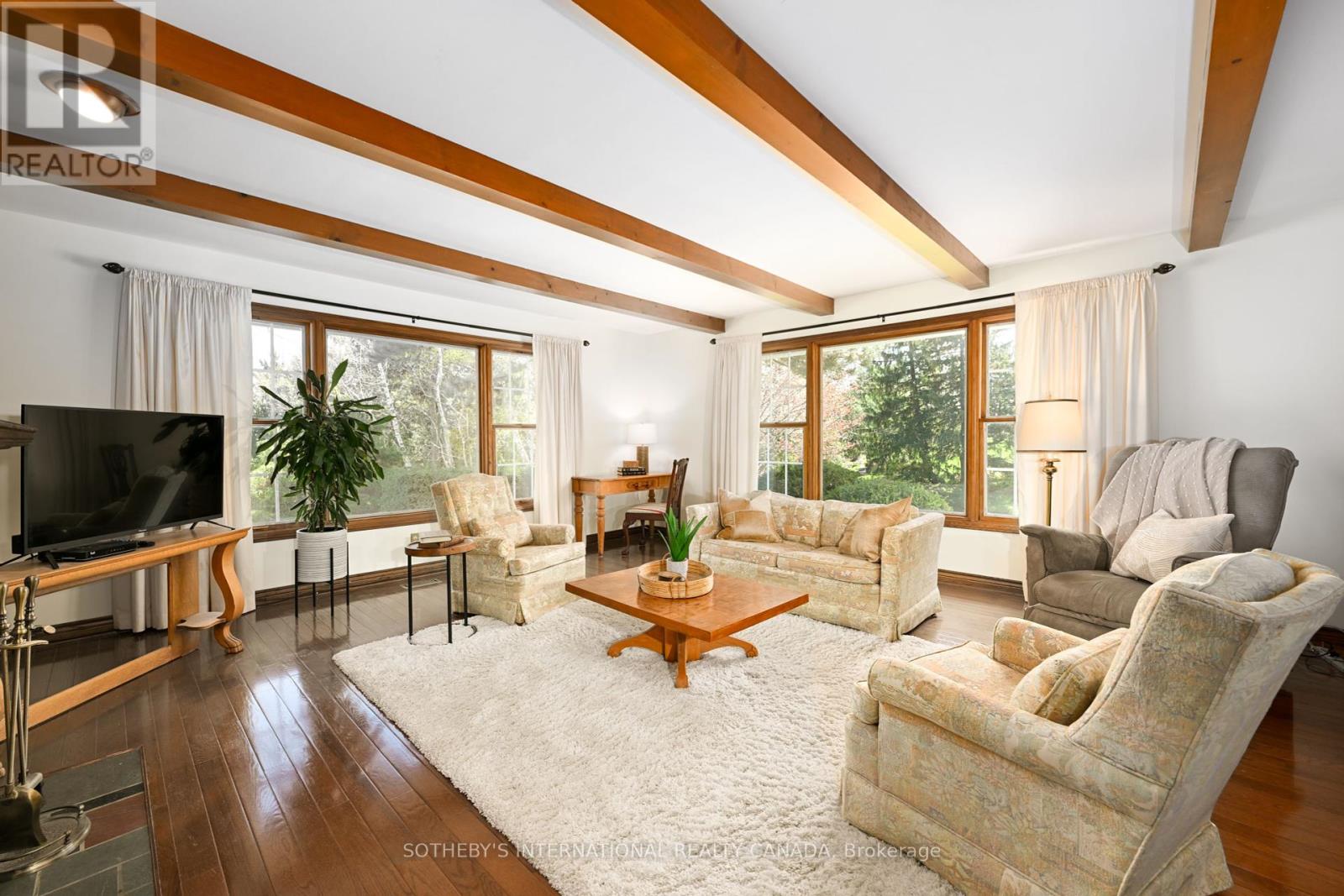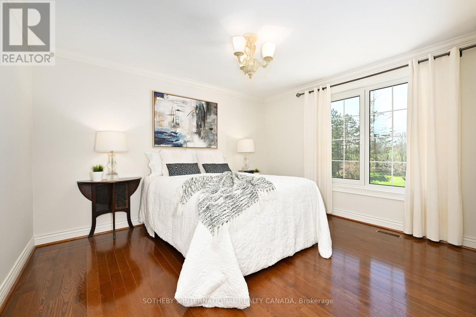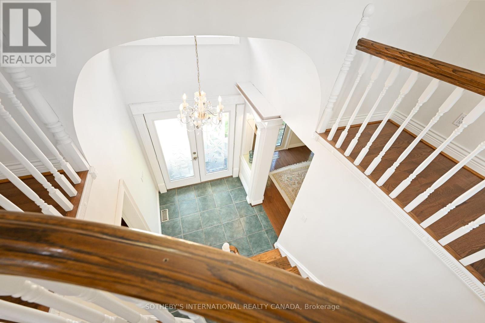 Follow the winding 400-foot paved driveway and discover a world of privacy, elegance, and serenity all just minutes from the city. Nestled on 1.66 acres of beautifully secluded land, this extraordinary home feels like a countryside retreat, yet it's only 2.5 km from Hwy 5, 3 km to Hwy 407, and close to major shopping and conveniences. Step inside and be charmed by nearly 4,800 sq ft of exquisitely finished living space. The grand foyer greets you with a vaulted ceiling that soars and opens to the second floor, creating an impressive sense of space and elegance, setting the tone for the home's thoughtfully designed interior. Crafted for those who appreciate timeless beauty and detail, every room tells a story from rich 3/4" oak hardwood floors, custom millwork, with elegant crown molding through-out to oversized windows framing peaceful, ever-changing views. At the heart of the home, the modern-classic kitchen blends premium appliances with inviting warmth. Enjoy sunny mornings in the cozy breakfast nook and host elegant dinners in the formal dining room. The main floor offers a graceful flow with a living room, family room, and a versatile bedroom with a 4-piece bath perfect for guests, a home office, or in-laws. The primary suite is a true sanctuary, featuring a spa-like ensuite, a custom dressing room, and French doors that open to a private patio perfect for morning coffee or stargazing. Upstairs are two spacious bedrooms, a well-appointed bathroom, and a skylit bonus room ideal as a studio, den or potential fifth bedroom. The lower level includes a large rec/games area, a workshop, and ample storage. Outside, unwind on tranquil patios surrounded by lush landscaping, mature trees, and a serene pond teeming with carp. This is more than a home it's a feeling. A rare blend of quiet luxury, natural beauty, and modern convenience. Come experience it for yourself. (id:24334)
