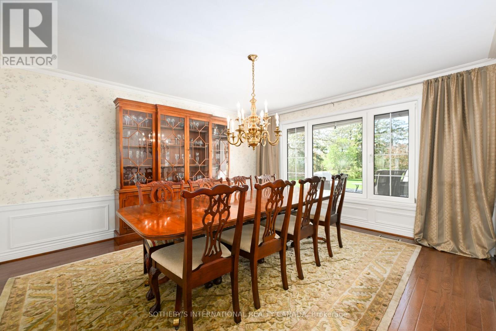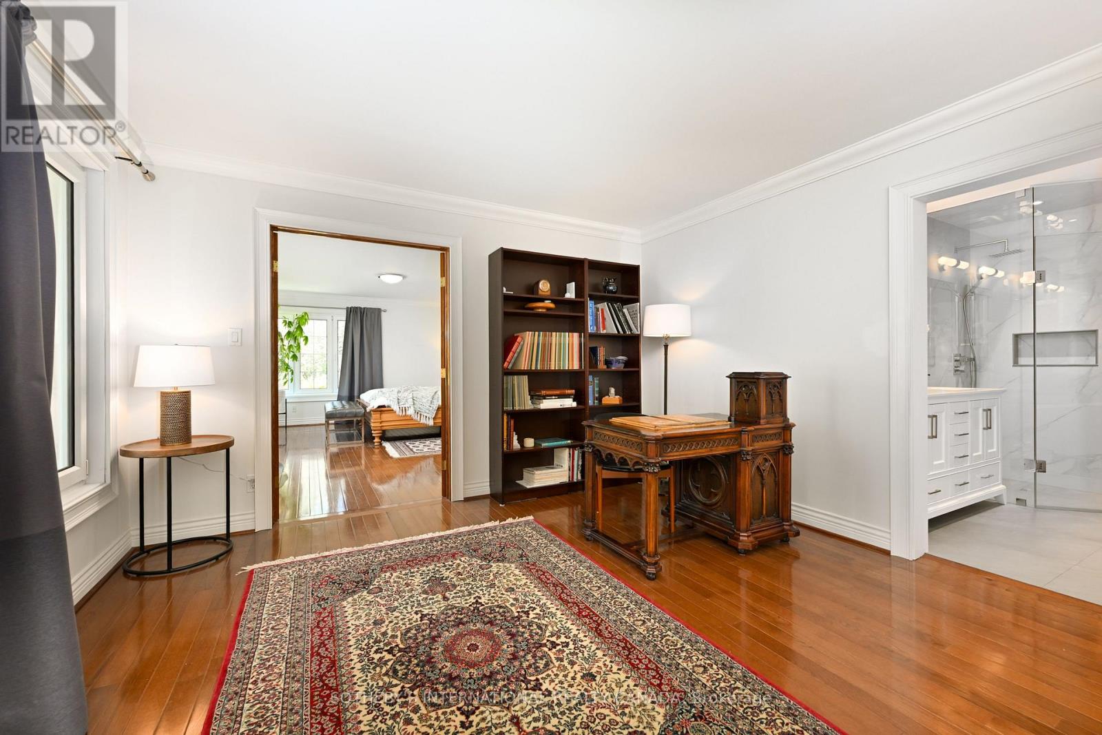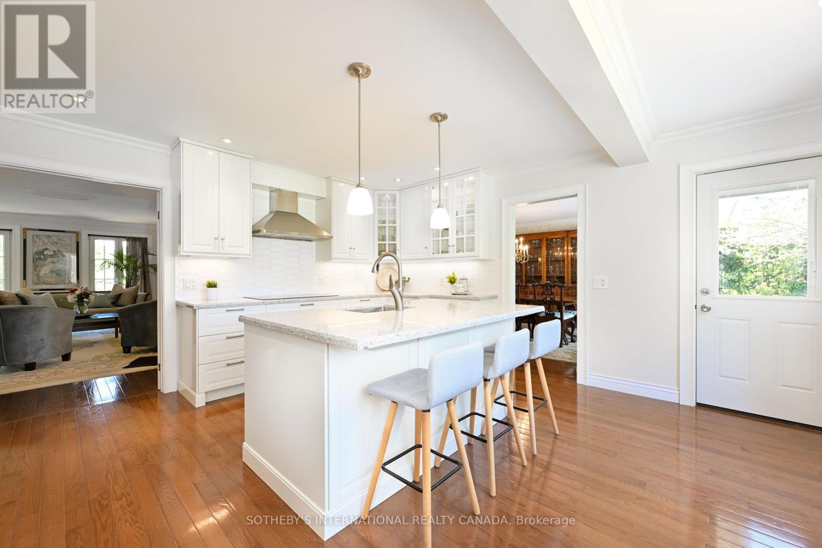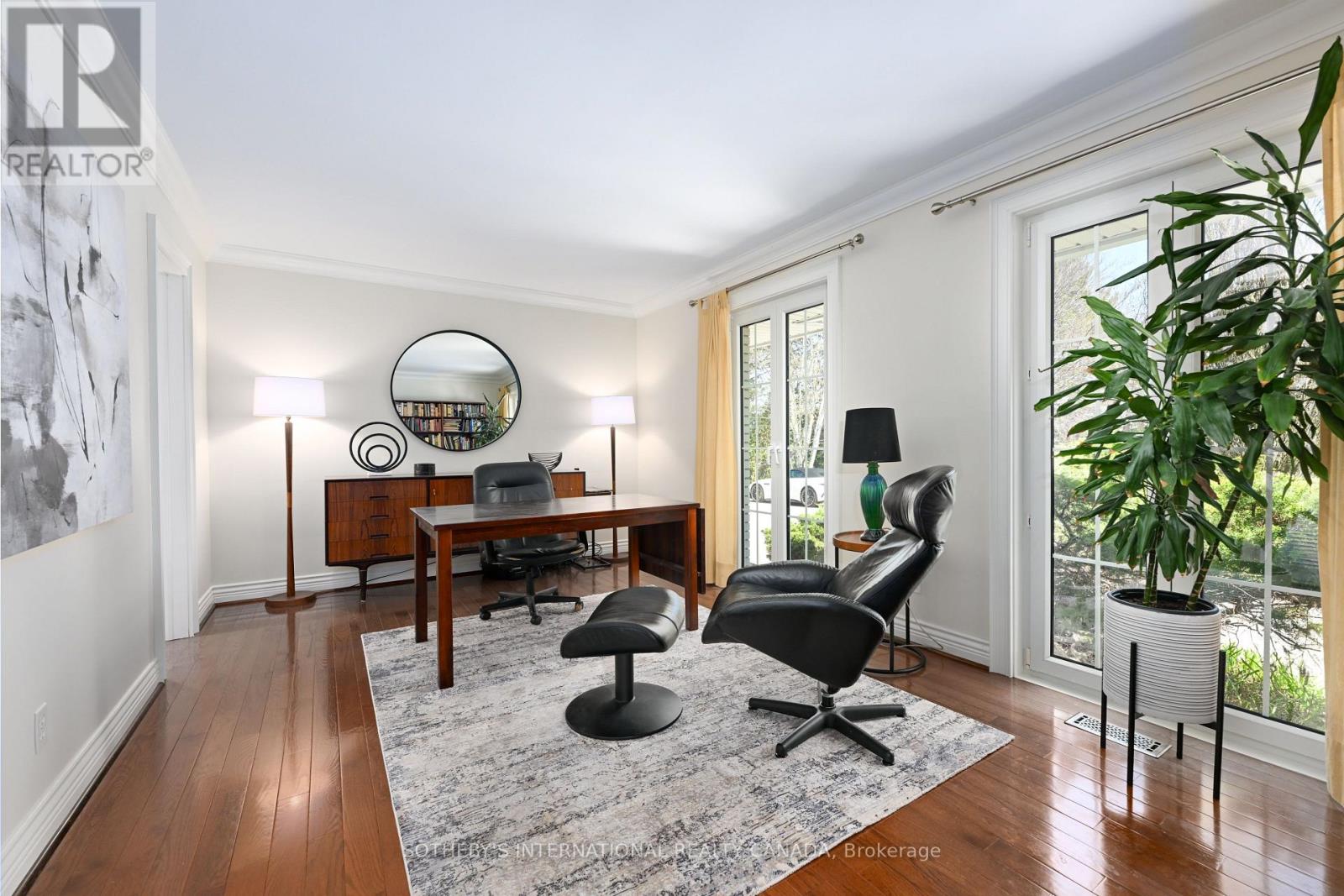 Follow the winding 400-foot paved driveway and discover a world of privacy, elegance, and serenity all just minutes from the city. Nestled on 1.66 acres of beautifully secluded land, this extraordinary home feels like a countryside retreat, yet it's only 2.5 km from Hwy 5, 3 km to Hwy 407, and close to major shopping and conveniences. Step inside and be charmed by nearly 4,800 sq ft of exquisitely finished living space. The grand foyer greets you with a vaulted ceiling that soars and opens to the second floor, creating an impressive sense of space and elegance, setting the tone for the home's thoughtfully designed interior. Crafted for those who appreciate timeless beauty and detail, every room tells a story from rich 3/4" oak hardwood floors, custom millwork, with elegant crown molding through-out to oversized windows framing peaceful, ever-changing views. At the heart of the home, the modern-classic kitchen blends premium appliances with inviting warmth. Enjoy sunny mornings in the cozy breakfast nook and host elegant dinners in the formal dining room. The main floor offers a graceful flow with a living room, family room, and a versatile bedroom with a 4-piece bath perfect for guests, a home office, or in-laws. The primary suite is a true sanctuary, featuring a spa-like ensuite, a custom dressing room, and French doors that open to a private patio perfect for morning coffee or stargazing. Upstairs are two spacious bedrooms, a well-appointed bathroom, and a skylit bonus room ideal as a studio, den or potential fifth bedroom. The lower level includes a large rec/games area, a workshop, and ample storage. Outside, unwind on tranquil patios surrounded by lush landscaping, mature trees, and a serene pond teeming with carp. This is more than a home it's a feeling. A rare blend of quiet luxury, natural beauty, and modern convenience. Come experience it for yourself. (id:24334)