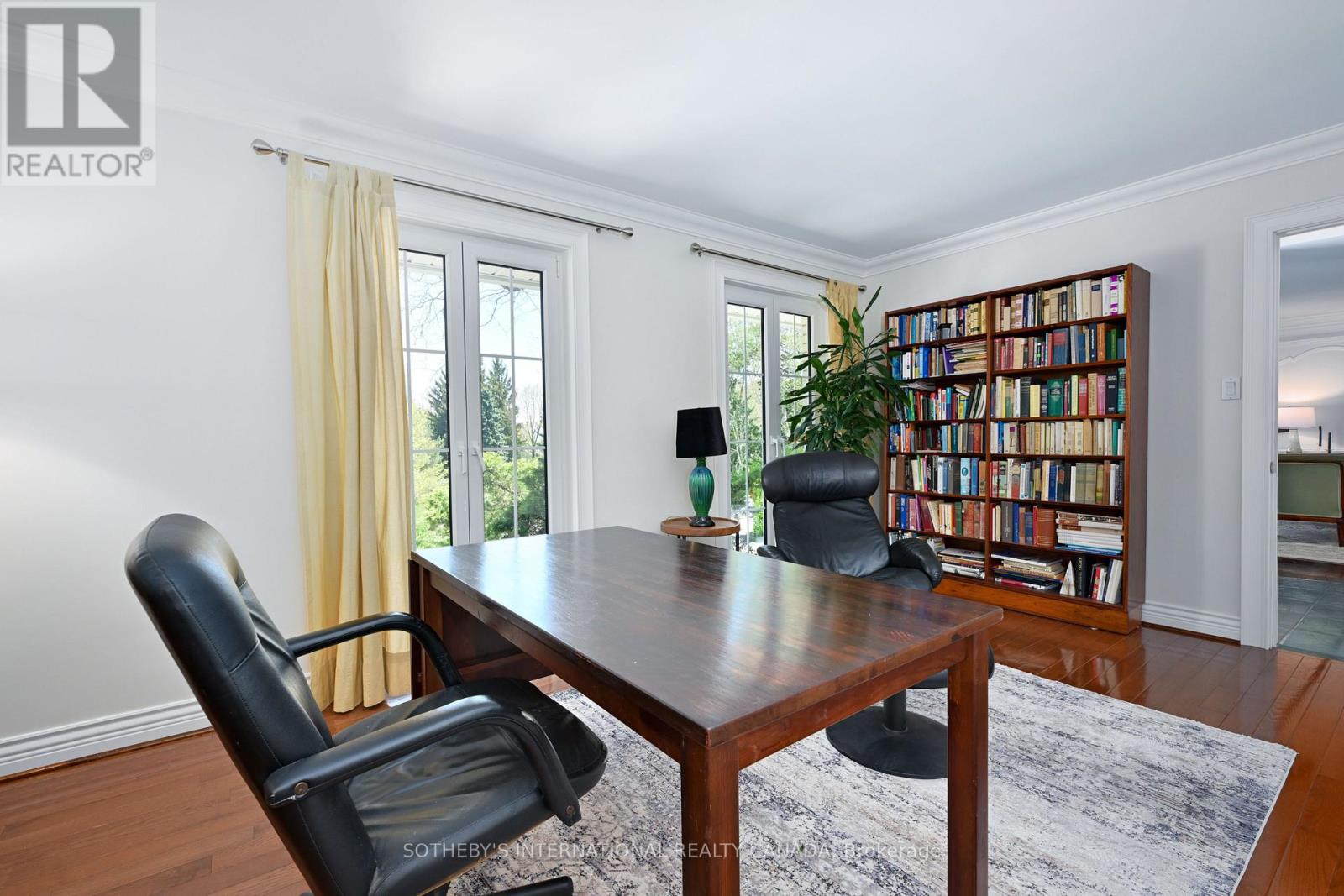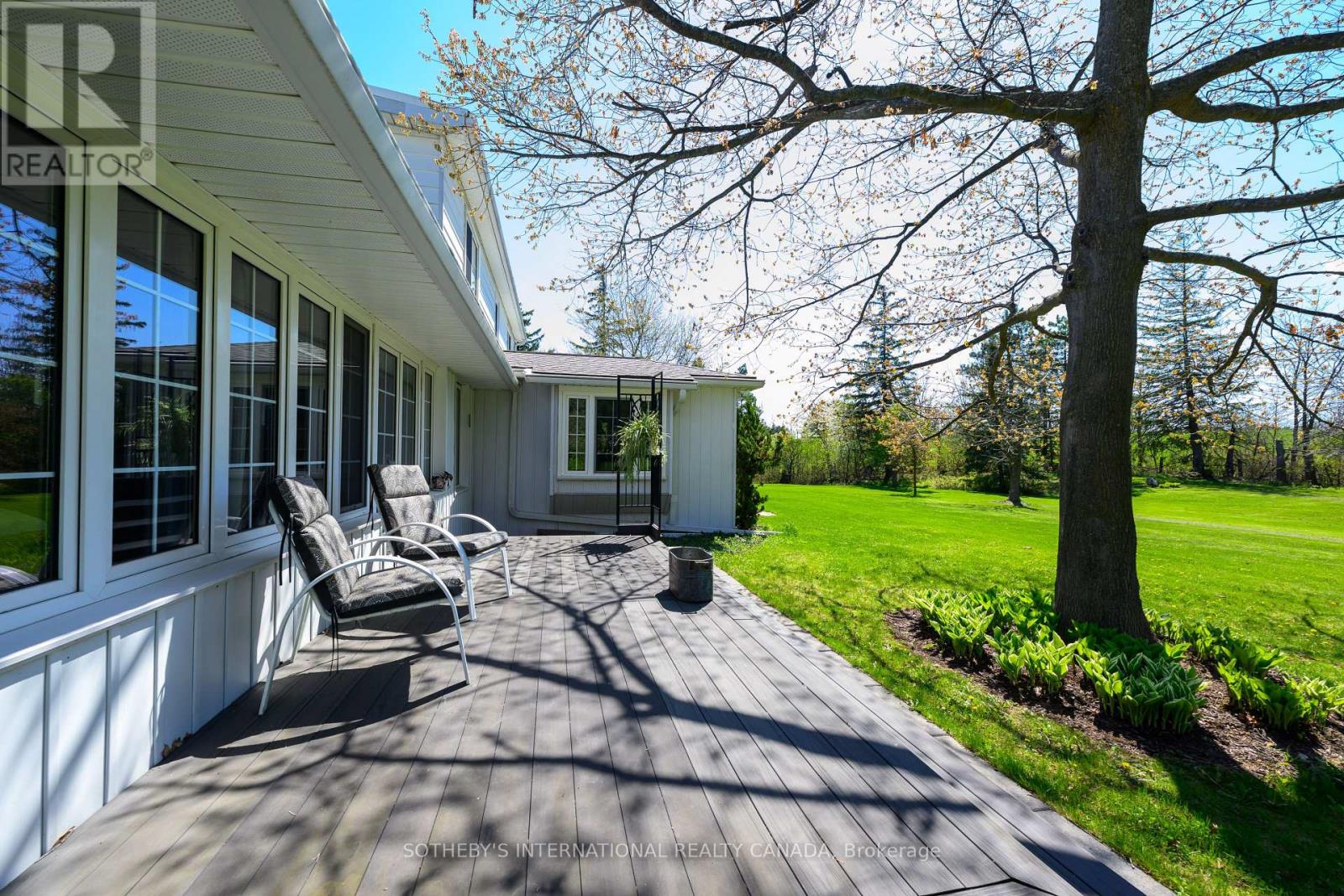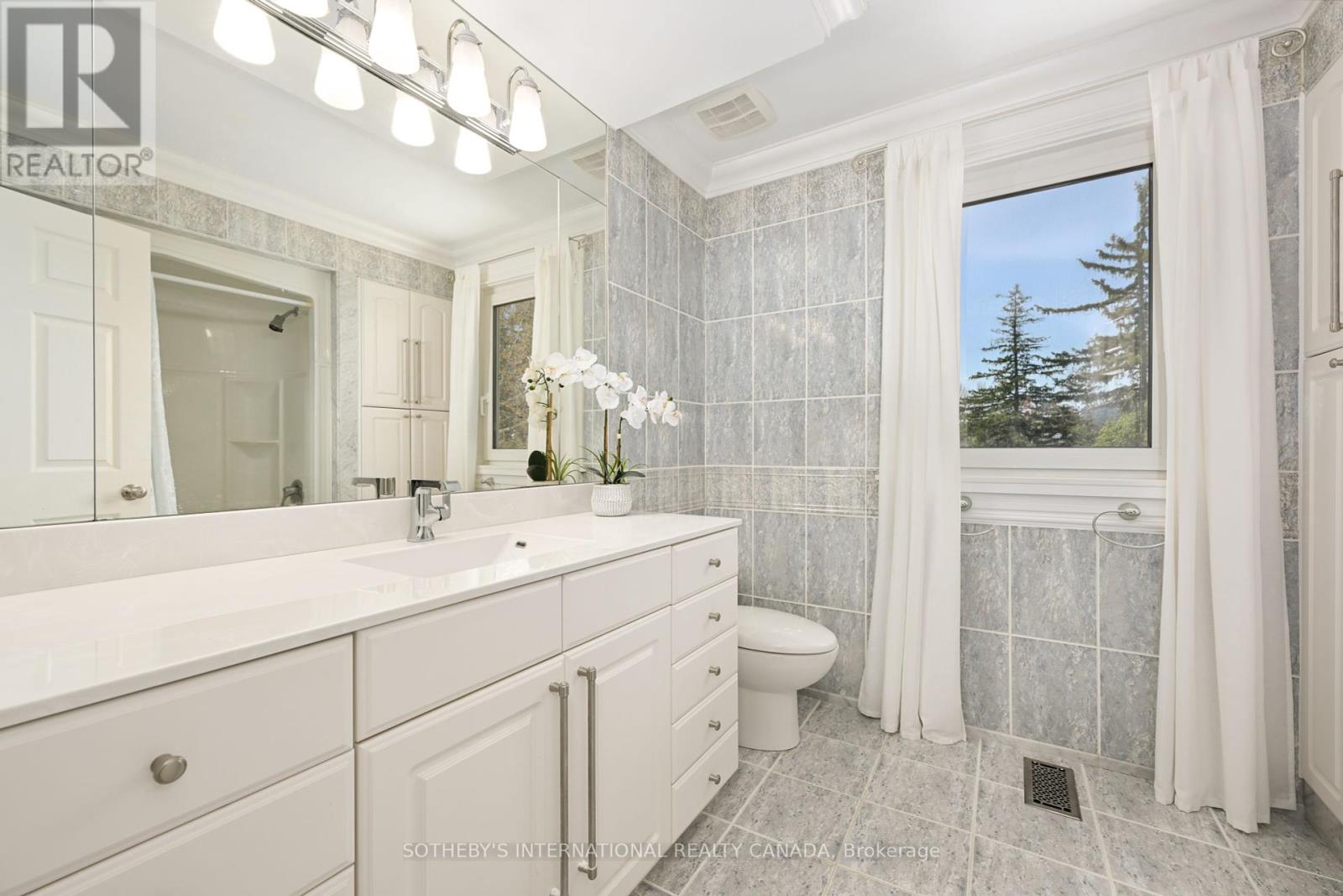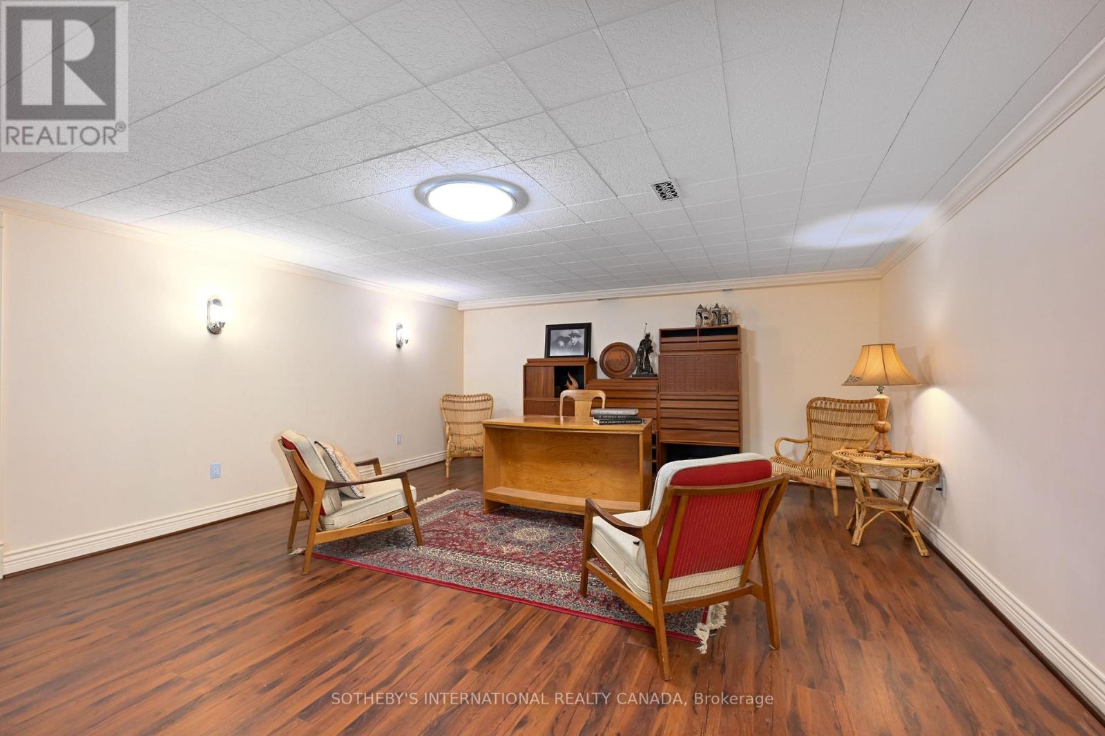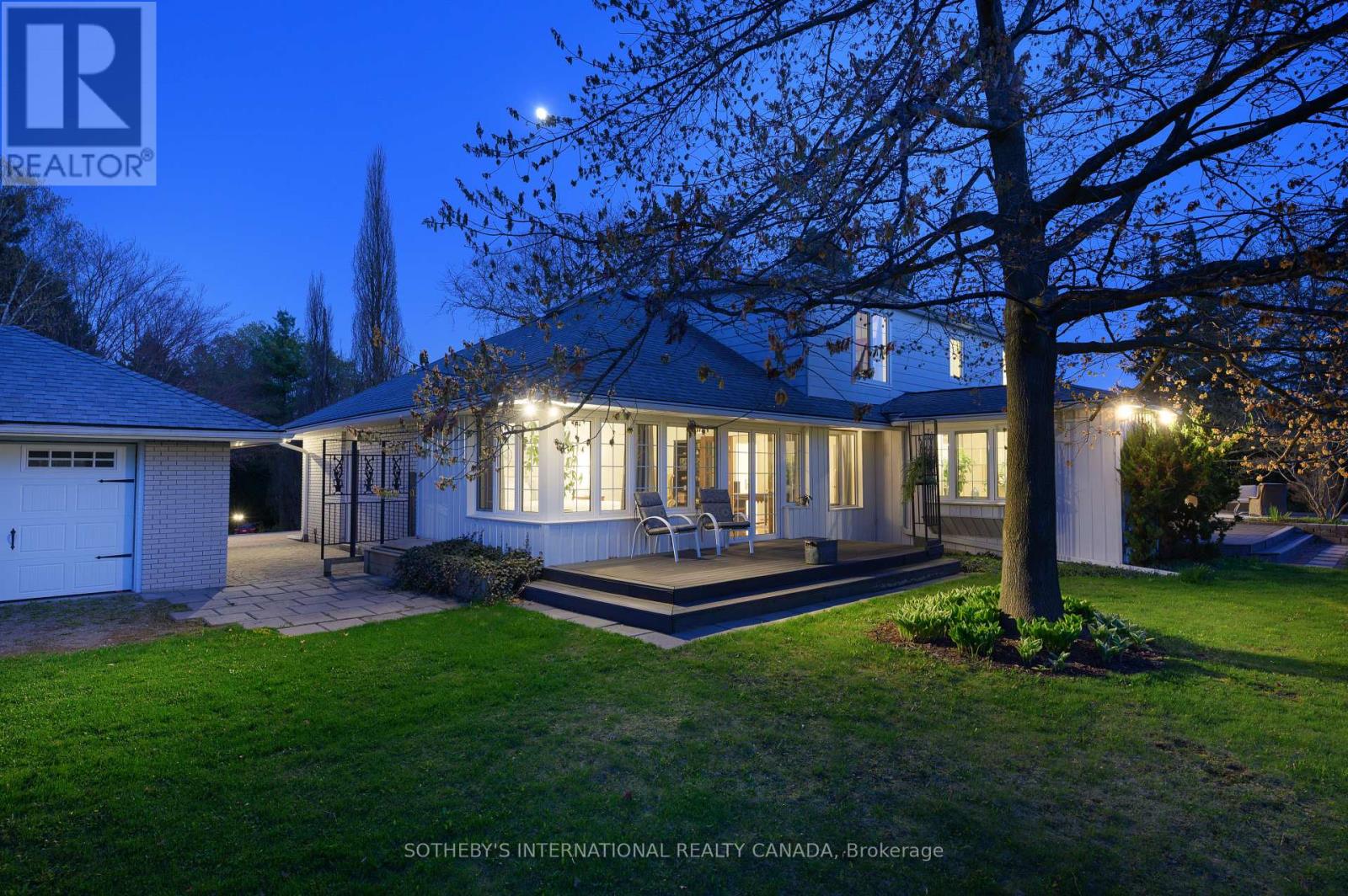 Follow the winding 400-foot paved driveway and discover a world of privacy, elegance, and serenity all just minutes from the city. Nestled on 1.66 acres of beautifully secluded land, this extraordinary home feels like a countryside retreat, yet it's only 2.5 km from Hwy 5, 3 km to Hwy 407, and close to major shopping and conveniences. Step inside and be charmed by nearly 4,800 sq ft of exquisitely finished living space. The grand foyer greets you with a vaulted ceiling that soars and opens to the second floor, creating an impressive sense of space and elegance, setting the tone for the home's thoughtfully designed interior. Crafted for those who appreciate timeless beauty and detail, every room tells a story from rich 3/4" oak hardwood floors, custom millwork, with elegant crown molding through-out to oversized windows framing peaceful, ever-changing views. At the heart of the home, the modern-classic kitchen blends premium appliances with inviting warmth. Enjoy sunny mornings in the cozy breakfast nook and host elegant dinners in the formal dining room. The main floor offers a graceful flow with a living room, family room, and a versatile bedroom with a 4-piece bath perfect for guests, a home office, or in-laws. The primary suite is a true sanctuary, featuring a spa-like ensuite, a custom dressing room, and French doors that open to a private patio perfect for morning coffee or stargazing. Upstairs are two spacious bedrooms, a well-appointed bathroom, and a skylit bonus room ideal as a studio, den or potential fifth bedroom. The lower level includes a large rec/games area, a workshop, and ample storage. Outside, unwind on tranquil patios surrounded by lush landscaping, mature trees, and a serene pond teeming with carp. This is more than a home it's a feeling. A rare blend of quiet luxury, natural beauty, and modern convenience. Come experience it for yourself. (id:24334)