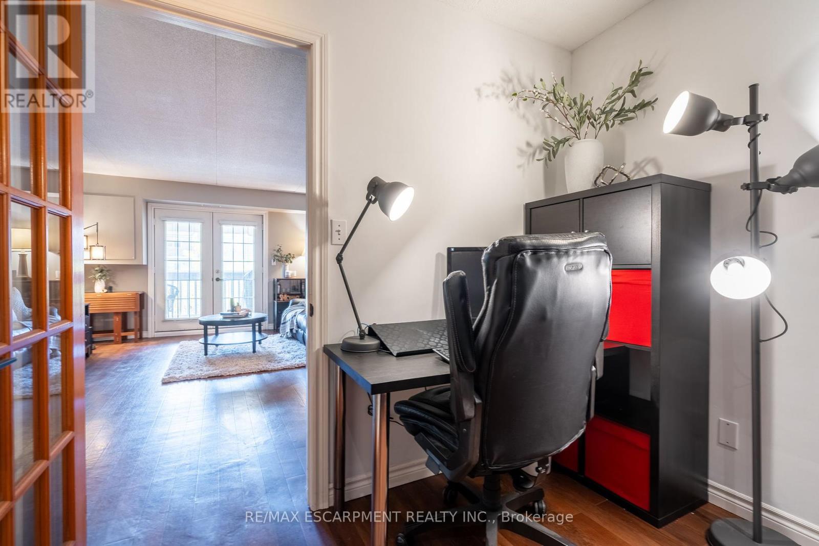 1 Bedroom + Den condo situated in the desirable Tansley Woods neighbourhood! Enjoy the convenience of in-suite laundry, parking for one vehicle, a storage locker and an additional storage closet off the balcony. Featuring a fantastic open-concept floor plan, tasteful flooring, and light tones throughout. The kitchen is finished with ample cupboard space, an updated backsplash, and a peninsula with seating. The spacious living area features a functional design, ideal for comfortable everyday living and entertaining. Enjoy a large covered balcony, perfect for relaxing outdoors! The bedroom is freshly painted and bright, and features a double closet. The den is a major bonus, offering flexibility as a home office, hobby room, kids play area, and more. A tasteful 4-piece bathroom completes this lovely condo. Located in the excellent, walkable community of Tansley Gardens near all amenities, including grocery stores, schools, great restaurants, shops, parks such as Tansley Woods Park, and the Tansley Woods Community Centre with a library and pool. Within a short drive, you'll find the scenic Escarpment with renowned golf courses and trails, as well as easy access to highways 5, 407, the QEW, and public transportation, including the Burlington and Appleby GO stations. Move-in ready, your next home awaits! (id:24334)