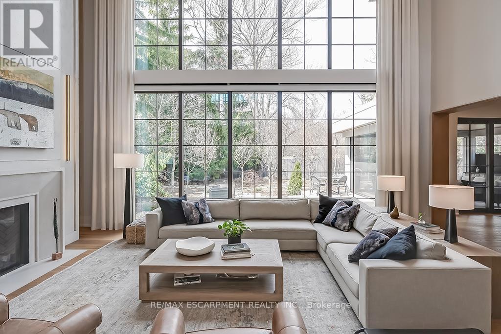 Introducing "Roseland Manor" Awarded "Luxury Residence Canada" in the prestigious 2024 International Design & Architecture Awards! Located in the heart of "Olde" Roseland on a 100' x 150' lot backing onto Roseland Park and Tennis Club. 9747 sqft. of luxury living space that showcases impeccable craftsmanship and harmoniously combines elegance and functionality. At the core of the home, the chefs kitchen boasts top-tier appliances, a full butlers pantry and a walk-out to a covered terrace with outdoor kitchen that overlooks the private and tranquil yard designed and completed by Cedar Springs. The great room helps to fill the home with loads of natural light thanks to its stunning display of floor to ceiling windows. The gas fireplace and a 20' coffered oak ceiling help to complete this unique and special setting. The main level also features a spacious bedroom with 3-pc ensuite and a library/office with gas fp and custom soapstone mantle. The luxurious upper level is highlighted by the primary bedroom, which incorporates a charming sitting area separated by a stone fireplace wall and features a 5-piece ensuite with access to a private dressing room. Two additional bedrooms on the upper level both have their own ensuites and the office can be used as an additional bedroom if desired. The extensive list of luxury features includes engineered white oak floors with herringbone hallway floors, oak ceilings, a residential elevator servicing all three levels, Control4 home automation, 400 amp service with 400 amp Generac generator, two laundry rooms, garage parking for three cars including a car lift to the lower level garage/workshop, an exterior snowmelt system for the driveway and front walkway/courtyard and a fully finished lower level with hydronic under floor heating, wine cellar, home theatre, exercise room and wet bar. This truly one of a kind residence is a unique opportunity and must be seen to be fully appreciated! 5 bedrooms and 4+2 bathrooms. Luxury Cer (id:24334)