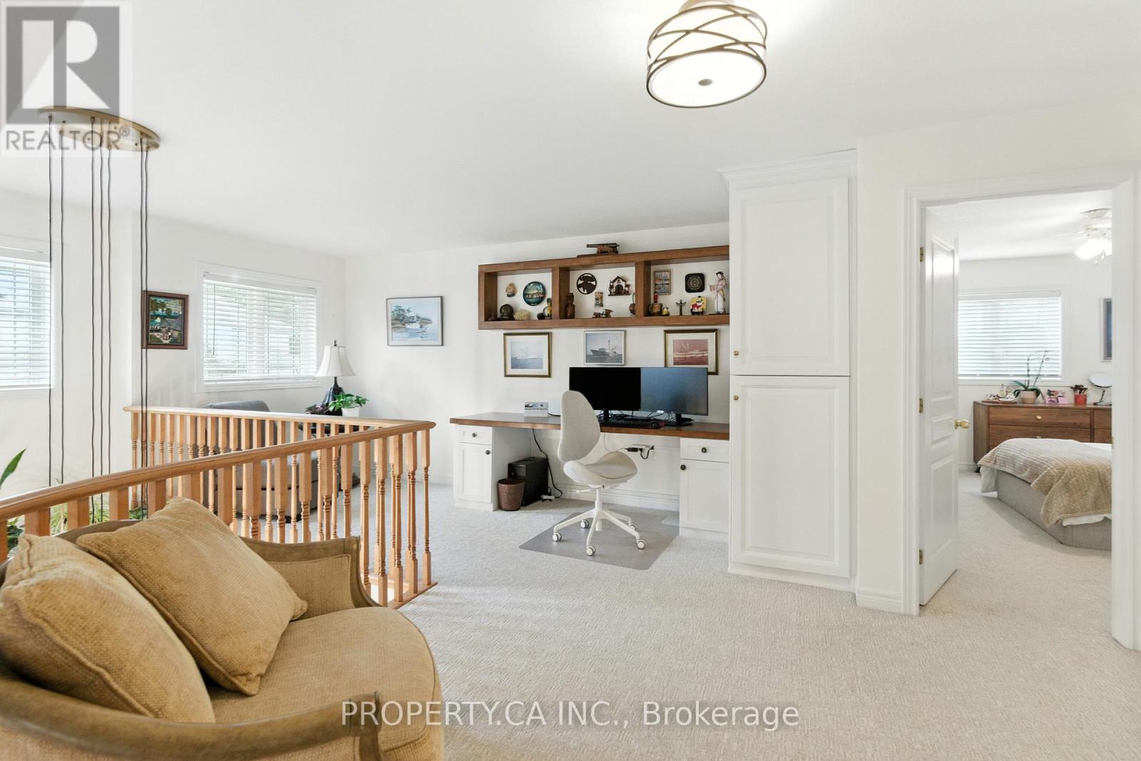 $272.06 MonthlyWelcome to Greystones properties, this end unit exclusive style bungaloft townhome offers over 3000 square feet thoughtfully designed living space. 3+2 bedroom, 3.5 washrooms features open concept layout with custom built kitchen, quartz counter tops, stainless steal appliances and eat in kitchen area. Main floor offers vaulted ceilings, hardwood floors, specious primary bedroom with it 4 piece washroom, inside entry from 2 car garage and a functional layout that is great for entertaining.Stylish and spacious loft featuring 2 bedrooms, a full 4-piece bathroom, and a versatile office area with custom cabinetry overlooking the bright, open-concept living room. Recently refreshed with modern paint and new carpet throughout. Newly finished basement offering 2 bedrooms, a well-appointed washroom with walk-in shower, an inviting recreational/lounge are, laundry room with 2 sets of machines, and a sizable unfinished storage space. This property is a rare find with low maintenance living and low condo fees, including snow removal, weekly landscaping, roof replaced last year. Outside, enjoy a private, fenced and generous size patio for relaxation or entertaining. Tucked in nature, backing onto Bronte Park with direct access to walking trails and green space, while still just minutes from major shops, restaurants, and amenities. (id:24334)