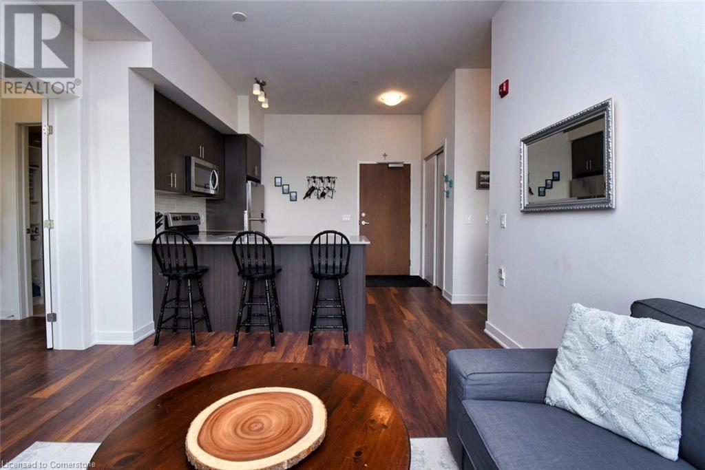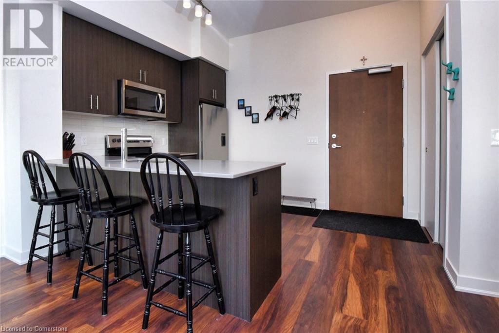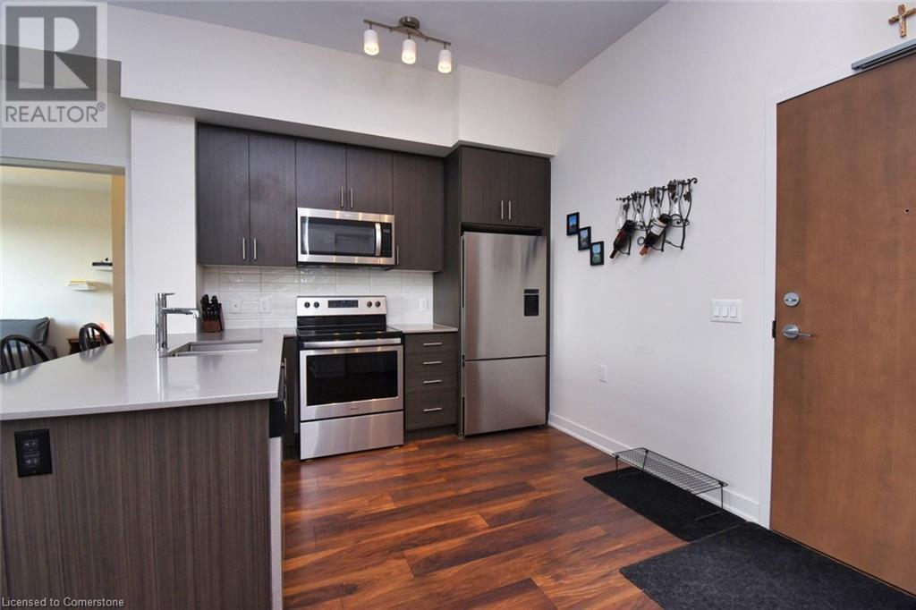 Affinity Condominiums Luxury and Convenience combine in the modern six storey buildings of the Affinity.The buildings are located in desireable Aldershot area of Burlington. The popular area features many services and amenities .Public Transit is virtually steps from your door,and the Go Station, HWY 403 and QEW are just a short drive away. Much to experience and enjoy in the vibrant Aldershot Community Parks, Tennis, Golf, Restaurants, Boutique- like Specialty Shops, The beautiful Royal Botanical Gardens, Mapleview Mall Everything you might need or want all near by. Enjoy the peace and quiet and unobstruced views from the top floor(Unit 610) This Suite features two spacious bedrooms ,and 2 full bathrooms 3 piece and 4 piece. The contemporary open- concept style floor plan offers remarkable10 ft ceilings in the main rooms, plenty of windows including roll blinds, and Sliding door with access to the cosy balcony, all of which provide an abundance of natural light to the Suite. The well appointed Kitchen design features quality cabinets, plenty of storage, six existing appliances, and a convenient built in extended counter or breakfast bar. Washer/Dryer is hidden nicely from view off the kitchen. The inviting Great Room is central to the unit providing privacy to each of the, two bedroom /bathroom areas. Locker and parking space,(both owned) are in the garage and located in close proximity.This amenity rich building includes, roof top patio and community BBQs , Party Room, Plenty of Visitor parking conveniently located, Electric Charging Station for Visitors and Residents (pay for use), Bike room rental, Gym and exercise room, Rare convenient Pet Relieve Area exclusive to Affinity residents WiFi available in the lobby. Few amenities require booking/deposit or rental fee. The Property Manager office is conveniently located in 320 Plains Rd Your Fob provides entry. Don't Delay.book an appointment. view this property today. (id:24334)