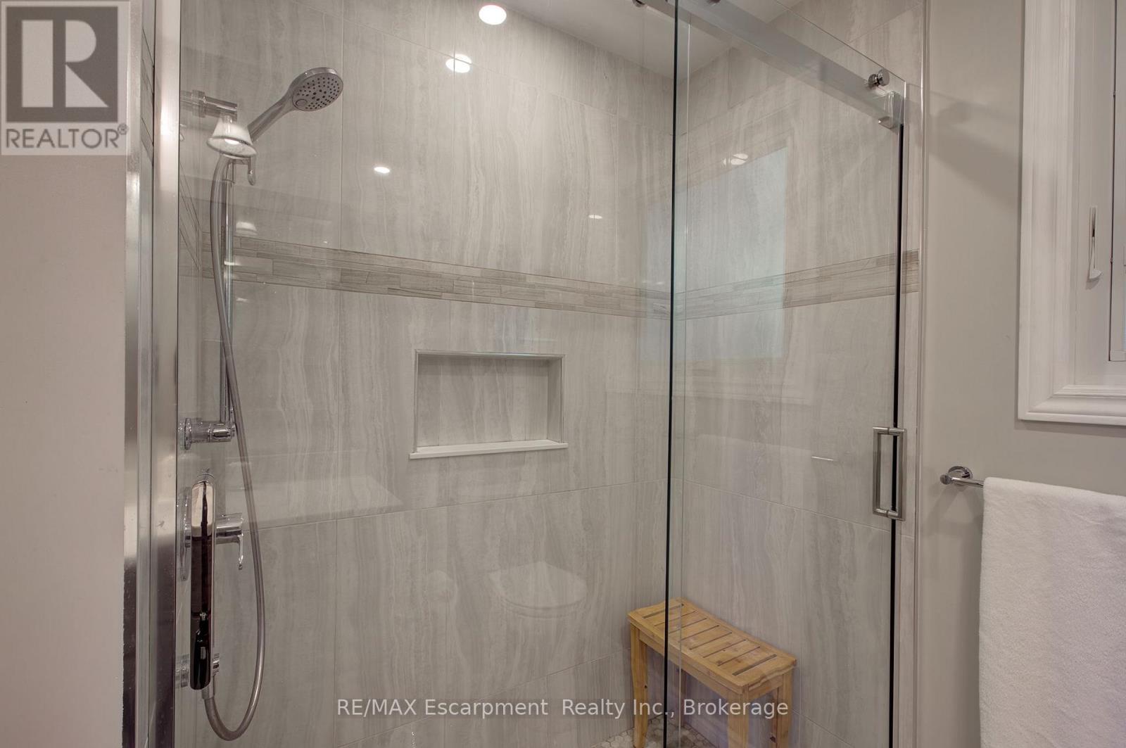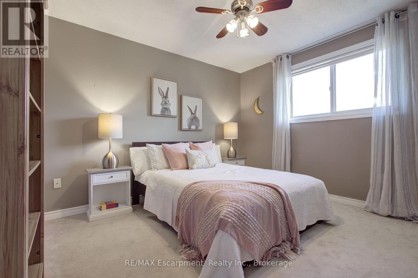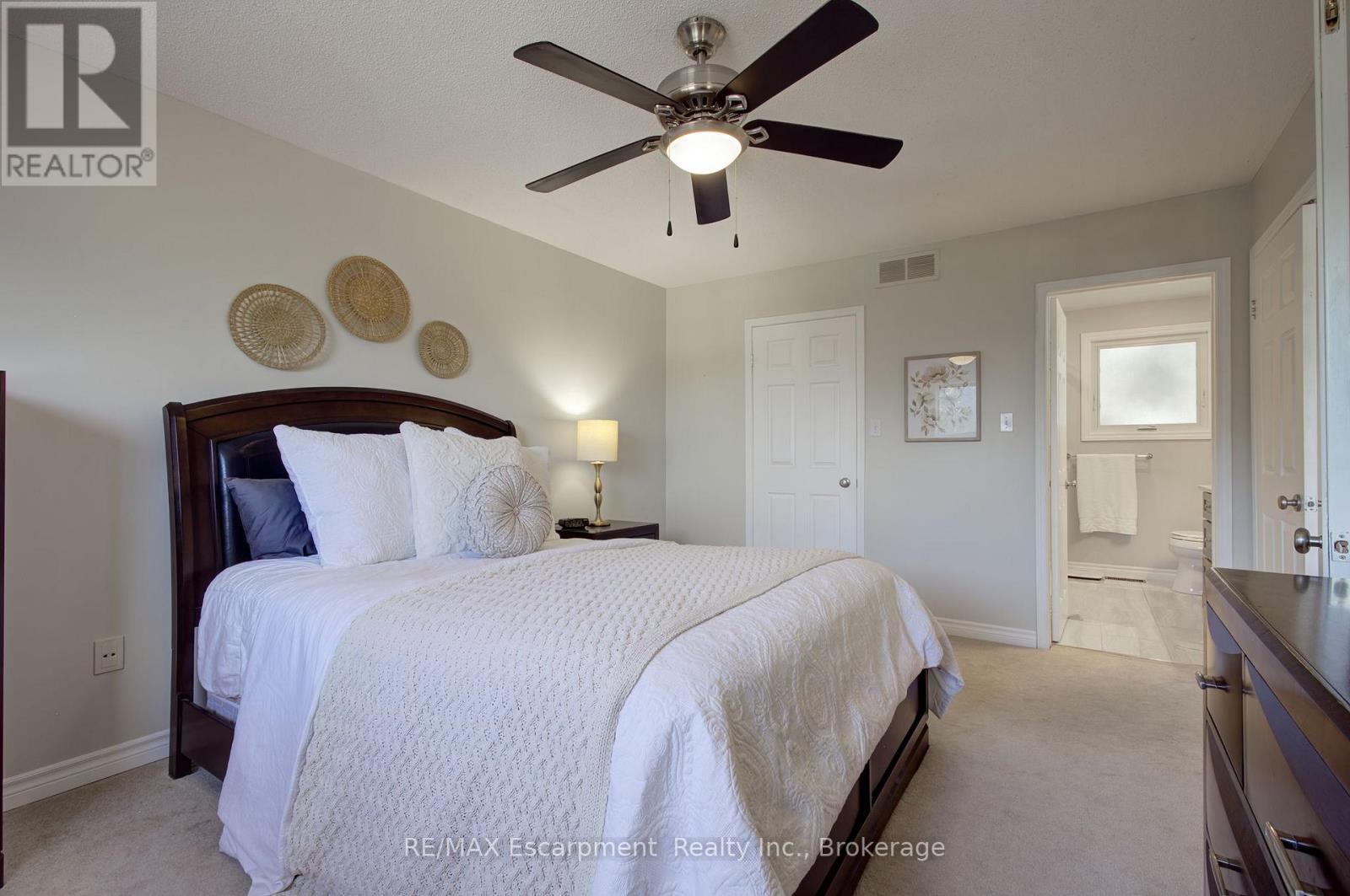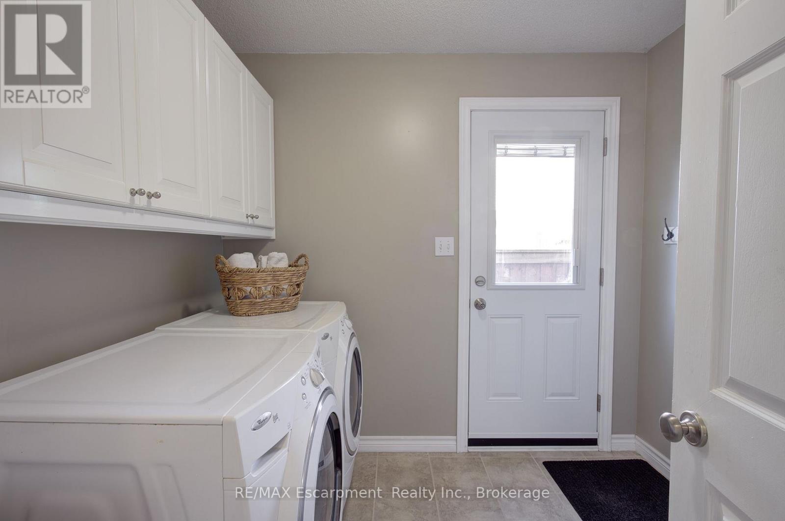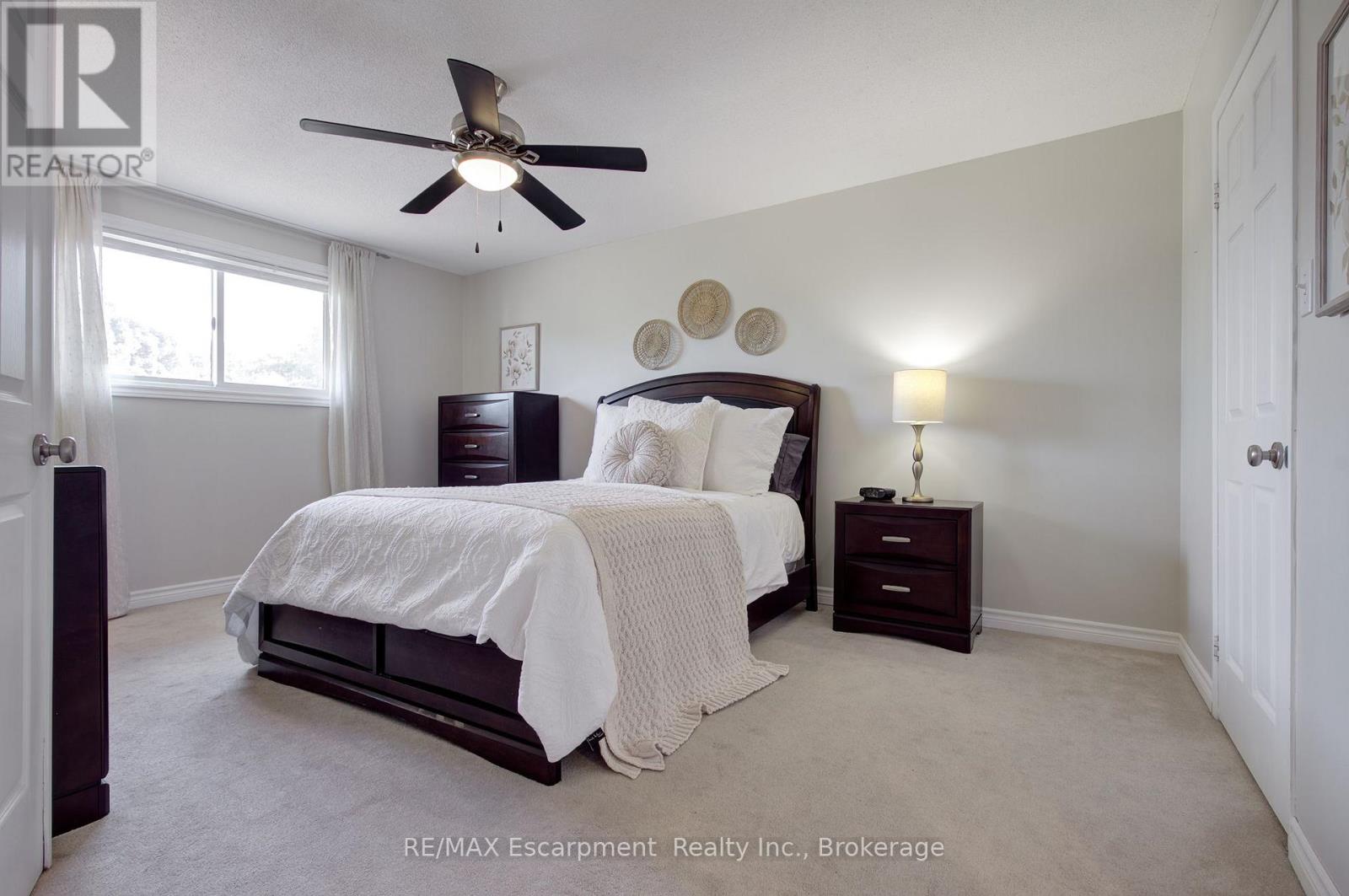 Beautifully updated and meticulously cared for 2-storey home in a highly sought-after, family-friendly central Burlington neighbourhood. Situated on a quiet street and premium mature lot, this home offers a double garage, over 2000 sqft of living space, high-end finishes, and modern conveniences throughout. Step into a spacious foyer with a grand curved staircase and soaring vaulted ceiling. Large windows and hardwood floors accent the separate living and dining rooms, ideal for formal gatherings or quiet moments. The renovated eat-in kitchen boasts granite counters, stainless steel appliances, abundant cabinetry (extra deep double-wide pantry) and a walkout to an expansive deck and private backyard oasis. The family room, features a cozy gas fireplace and flows seamlessly from the kitchen, providing an open layout perfect for entertaining and family living. The main floor also includes a powder room, laundry/mudroom, and inside access to the garage. Upstairs, you'll find three spacious bedrooms. The primary suite includes a walk-in closet with custom organizers and a beautifully updated ensuite with a glass shower. The other two bedrooms share a stylish 5-piece bathroom with double sinks and quartz counters. Meanwhile, the basement offers a versatile rec room, ideal for a home office, gym, or playroom, plus generous storage and future development potential. Enjoy a mature backyard with a heated above-ground saltwater pool, plenty of grassy play space, and patio area for relaxing. Updates include: windows (2022), roof (2023), doors, (over last 12 years), furnace & AC (2011), bathrooms (2017/2019), gutter guards and more. With top-rated schools, parks, shopping, rec centres, and transit nearby, this is the perfect home for any growing family! (id:24334)