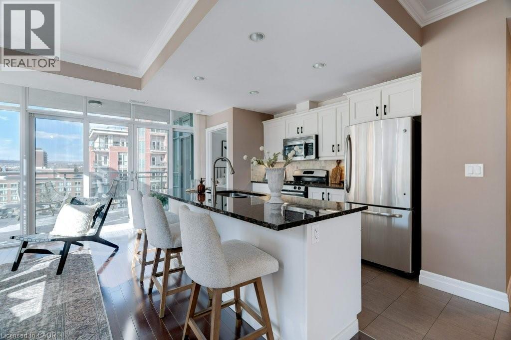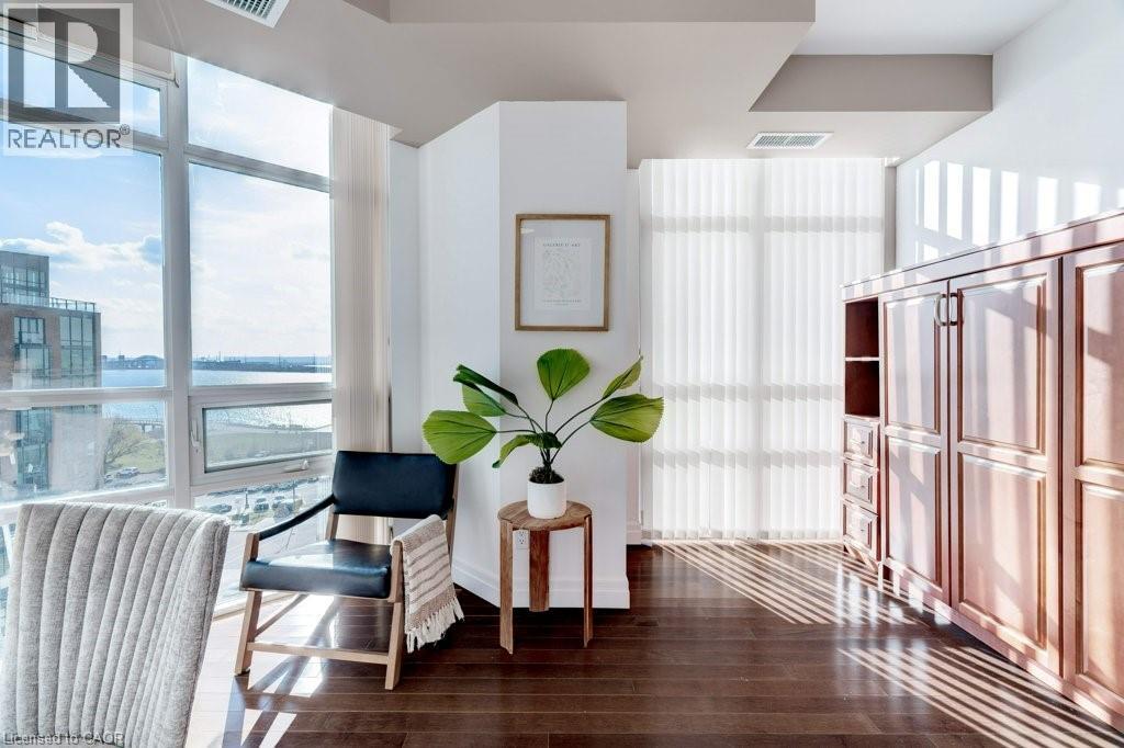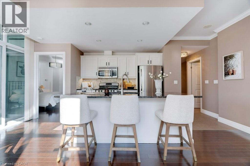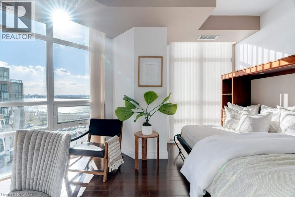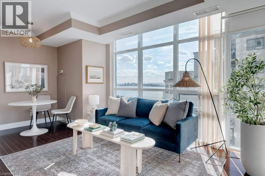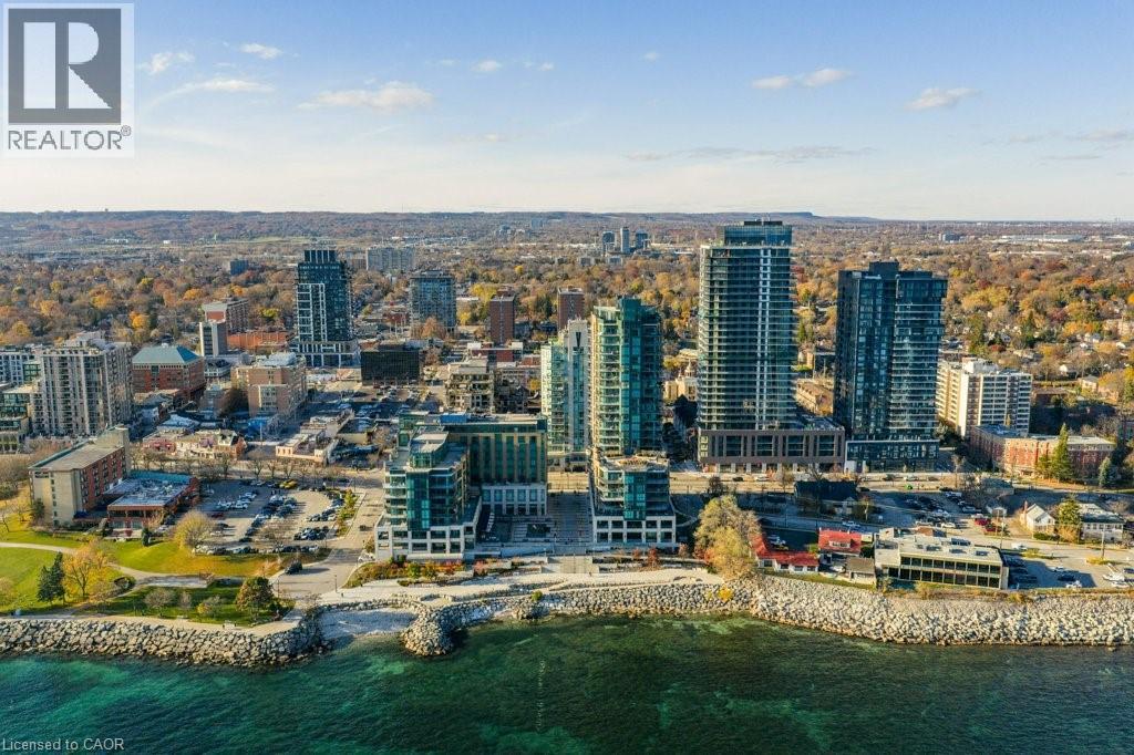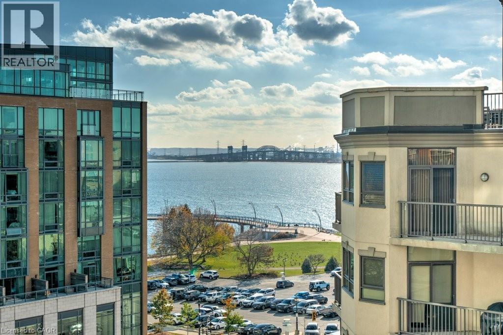 $1,041.84 MonthlyWelcome to the highly sought-after 360 Pearl—a premier building in the heart of downtown Burlington with gorgeous lake and escarpment views in every direction. This beautifully updated 2-bed, 2-bath suite offers an open-concept layout, floor-to-ceiling windows, and 9 ft ceilings, creating a bright and sophisticated living space. The kitchen impresses with custom cabinetry, pot drawers and slide-out shelving, stainless steel appliances which include a gas stove, a generous island for entertaining, and granite countertops. The Great Room is wrapped in windows, showcasing lake views and providing a seamless walkout to your expansive wrap-around balcony. The primary suite offers its own balcony access, a spacious walk-in closet with built-in organizers, and a spa-inspired ensuite with a large glass shower and extended vanity. The second bedroom features stunning lake views and a custom Murphy bed—perfect for easily transitioning between a home office and guest space. A stylish 4-piece bathroom with granite finishes and convenient in-suite laundry complete the interior. This unit truly shines for those who love to entertain. The building offers exceptional amenities including a rooftop terrace with BBQs, state-of-the-art gym with a steam room, party room, games room, movie theatre, and 24-hour concierge/security. Walk to Burlington’s best restaurants, boutique shops, Spencer Smith Park, and waterfront events. Includes 1 parking space (Level B #4) and 1 locker (Level B #57). (id:24334)