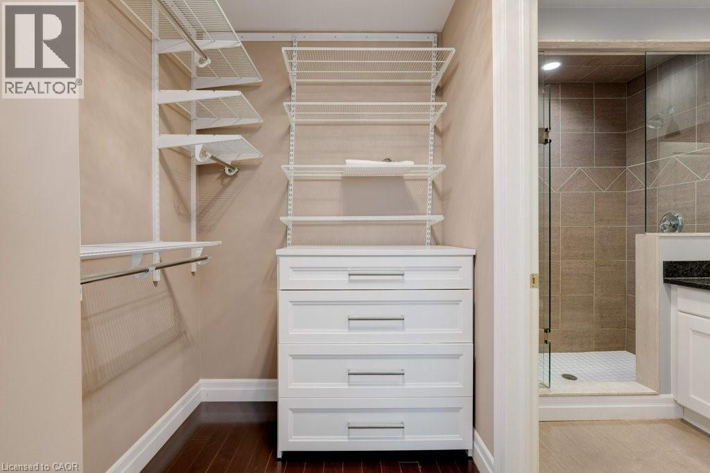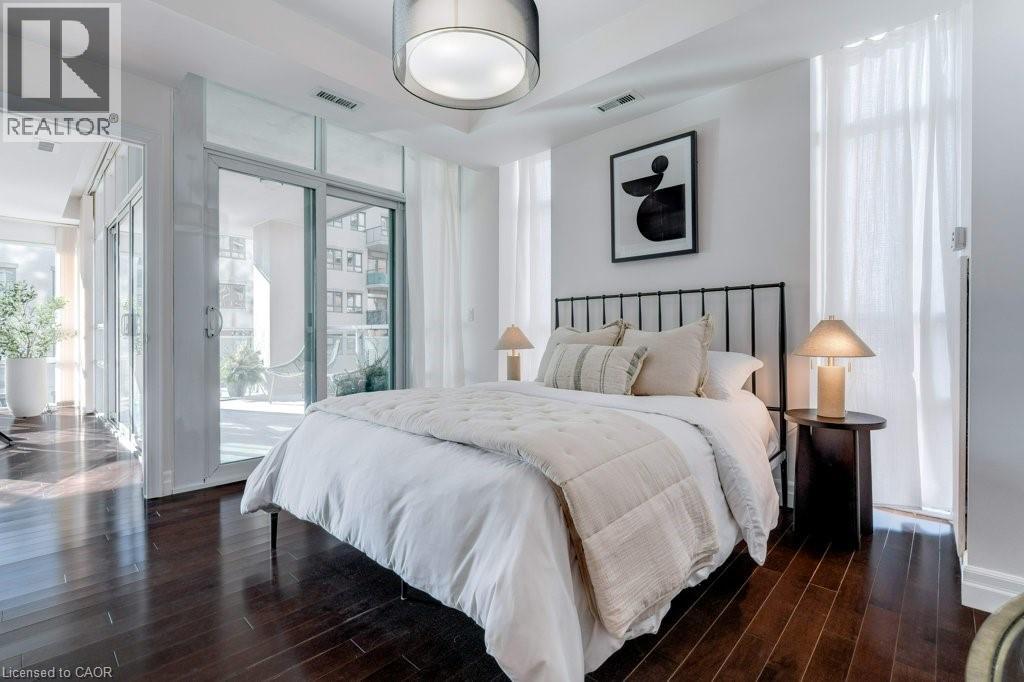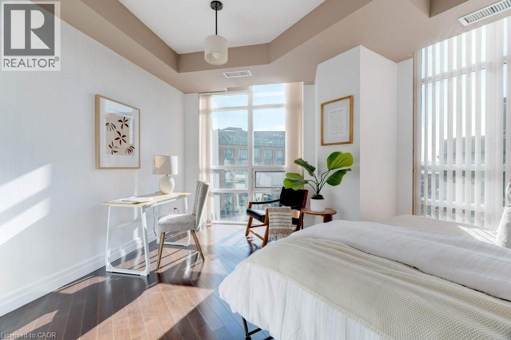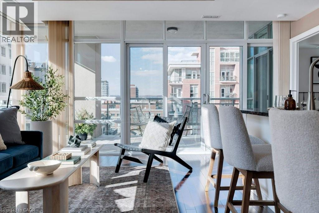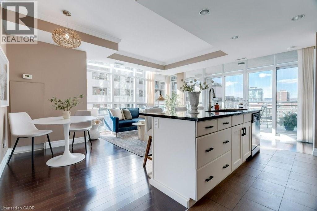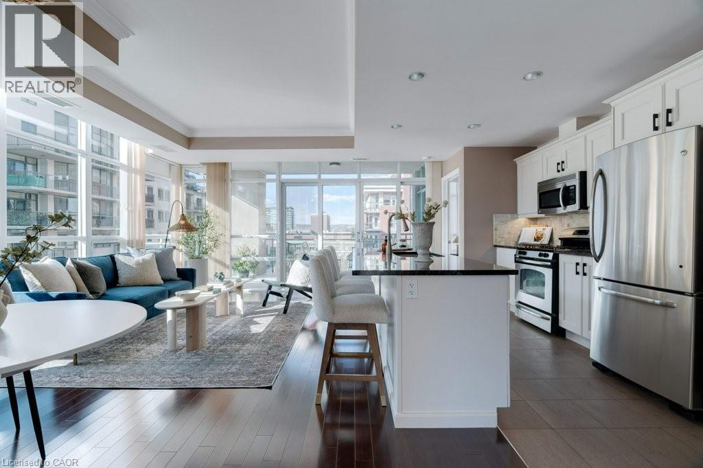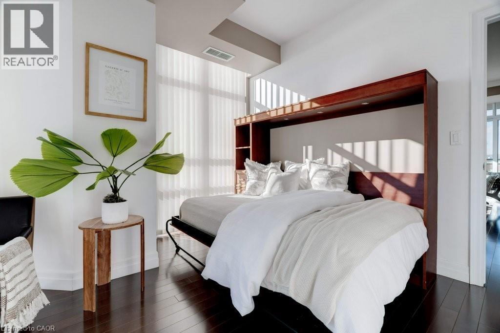 $1,041.84 MonthlyWelcome to the highly sought-after 360 Pearl—a premier building in the heart of downtown Burlington with gorgeous lake and escarpment views in every direction. This beautifully updated 2-bed, 2-bath suite offers an open-concept layout, floor-to-ceiling windows, and 9 ft ceilings, creating a bright and sophisticated living space. The kitchen impresses with custom cabinetry, pot drawers and slide-out shelving, stainless steel appliances which include a gas stove, a generous island for entertaining, and granite countertops. The Great Room is wrapped in windows, showcasing lake views and providing a seamless walkout to your expansive wrap-around balcony. The primary suite offers its own balcony access, a spacious walk-in closet with built-in organizers, and a spa-inspired ensuite with a large glass shower and extended vanity. The second bedroom features stunning lake views and a custom Murphy bed—perfect for easily transitioning between a home office and guest space. A stylish 4-piece bathroom with granite finishes and convenient in-suite laundry complete the interior. This unit truly shines for those who love to entertain. The building offers exceptional amenities including a rooftop terrace with BBQs, state-of-the-art gym with a steam room, party room, games room, movie theatre, and 24-hour concierge/security. Walk to Burlington’s best restaurants, boutique shops, Spencer Smith Park, and waterfront events. Includes 1 parking space (Level B #4) and 1 locker (Level B #57). (id:24334)