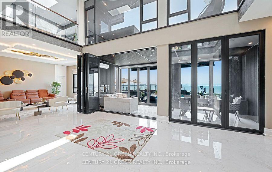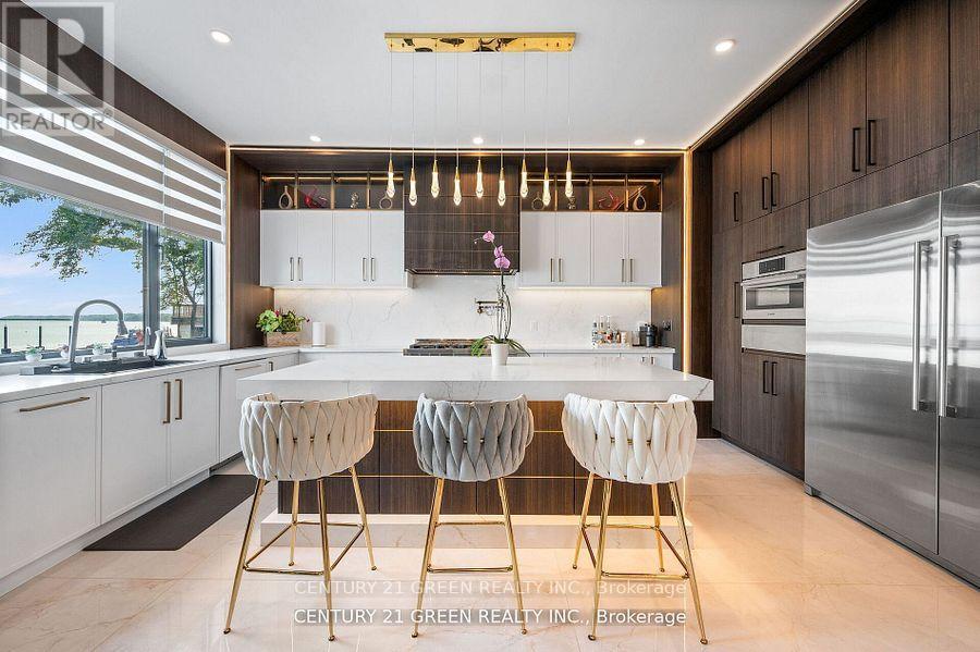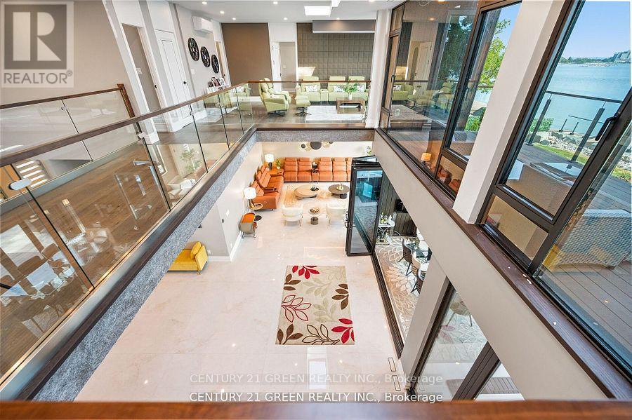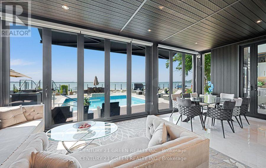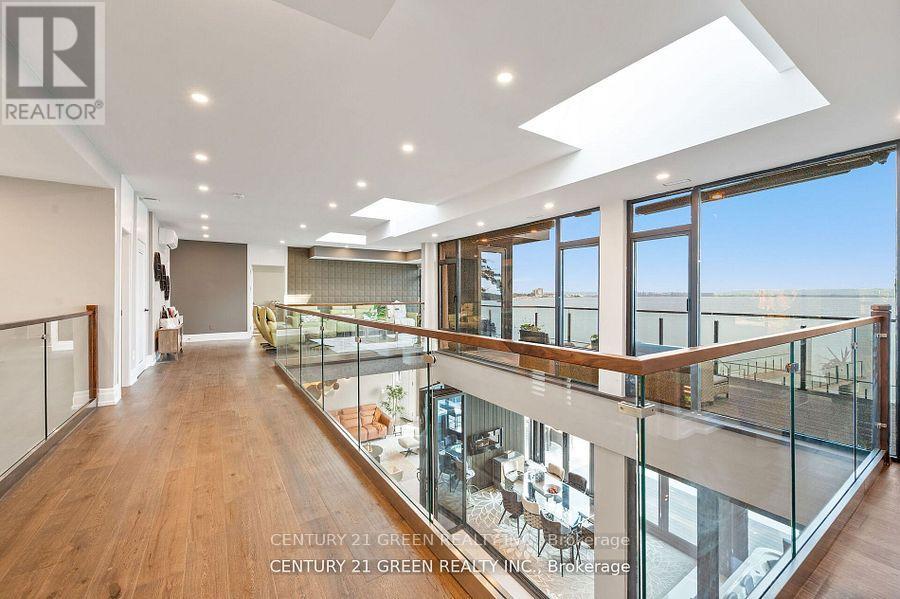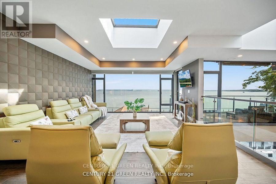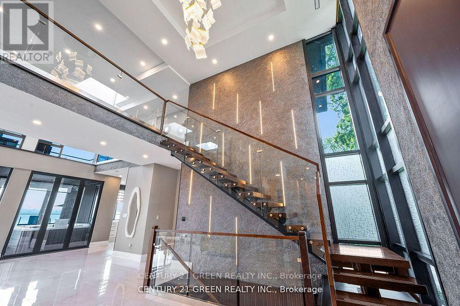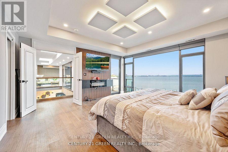 Lakefront newly custom-built home feels like a retreat, completed in November 2024, offering over 6,350 sq ft of total living space across three levels with gorgeous panoramic water view of Lake Ontario. This house features 120 feet of private shoreline and a private dock to Lake Ontario with PRIVATE BOAT ACCESS. With an 83' frontage that widens to 120' along the lakeside. This home features 5+3 bedrooms and 7.5 bathrooms with a Main floor 10ft and cathedral ceilings. The home is a masterclass in design and craftsmanship, with 10' ceilings (main), and cathedral ceilings & 9-foot ceilings (2nd flr). The main floor has a bedroom with an ensuite as guest room. The upper level features four bedrooms, each with its own ensuite. Large enclosed patio with complete opening BI folding door (10ft) and enclosed hot tub. 3 large skylights. Finished basement with separate entrance featuring a wet bar & kitchen, two sump pumps. This home features a heated swimming pool facing Lake Ontario. Situated just a short walk from vibrant downtown Burlington, parks, the waterfront trail, and with easy access to major highways, this location balances tranquility and convenience. Smart toilets in every washroom. With a Jacuzzi hot tub, double garage with 3 parking spaces (tandem) & outdoor parking for 5,this is a one-of-a-kind beachside sanctuary designed for elevated everyday living. 2 electric car chargers. (id:24334)