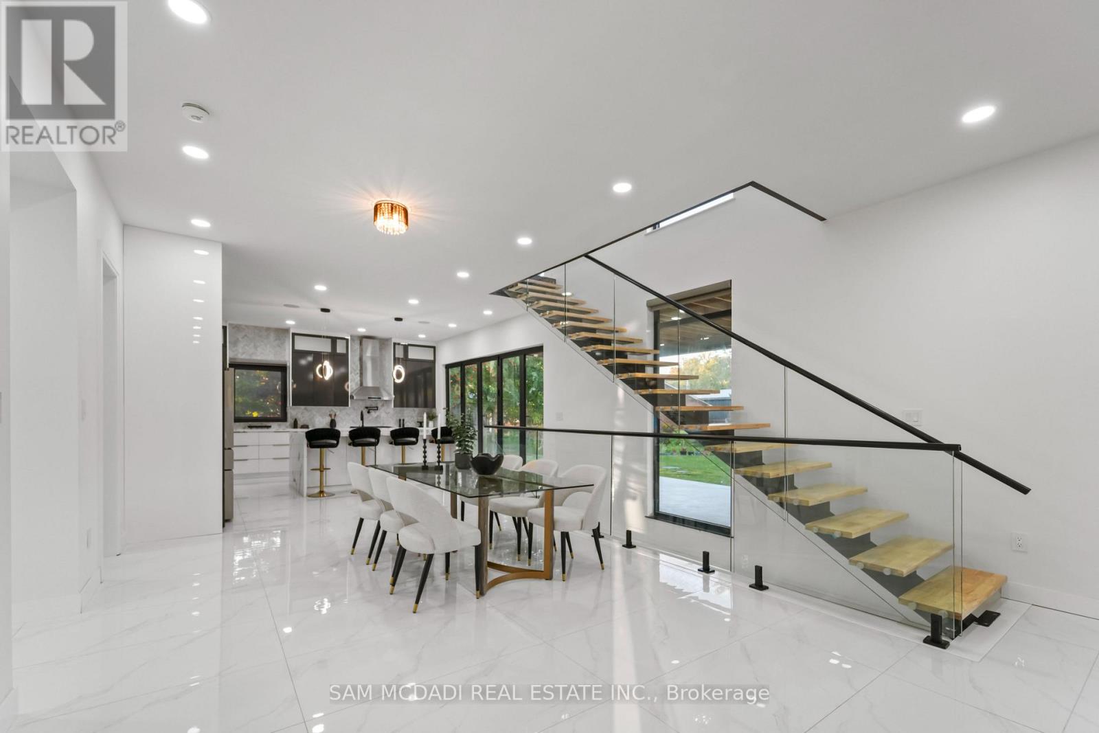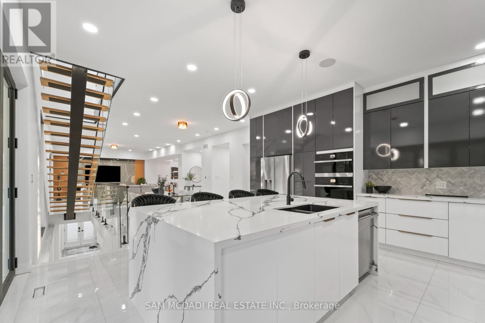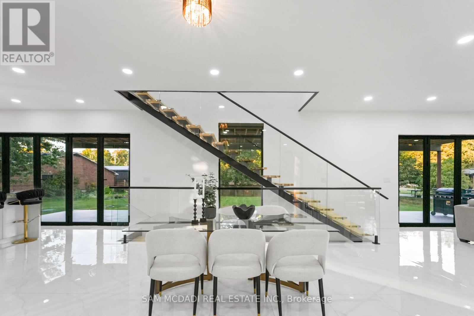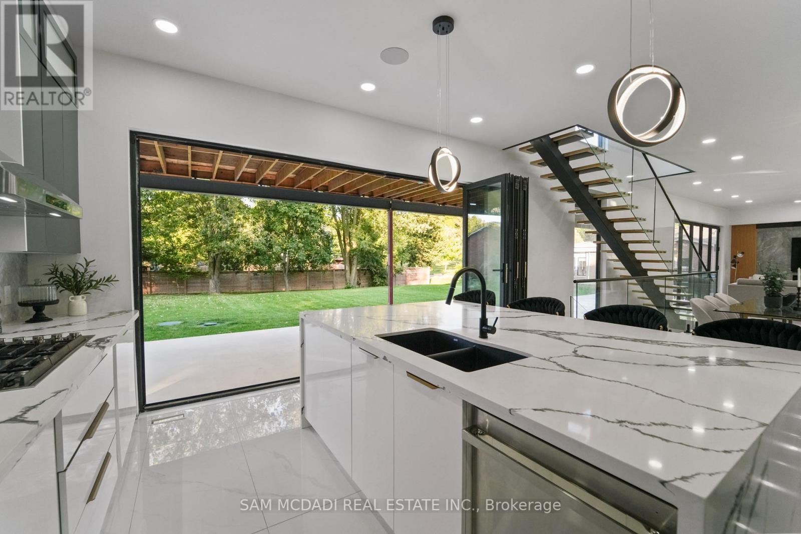 Located on a private half acre lot in one of Burlington's most desirable settings, this new custom modern estate offers nearly 6,000 SF of refined living space. Designed with bold architecture and contemporary finishes, the home reflects state-of-the-art features for todays discerning buyer. Inside, porcelain tile flooring flows across the main and lower levels, while glass-railed white oak staircases and engineered hardwood enrich the upper quarters. A gourmet kitchen with quartz countertops, premium appliances, a walk-in pantry, and an oversized centre island anchors the open-concept main floor, seamlessly connecting the dining, living, and family rooms. Oversized walk-outs extend to a private terrace and backyard oasis, perfect for summer entertaining or morning coffee. The upper level boasts a primary retreat with a spa-inspired 5-pc ensuite, walk-in closet, and balcony views. Each additional bedroom enjoys its own ensuite, creating private sanctuaries for family and guests. Bathrooms throughout are appointed with designer porcelain tile, custom vanities, and luxury fixtures. The fully finished lower level expands the lifestyle, offering a sprawling recreation room, additional bedroom, full bath, and cold storage, ideal for a home gym, theatre, or lounge. Built-in ceiling speakers, central vacuum, and oversized windows further enhance everyday living. Beyond the home itself, families will appreciate the lifestyle that comes with this location: weekend hikes at Mount Nemo Conservation Area just minutes away, golf outings at Burlington Springs, quick access to shops and dining along Guelph Line, and waterfront strolls or festivals at Spencer Smith Park. With top schools, medical services, and the Royal Botanical Gardens all nearby, convenience pairs effortlessly with serenity. (id:24334)