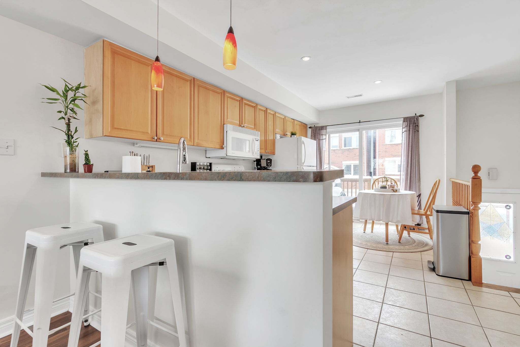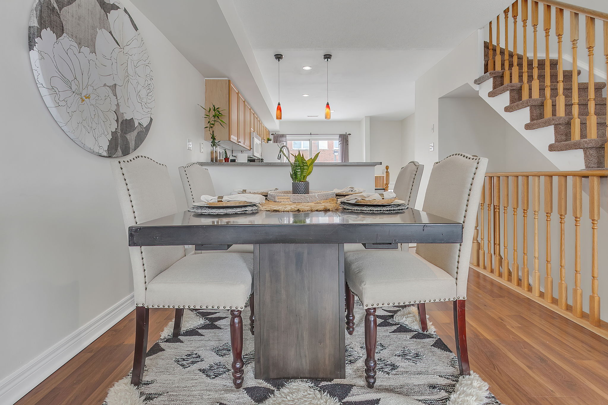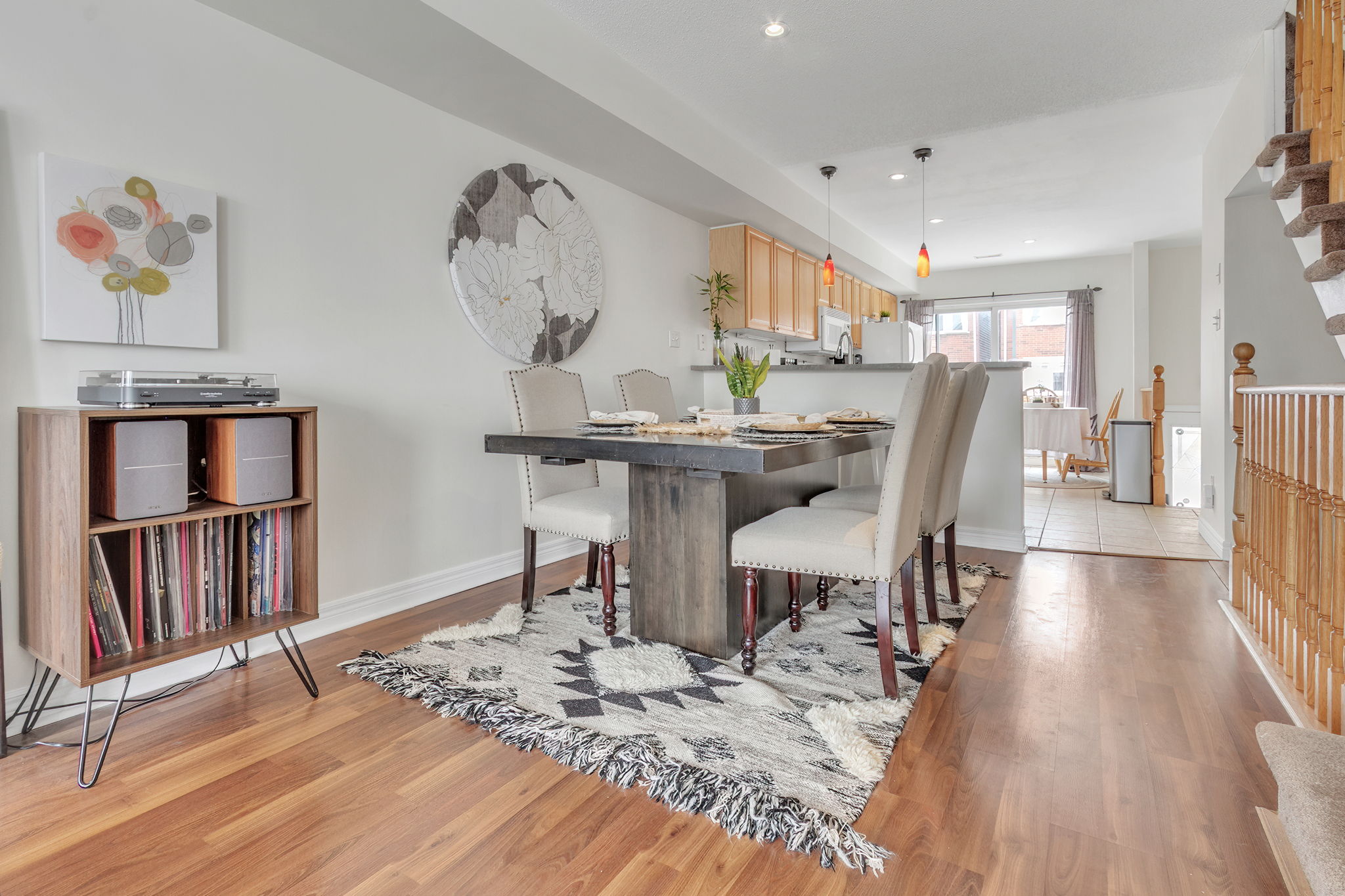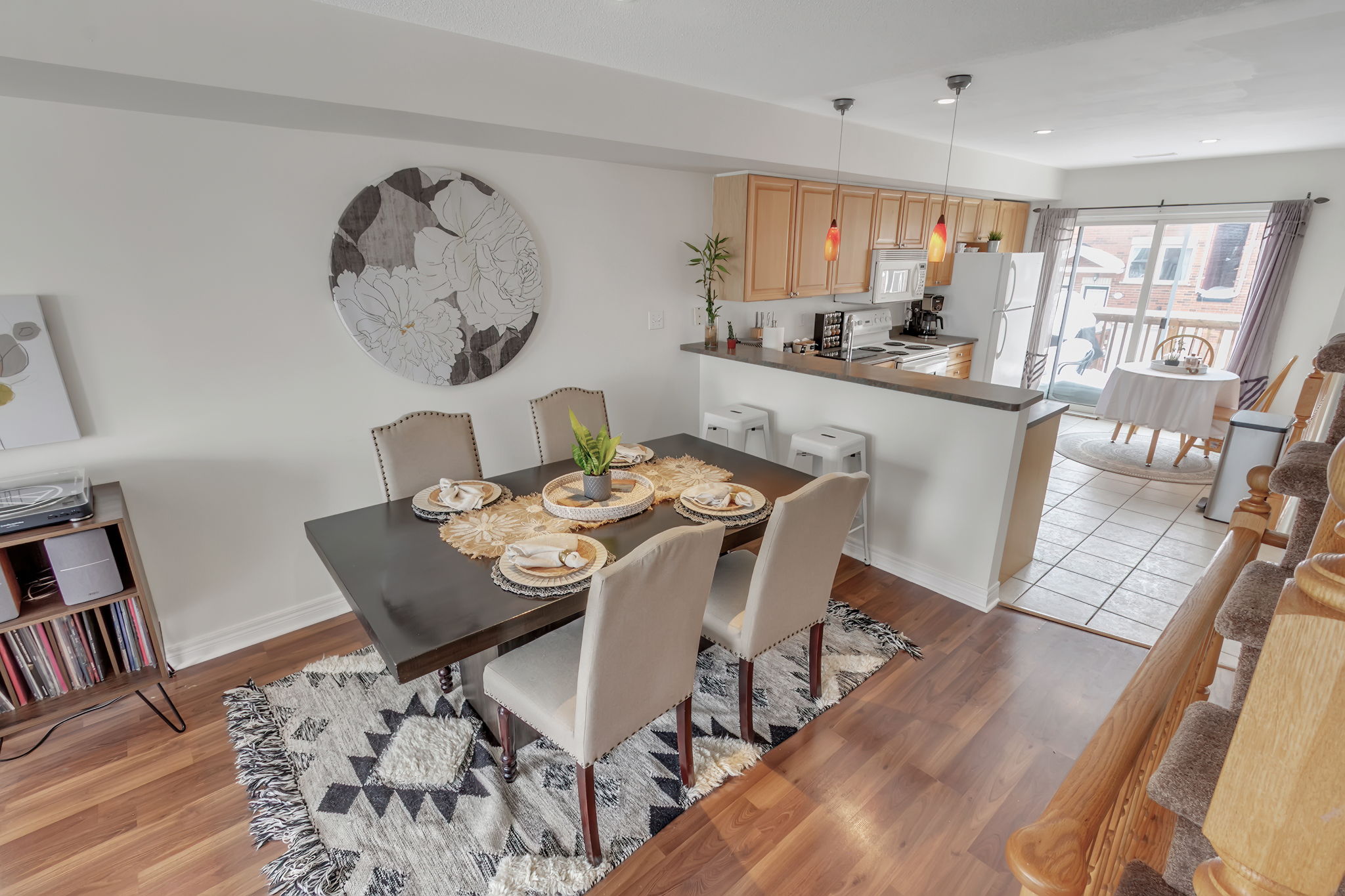 Lovely 2 bedroom townhome with above grade walk-out basement, and low condo fees in the heart of Uptown Burlington. Enjoy everything this thriving part of town has to offer: Walk to restaurants, shopping, medical clinics, and more! One of the largest units in the complex, and freshly painted. You will find the property feels bright, clean, modern & spacious. The kitchen offers plenty of cupboard, counter & floorspace, along with a breakfast bar and walk out to a charming deck. The deck has been nicely maintained & allows for evening bbqs or a place to have a morning coffee. The open concept main level is truly conducive to entertaining. Prep some appetizers and chat with your guests while they lounge and listen to music in your living room, then join for a feast in the dining area which easily accommodates a lengthy table. Upstairs you will be delighted by the "king sized" primary (meaning it fits a king sized bed). You will also appreciate the walk-in closet and bedroom level laundry! These modern features have become must haves for so many buyers. The upper level is complete with a 2nd generous sized bedroom and full, 4 pc bathroom. The basement level of the home is fully above grade with a door to the "front yard" and a door directly into the garage. You could use this space as an additional living area, gym, office, or bedroom with its own 2 pc bath. With quick access to the 403, 407 and Go Train, if you need to commute, this is one of the best areas in Burlington to live. Don't miss your opportunity to own this great property!