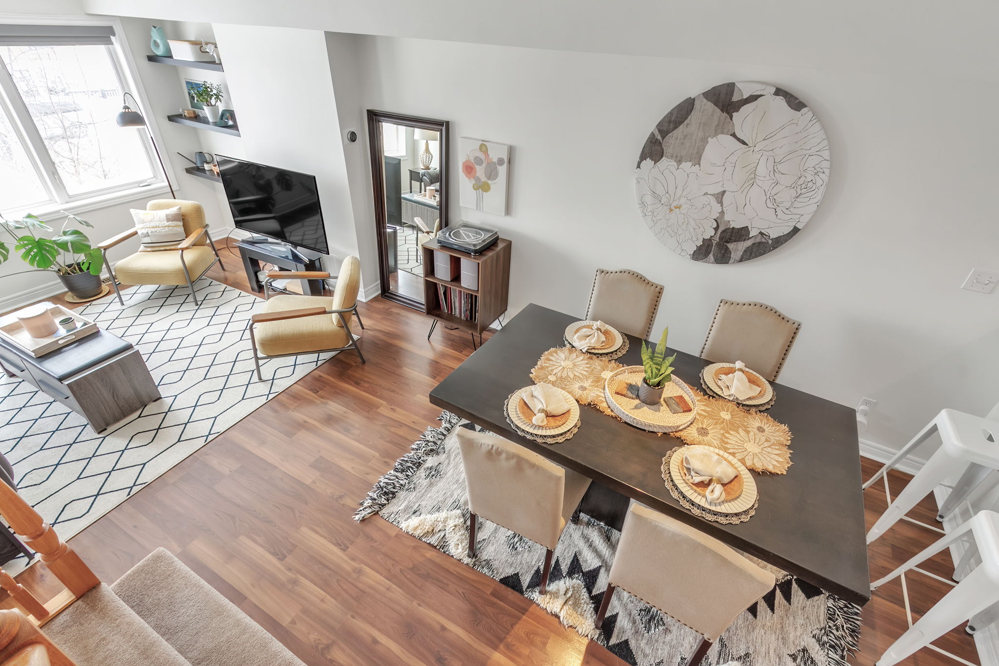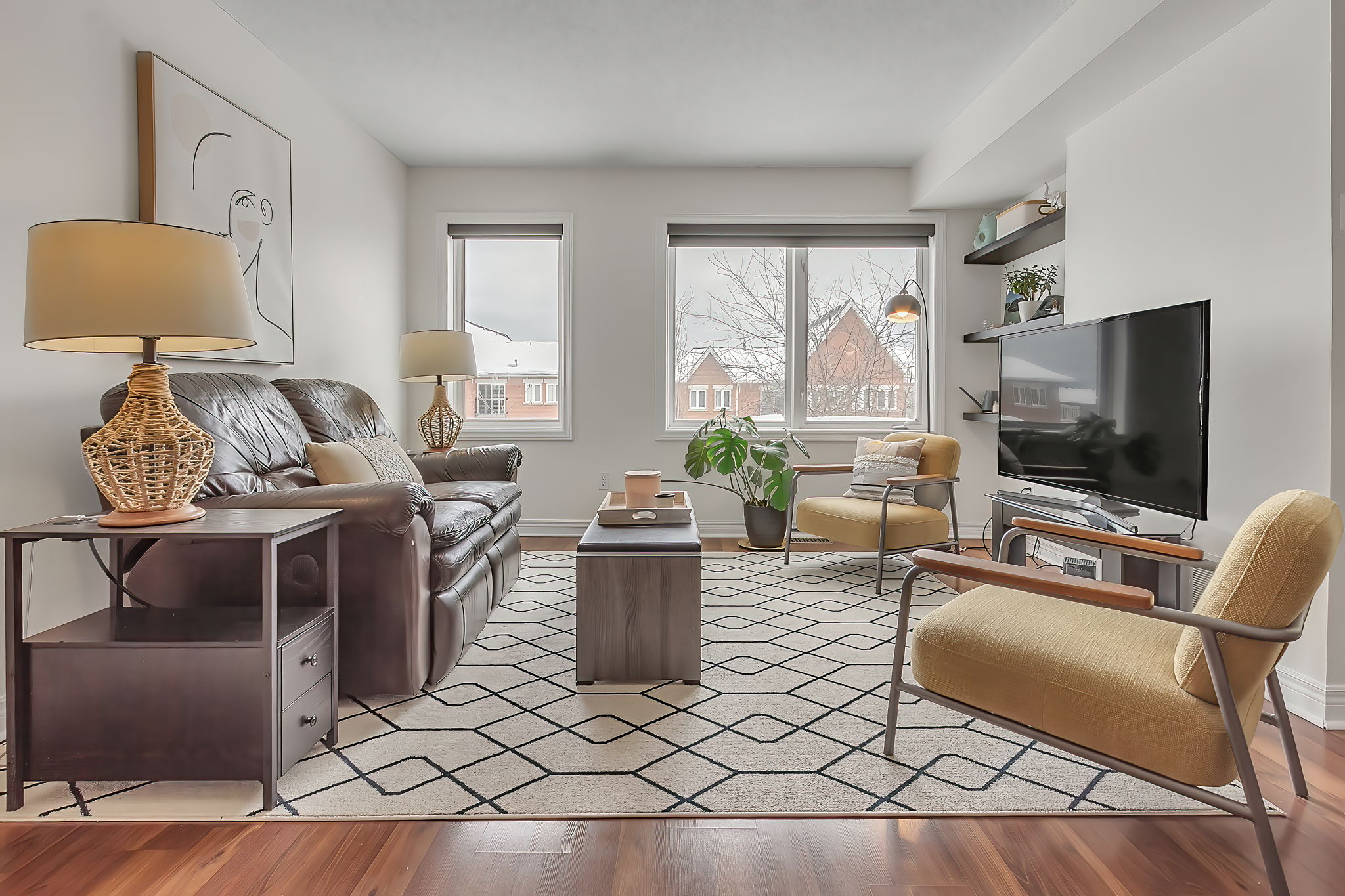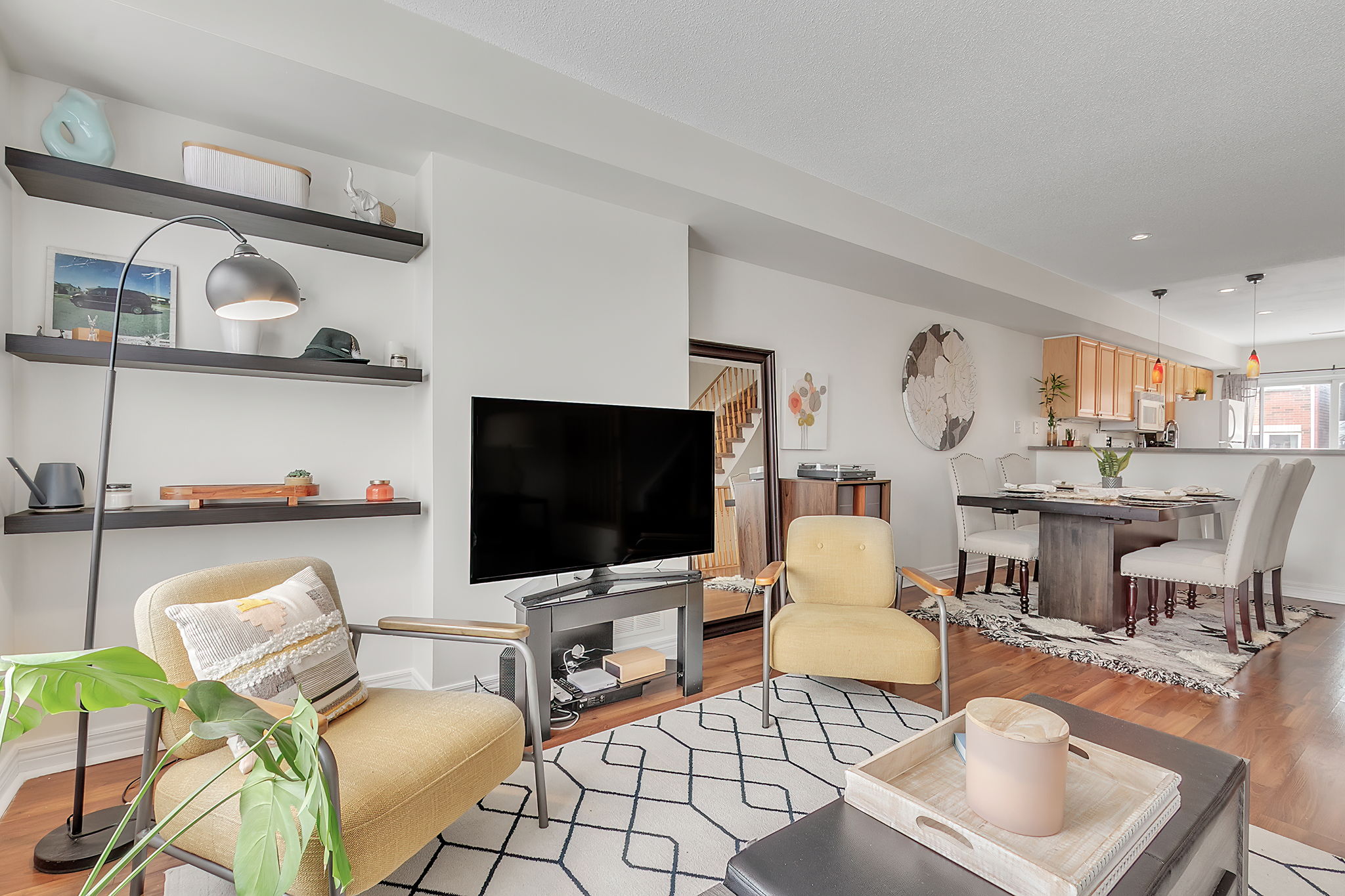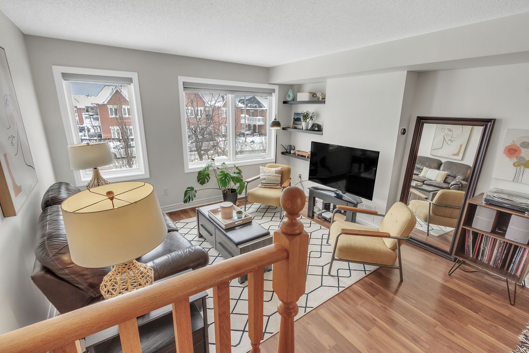 Lovely 2 bedroom townhome with above grade walk-out basement, and low condo fees in the heart of Uptown Burlington. Enjoy everything this thriving part of town has to offer: Walk to restaurants, shopping, medical clinics, and more! One of the largest units in the complex, and freshly painted. You will find the property feels bright, clean, modern & spacious. The kitchen offers plenty of cupboard, counter & floorspace, along with a breakfast bar and walk out to a charming deck. The deck has been nicely maintained & allows for evening bbqs or a place to have a morning coffee. The open concept main level is truly conducive to entertaining. Prep some appetizers and chat with your guests while they lounge and listen to music in your living room, then join for a feast in the dining area which easily accommodates a lengthy table. Upstairs you will be delighted by the "king sized" primary (meaning it fits a king sized bed). You will also appreciate the walk-in closet and bedroom level laundry! These modern features have become must haves for so many buyers. The upper level is complete with a 2nd generous sized bedroom and full, 4 pc bathroom. The basement level of the home is fully above grade with a door to the "front yard" and a door directly into the garage. You could use this space as an additional living area, gym, office, or bedroom with its own 2 pc bath. With quick access to the 403, 407 and Go Train, if you need to commute, this is one of the best areas in Burlington to live. Don't miss your opportunity to own this great property!