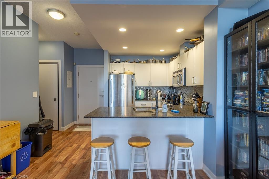 Bright and spacious 1 bedroom, 1 bath condo featuring open concept layout, kitchen with granite countertop and stainless steel appliances, walk in closet in primary bedroom and insuite laundry. Enjoy all the amenities the Strata has to offer: Rooftop pool and hot tub, gym and yoga studio, bbq lounge, party room, games room, billiards and 24 hr security. Walking distance to the downtown, Spencer Smith Park, Mapleview Mall. Minutes to 403/QEW/407. (id:24334)