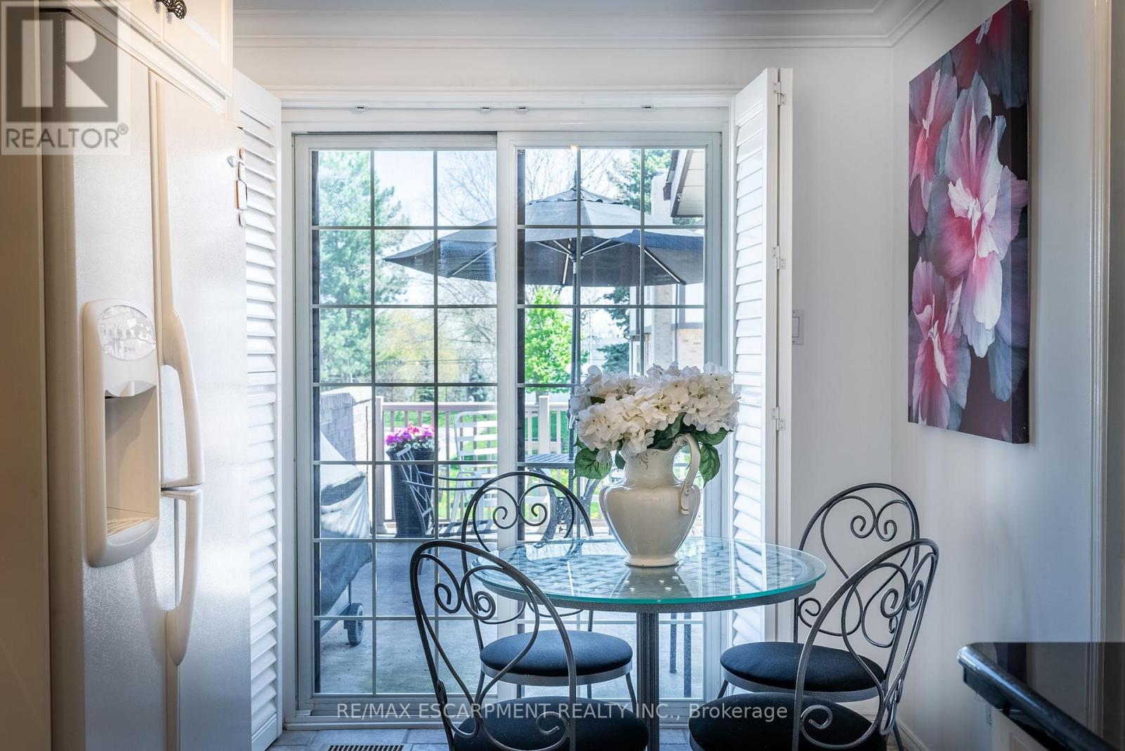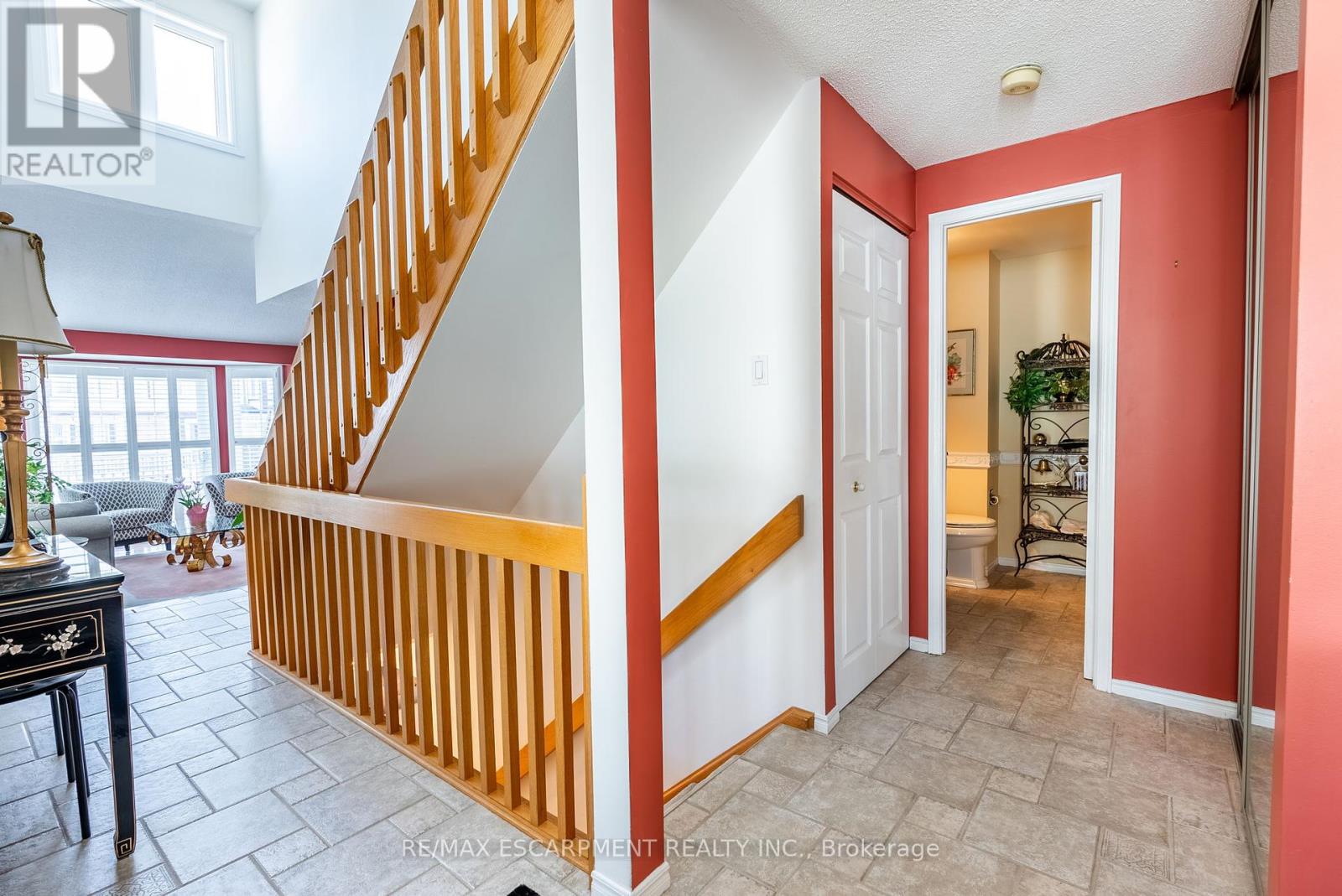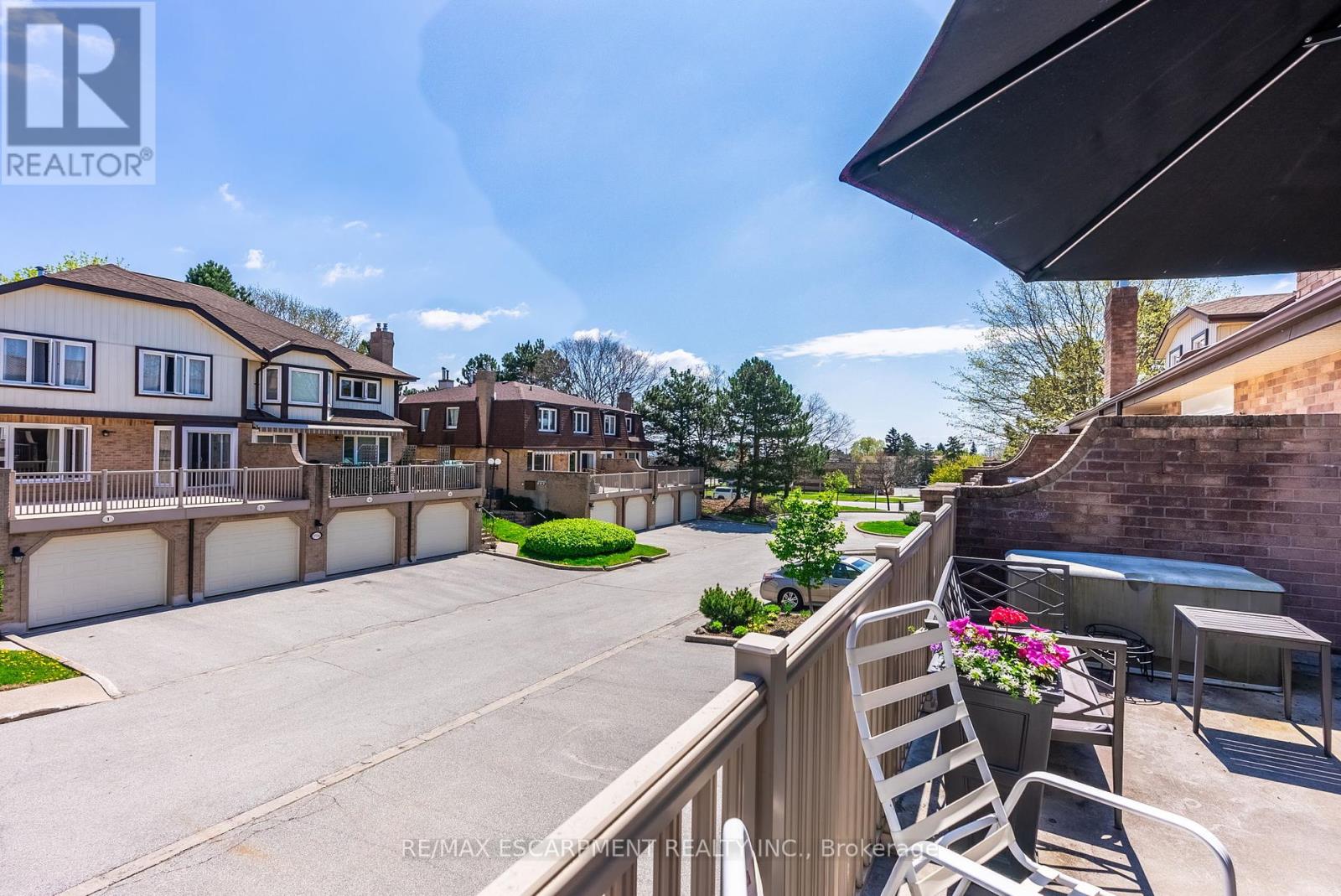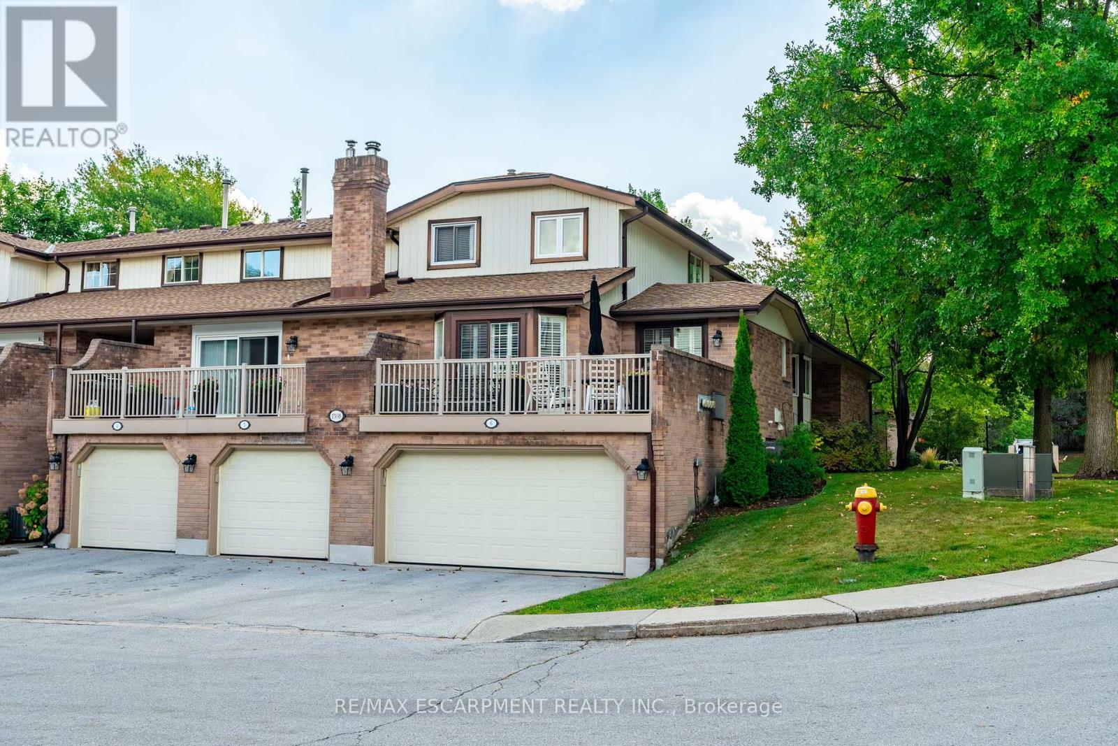 $630 MonthlyNestled in the sought-after Tyandaga neighbourhood, this beautifully maintained 3-bedroom, 4-bathroom townhome offers almost 2200 square feet of living space with a rare double car garage with inside entry. The main floor features a bright living room with hardwood floors and patio doors leading to a private terrace; perfect for morning coffee or evening relaxation. The formal dining room overlooks the living area, creating an open, elegant space for entertaining. The white kitchen is both stylish and functional complete with granite countertops and ample storage. The primary bedroom, located on the main level with a 3-piece ensuite, is currently used as a cozy family room offering flexible living options to suit your lifestyle. Upstairs, two generous bedrooms share a beautifully updated bathroom with a Calcutta marble vanity and a luxurious bubble tub surrounded by Carrera marble. The fully finished basement adds even more versatility with a large flex space currently set up as an office plus a rec room with a wood-burning fireplace, a wet bar and a 2-piece bathroom. This home combines classic charm with modern updates in a peaceful, well-established complex that also offers an inground heated swimming pool and tennis court, so perfect for families, professionals or downsizers alike! Great location where you can walk to shopping and minutes to the downtown area, Tyandaga Golf Course, parks, restaurants and major highways. RSA. (id:24334)