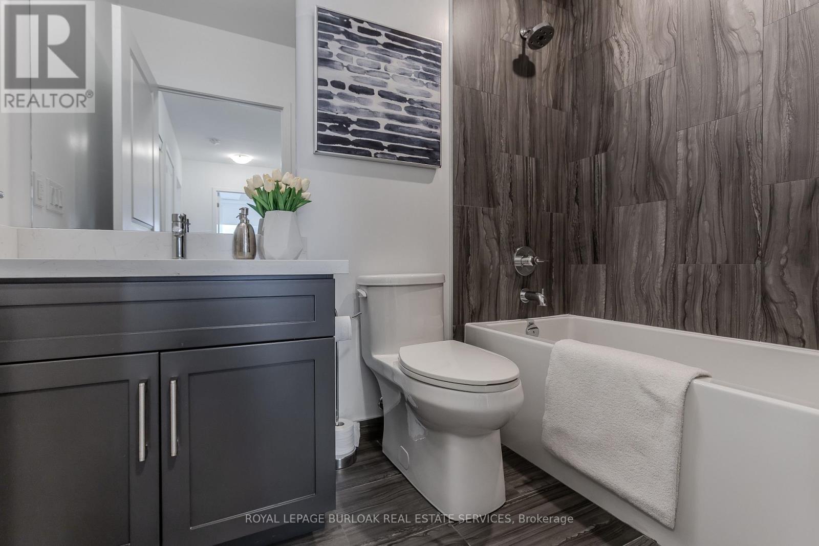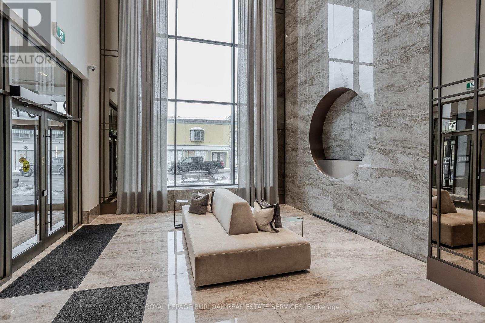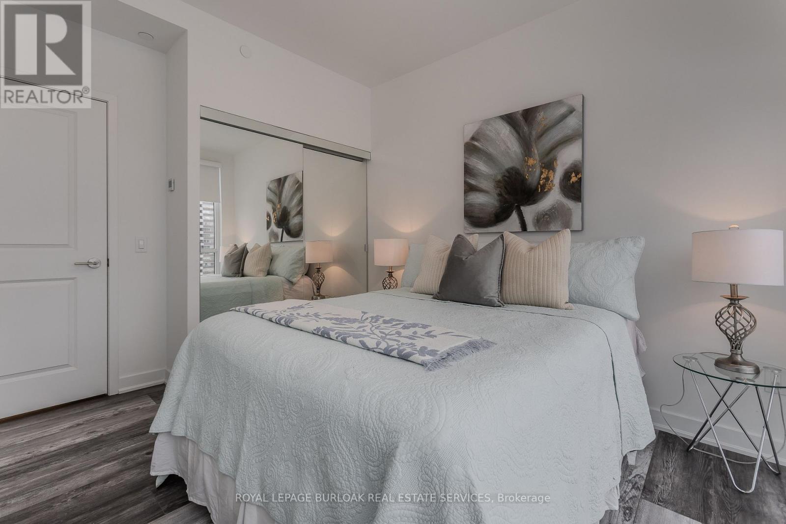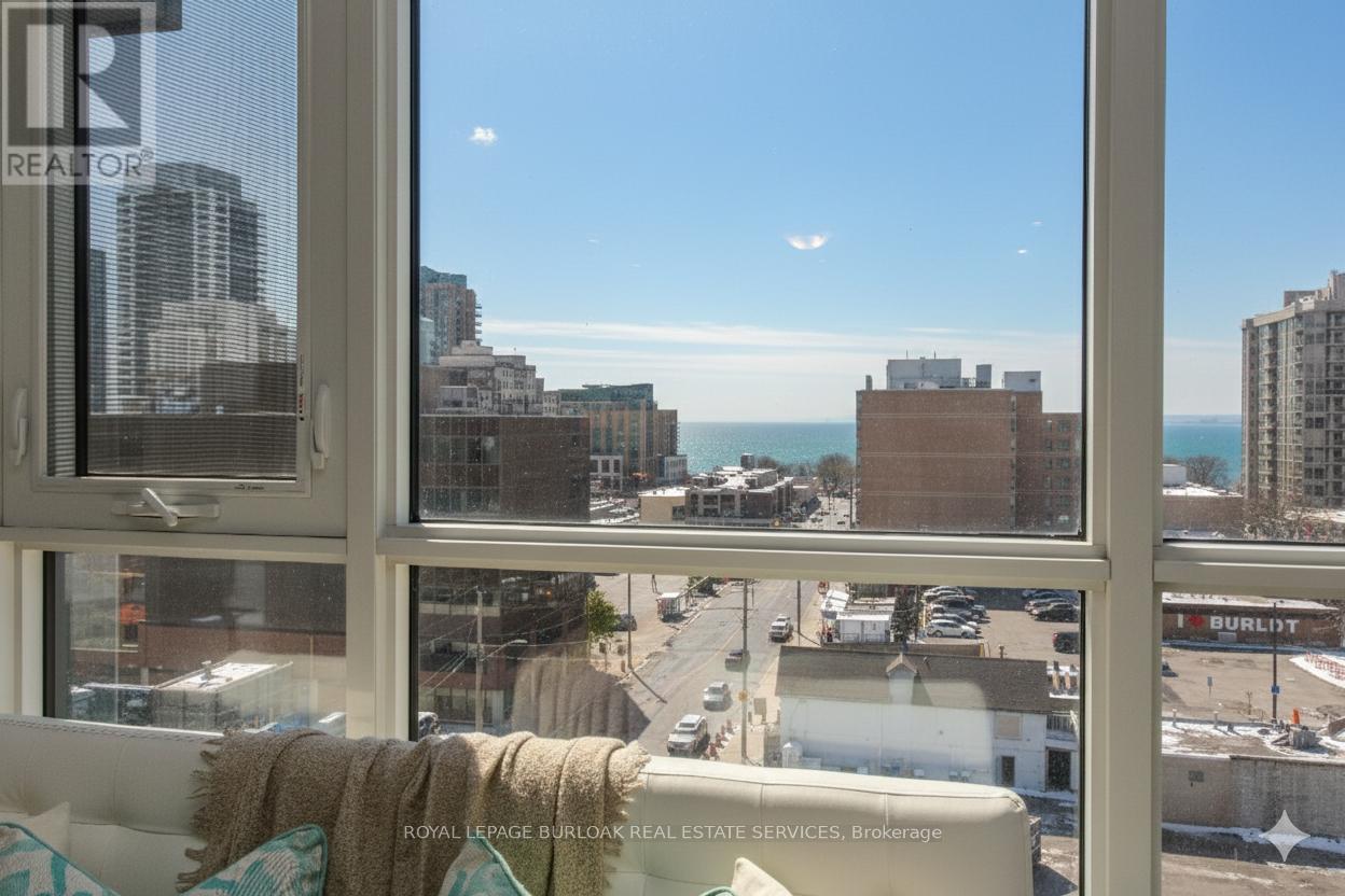 Experience elevated condo living at Gallery Condos, located in the heart of Burlington's vibrant downtown core, where luxury, lifestyle, and breathtaking lake views come together seamlessly. Spanning 1,064 sqft, this stunning residence offers panoramic waterfront vistas and a front-row seat to one of the city's most sought-after urban lifestyles-perfect for young professionals who want it all, just steps from their door. Inside, a modern and highly functional layout is flooded with natural light, complemented by upgraded wide-plank hardwood flooring throughout. The striking eat-in kitchen blends style and practicality with quartz countertops and backsplash, stainless steel appliances, deep pot-and-pan drawers, a pantry cabinet with efficient roll-out shelving, valance lighting, and a generous island with breakfast bar-ideal for hosting, working, or unwinding. Floor-to-ceiling windows in the spacious living area frame picturesque lake views and open to a private balcony with gas line for BBQ, creating an effortless indoor-outdoor connection. The primary suite is a true retreat, featuring floor-to-ceiling windows, a walk-in closet, and a spa-inspired ensuite with oversized vanity, deep soaker tub, and glass walk-in shower. A second bedroom with floor-to-ceiling windows offers flexibility for guests or a home office, complemented by a sleek four-piece main bath and convenient in-suite laundry. Parking and a storage locker are included. Residents enjoy an impressive collection of amenities including a contemporary lobby lounge, fully equipped fitness centre, co-working and meeting spaces, party and games rooms, media room, indoor lap pool, rooftop terrace with community BBQs, guest suites, concierge service, and a car wash. Set in an unbeatable lifestyle location, you're steps from exceptional dining, cafés, entertainment, waterfront parks and trails, daily essentials, transit, and quick highway access-urban living at its most refined. (id:24334)