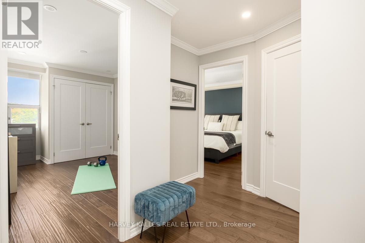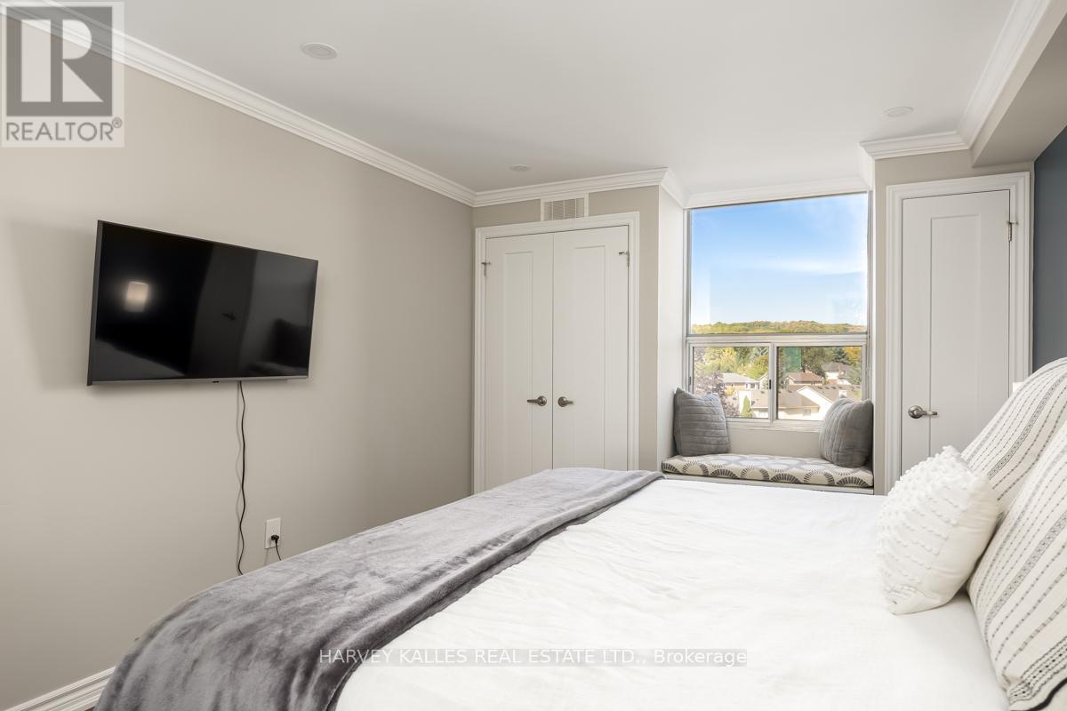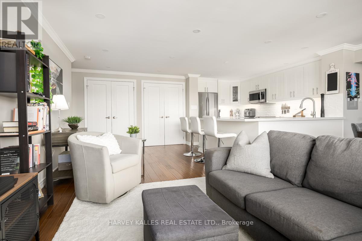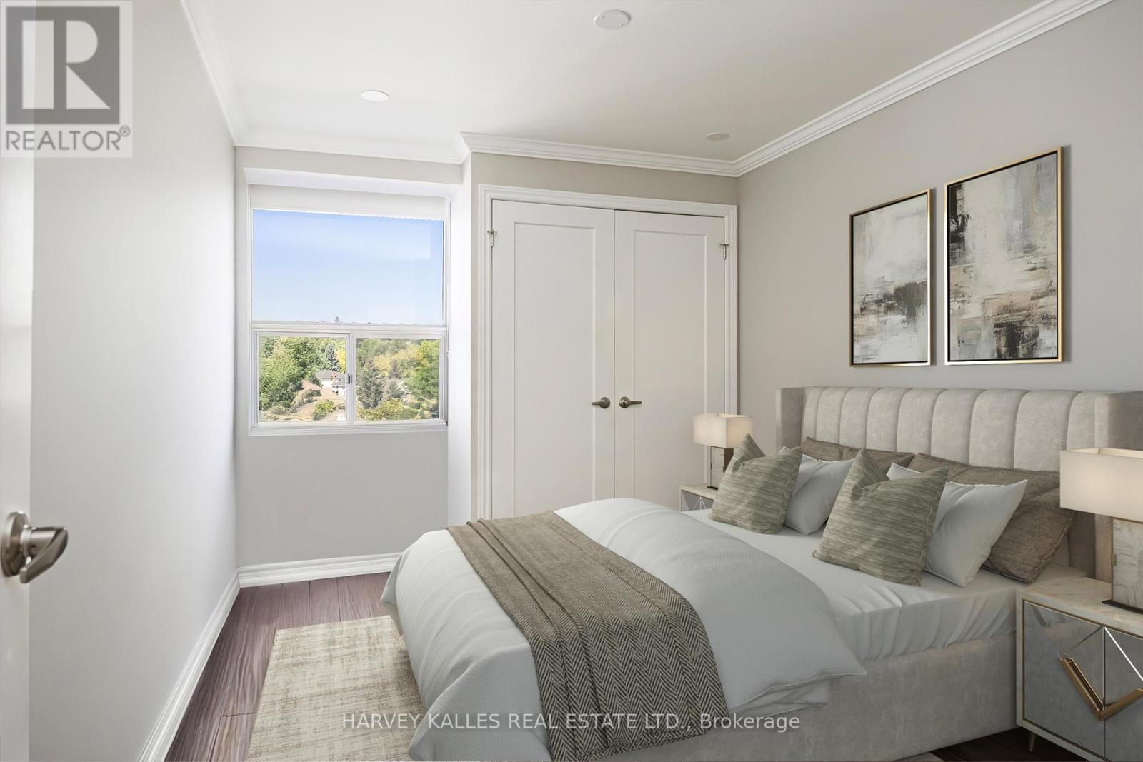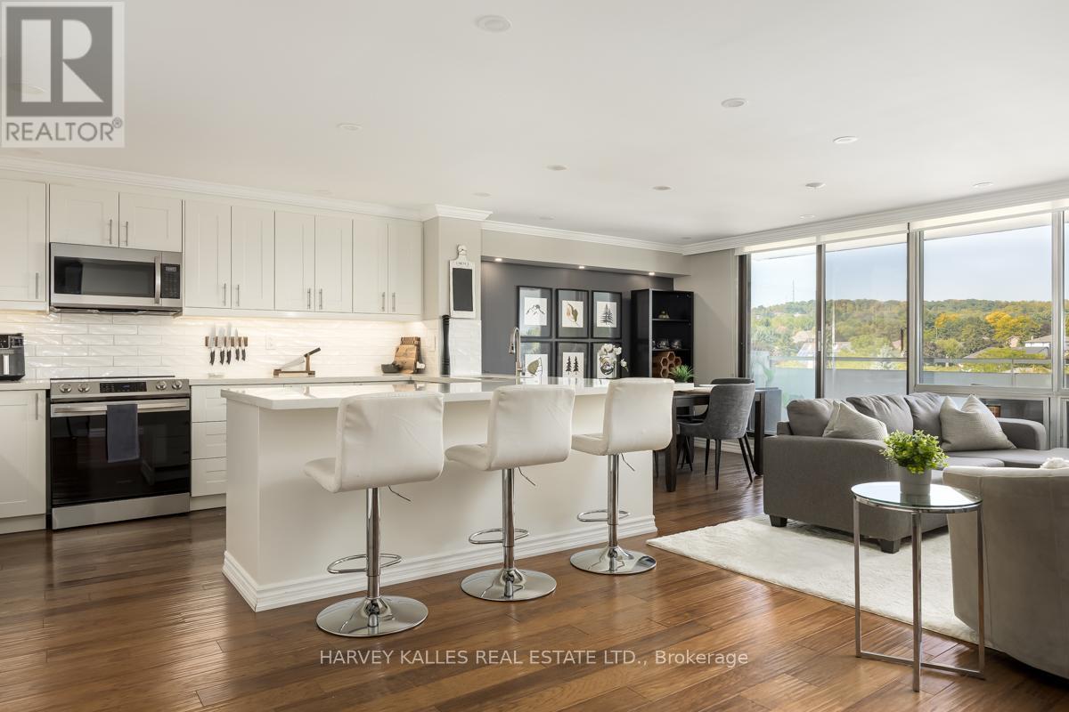 Welcome to this Stunning newly renovated bright and airy 2 Bedroom, 2 Bathroom home. One of the many special features this home offers is a chef inspired kitchen complete with a spacious breakfast bar, Quartz Countertop, Steel Appliances,2 Lazy Susan's, double undermount sink, recessed lighting and crown molding. This open concept living space is perfect to entertain both family and friends, walk out from your living area and enjoy the privacy and breathtaking view of the Niagara Escarpment from your spacious north facing balcony. Master bedroom oasis offers his and hers closets plus a bonus Storage Bench, 3 piece ensuite with vaulted Ceiling/Ambient lighting and walk in shower. Versatile 2nd bedroom with double closet, large window, recessed lighting and crown moulding can be used as an office or bedroom. 2nd 3 piece bath offers oversized walk-in shower. Enjoy the convenience of in-suite laundry, locker located on ground floor, 2 gyms, guest suite and visitor parking. Ideally located just a short walk from shopping, public transit, parks, and places of worship, with easy access to major highways, this condo offers exceptional connectivity and convenience. Condo fees includes heat, hydro, water, central air conditioning, Bell Fibe TV, building insurance, common elements, parking, and guest parking. (id:24334)