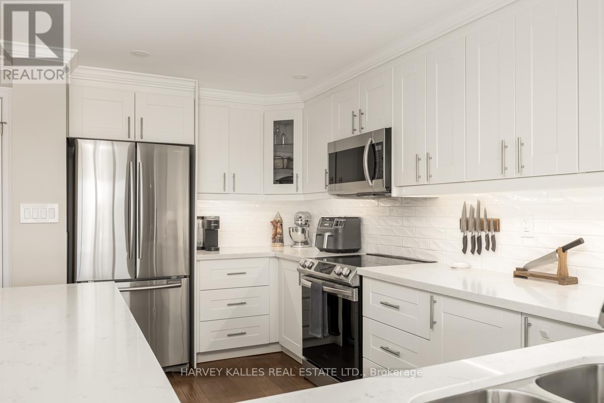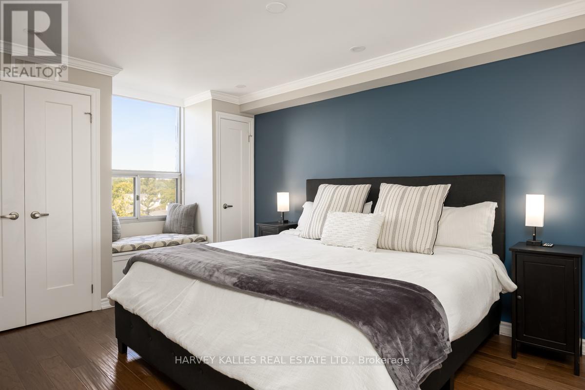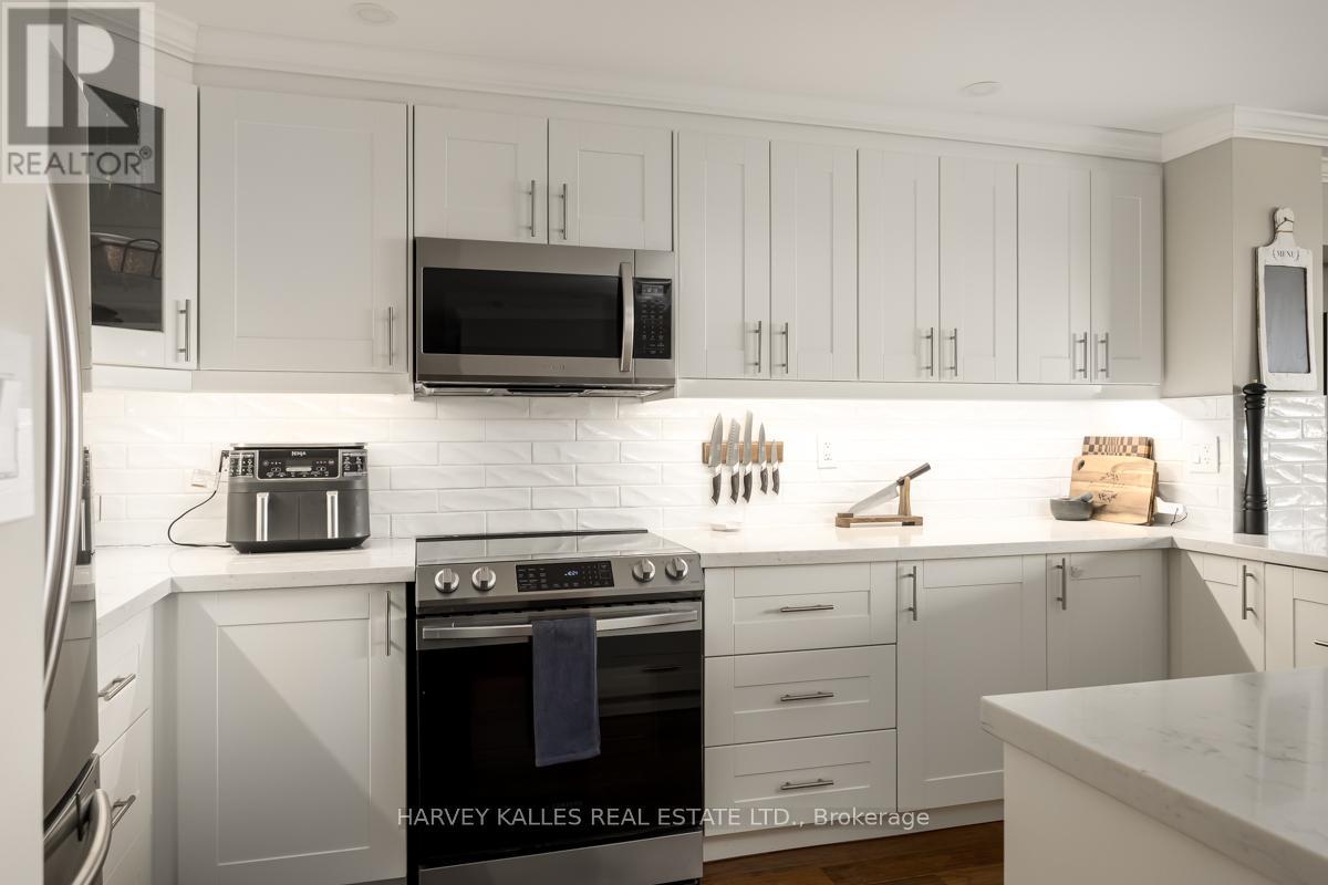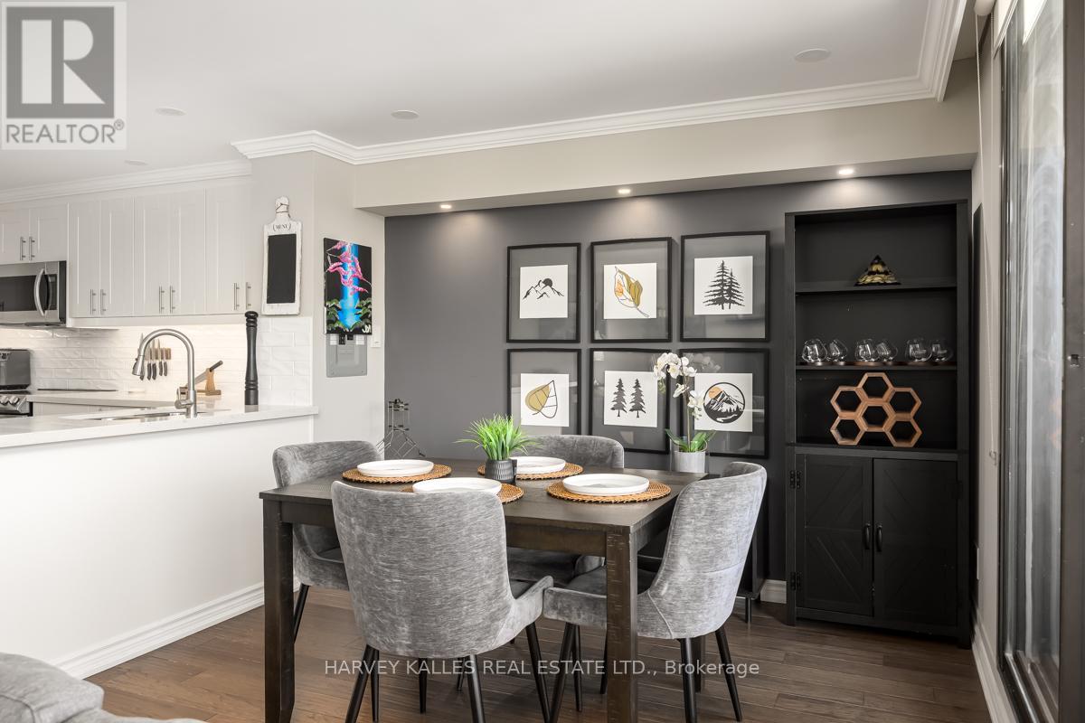 Welcome to this Stunning newly renovated bright and airy 2 Bedroom, 2 Bathroom home. One of the many special features this home offers is a chef inspired kitchen complete with a spacious breakfast bar, Quartz Countertop, Steel Appliances,2 Lazy Susan's, double undermount sink, recessed lighting and crown molding. This open concept living space is perfect to entertain both family and friends, walk out from your living area and enjoy the privacy and breathtaking view of the Niagara Escarpment from your spacious north facing balcony. Master bedroom oasis offers his and hers closets plus a bonus Storage Bench, 3 piece ensuite with vaulted Ceiling/Ambient lighting and walk in shower. Versatile 2nd bedroom with double closet, large window, recessed lighting and crown moulding can be used as an office or bedroom. 2nd 3 piece bath offers oversized walk-in shower. Enjoy the convenience of in-suite laundry, locker located on ground floor, 2 gyms, guest suite and visitor parking. Ideally located just a short walk from shopping, public transit, parks, and places of worship, with easy access to major highways, this condo offers exceptional connectivity and convenience. Condo fees includes heat, hydro, water, central air conditioning, Bell Fibe TV, building insurance, common elements, parking, and guest parking. (id:24334)