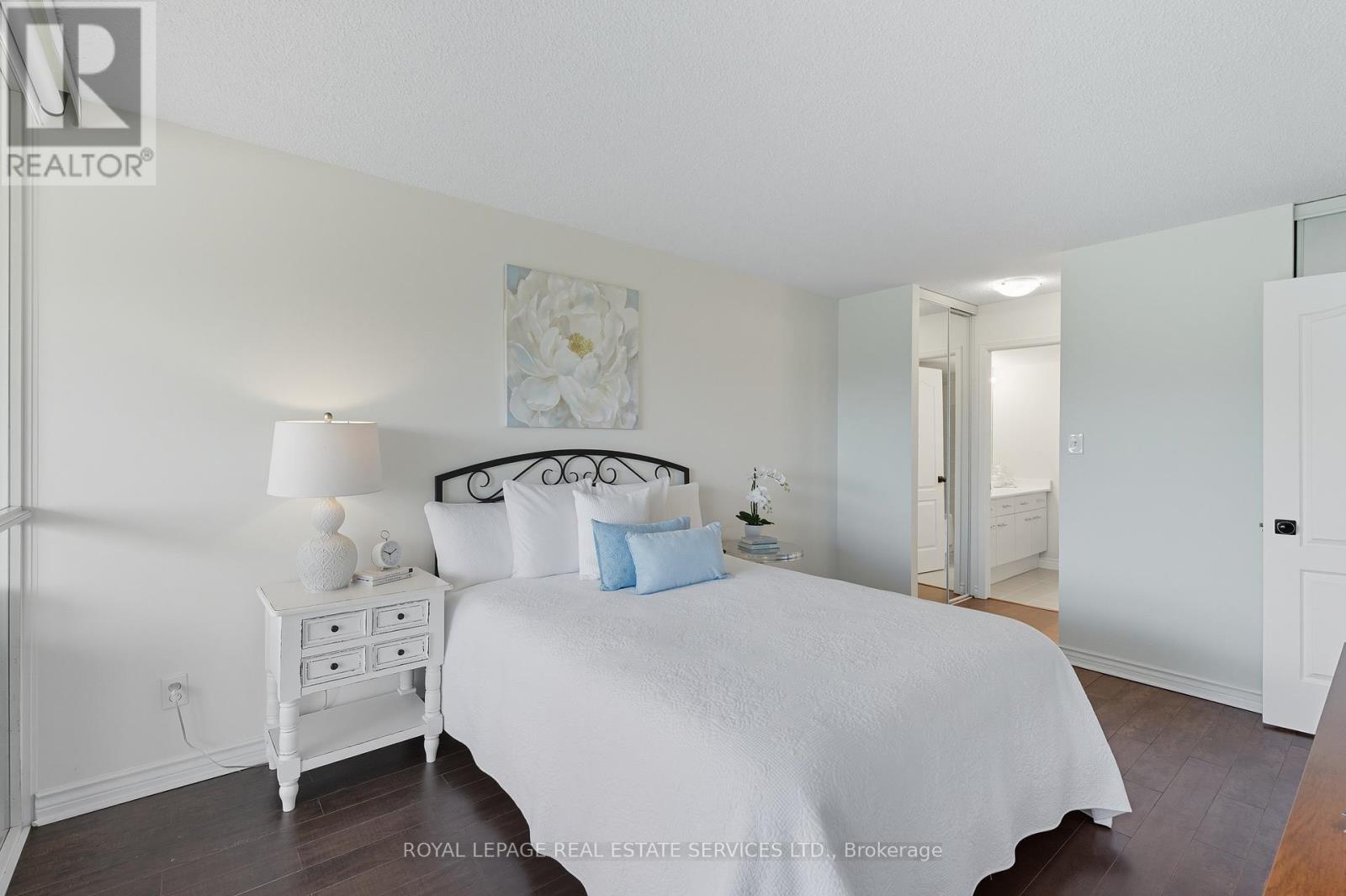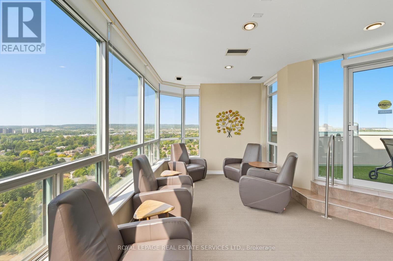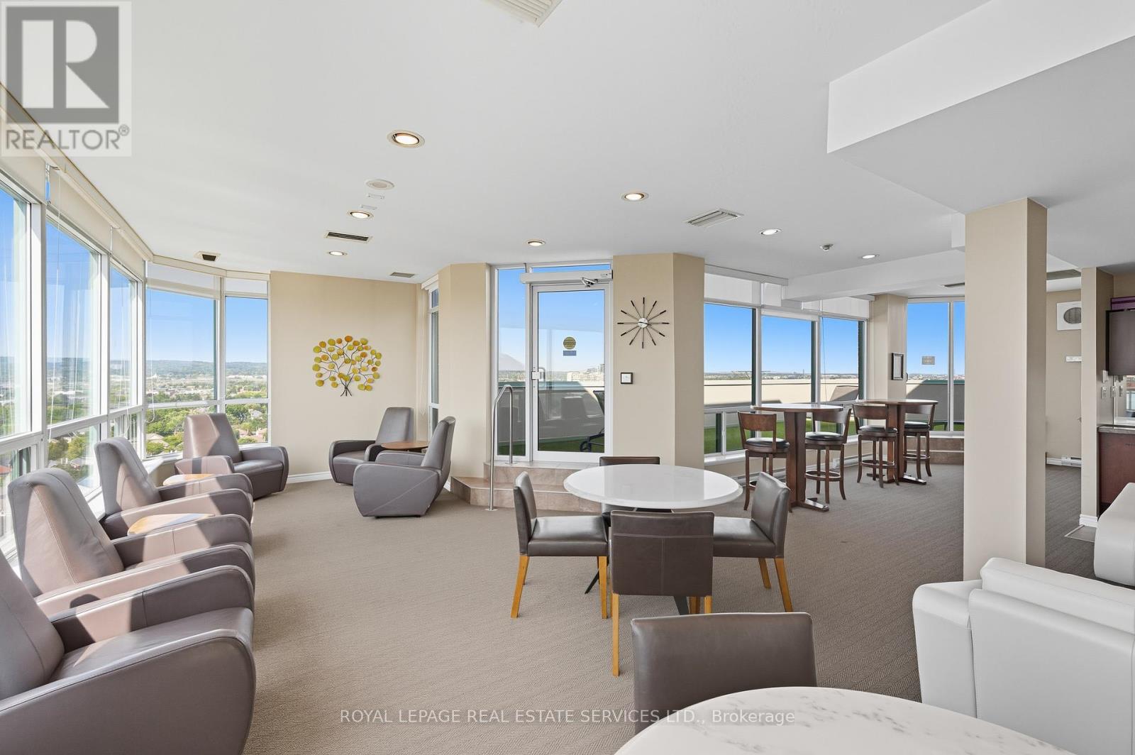 Welcome to effortless condo living at the highly sought-after Grande Regency just minutes from vibrant downtown Burlington, where convenience meets lifestyle. This beautifully updated two-bedroom suite features a thoughtfully designed layout with neutral décor and serene, unobstructed views of treetops, open skies, Lake Ontario, and the Niagara Escarpment. From the moment you step inside, the spacious design and warm, welcoming ambiance make you feel instantly at home. The generously sized living room is bathed in natural light through floor-to-ceiling windows, creating a bright and airy ambiance. The open-concept dining area is perfect for entertaining, while the modern kitchen features ample cabinetry, pull-out drawers, generous counter space, and stainless-steel appliances. A sunny solarium adds versatility, perfect as a reading nook, office, or hobby space. The spacious primary bedroom is a welcome retreat complete with a 4-piece ensuite and multiple closets. A second bedroom, stylish 3-piece bathroom, and in-suite laundry provide added comfort and functionality. Additional features include one underground parking space and a storage locker. Superb amenities include 24/7 concierge, party room with kitchen, exercise rooms, infrared saunas, table tennis, squash court, sun bed, hobby room, penthouse TV lounge, roof top lounge/library, roof top patio, guest suites, outdoor swimming pool, outdoor BBQ and lounge areas, bike storage, tennis court and visitor parking. Enjoy unbeatable access to downtown Burlington's best - Mapleview Mall, boutique shopping, trendy restaurants, Lake Ontario, Spencer Smith Waterfront Park, scenic trails, public transit, and major highways. Nearby amenities also include libraries, places of worship, playgrounds, and the GO station. This home offers an unrivaled combination of modern luxury and comfort, excellent views and prime location! VIEW THE 3D VIRTUAL IGUIDE TOUR, FLOOR PLAN, VIDEO & ADDITIONAL PHOTOS (id:24334)