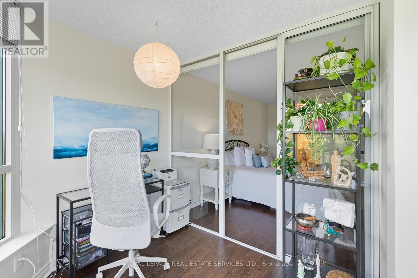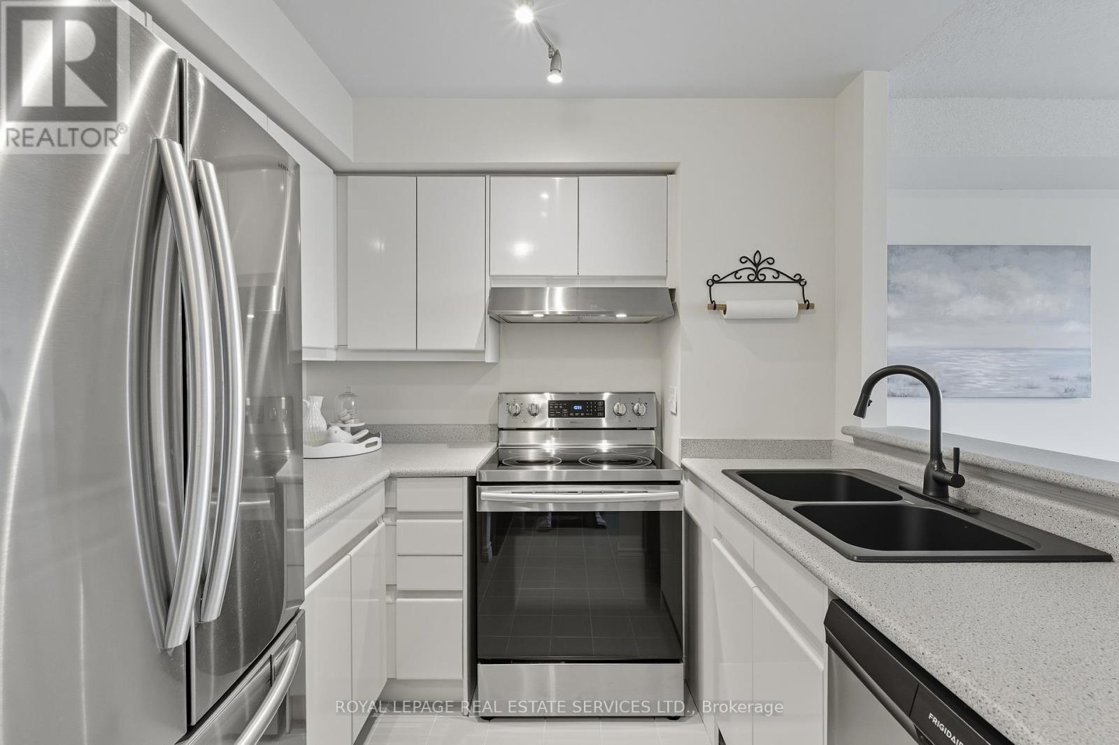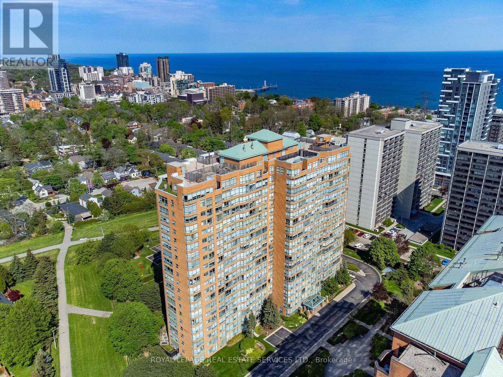 Welcome to effortless condo living at the highly sought-after Grande Regency just minutes from vibrant downtown Burlington, where convenience meets lifestyle. This beautifully updated two-bedroom suite features a thoughtfully designed layout with neutral décor and serene, unobstructed views of treetops, open skies, Lake Ontario, and the Niagara Escarpment. From the moment you step inside, the spacious design and warm, welcoming ambiance make you feel instantly at home. The generously sized living room is bathed in natural light through floor-to-ceiling windows, creating a bright and airy ambiance. The open-concept dining area is perfect for entertaining, while the modern kitchen features ample cabinetry, pull-out drawers, generous counter space, and stainless-steel appliances. A sunny solarium adds versatility, perfect as a reading nook, office, or hobby space. The spacious primary bedroom is a welcome retreat complete with a 4-piece ensuite and multiple closets. A second bedroom, stylish 3-piece bathroom, and in-suite laundry provide added comfort and functionality. Additional features include one underground parking space and a storage locker. Superb amenities include 24/7 concierge, party room with kitchen, exercise rooms, infrared saunas, table tennis, squash court, sun bed, hobby room, penthouse TV lounge, roof top lounge/library, roof top patio, guest suites, outdoor swimming pool, outdoor BBQ and lounge areas, bike storage, tennis court and visitor parking. Enjoy unbeatable access to downtown Burlington's best - Mapleview Mall, boutique shopping, trendy restaurants, Lake Ontario, Spencer Smith Waterfront Park, scenic trails, public transit, and major highways. Nearby amenities also include libraries, places of worship, playgrounds, and the GO station. This home offers an unrivaled combination of modern luxury and comfort, excellent views and prime location! VIEW THE 3D VIRTUAL IGUIDE TOUR, FLOOR PLAN, VIDEO & ADDITIONAL PHOTOS (id:24334)